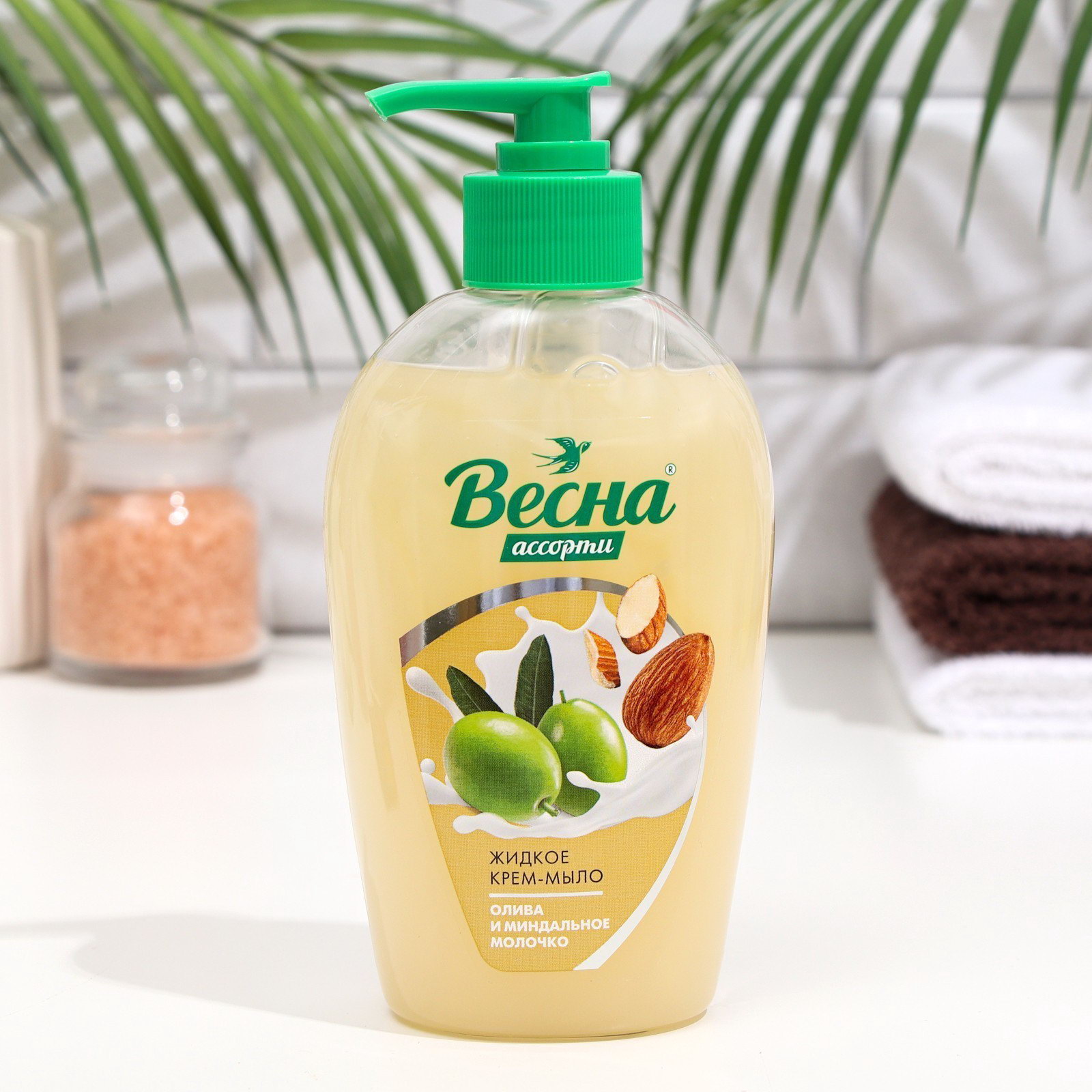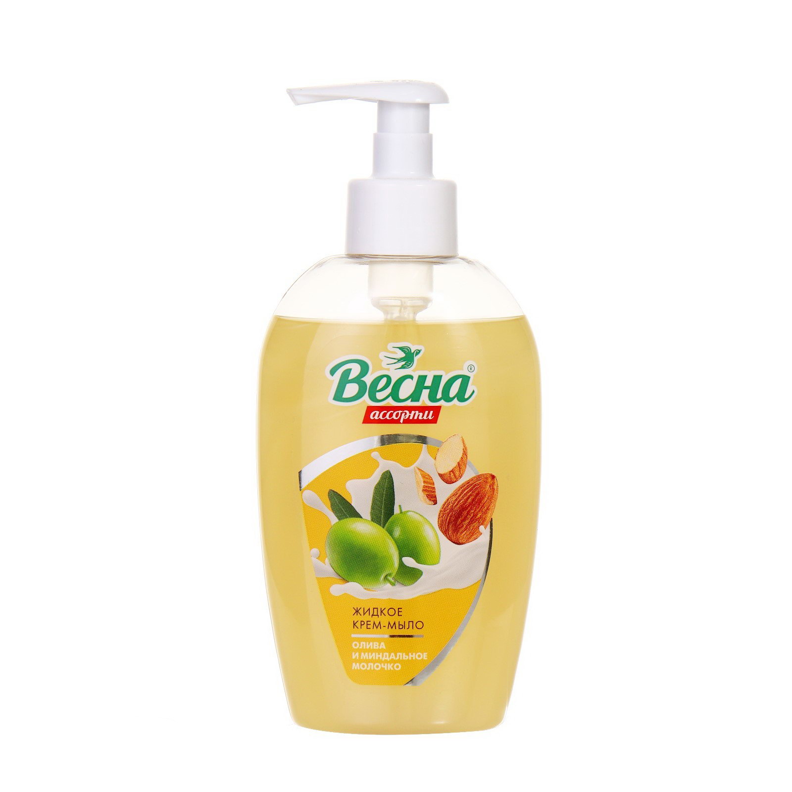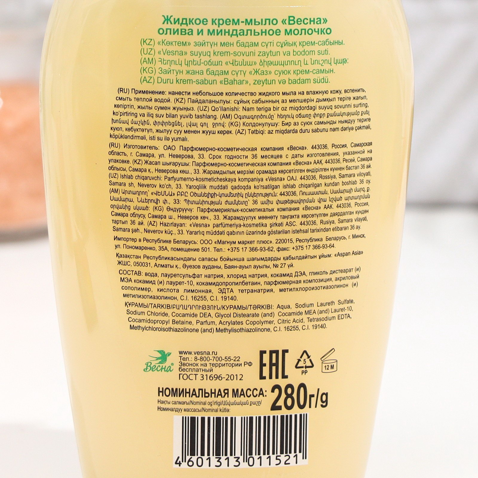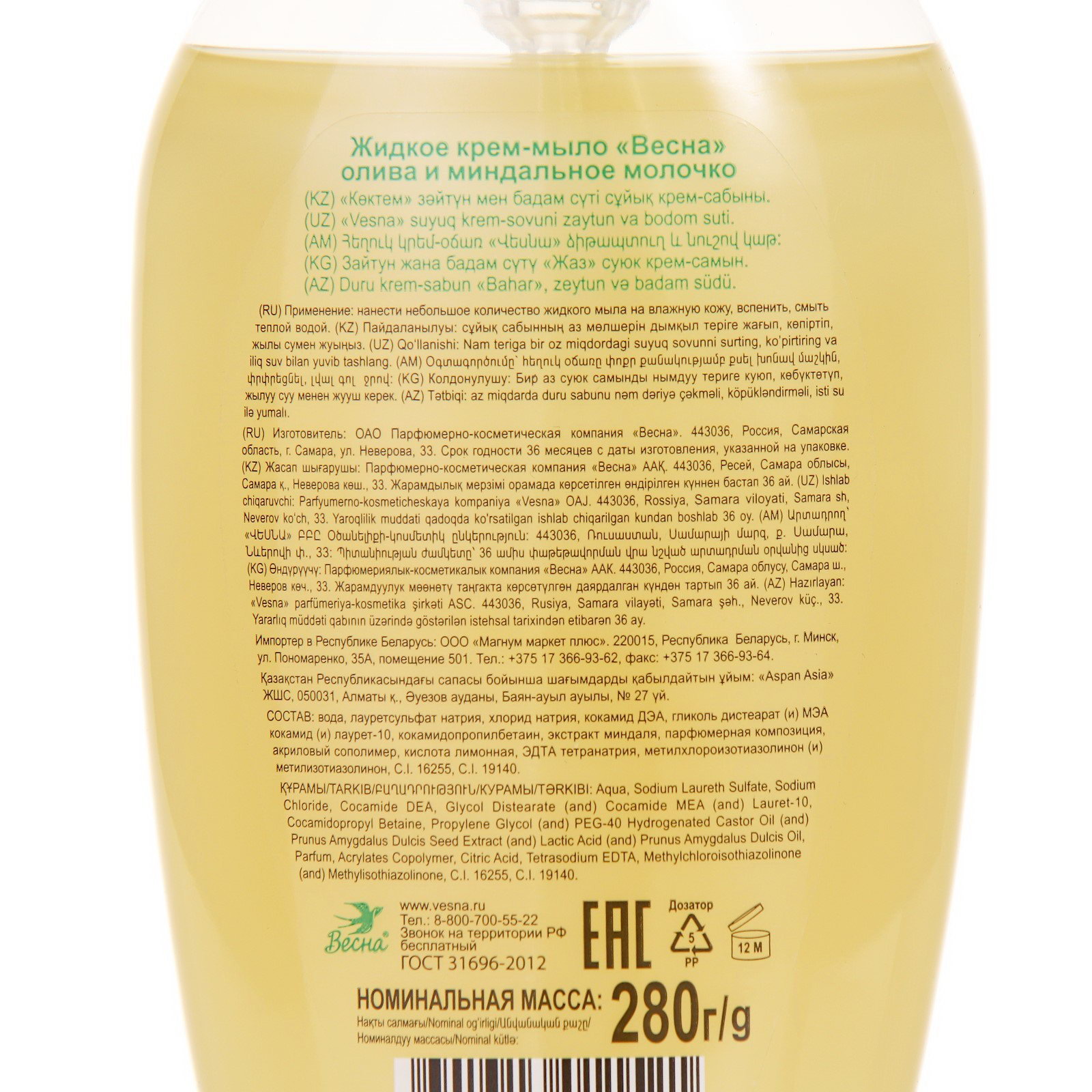 Крем-мыло "Олива и миндальное молочко", 280 мл, 4.3x7.8x16.5 см., Весна, Россия
