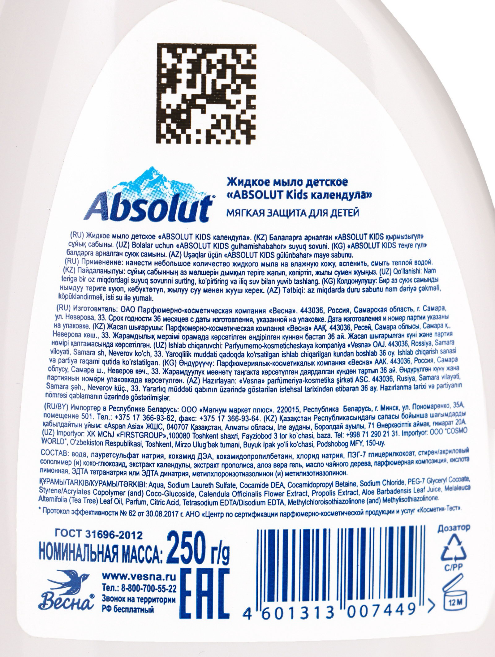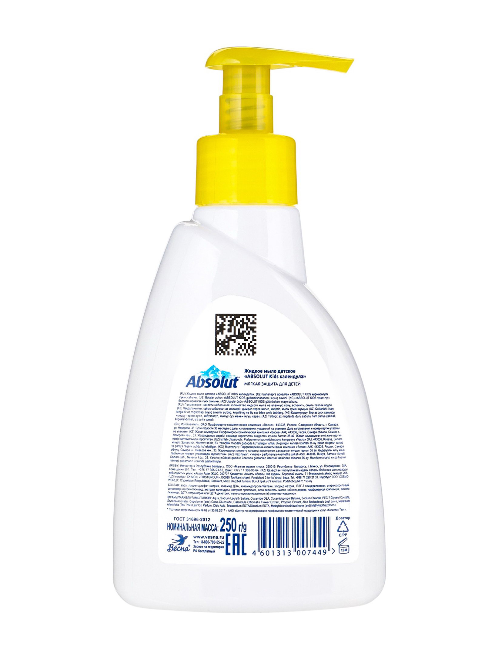 Мыло жидкое Абсолют Kids "Календула", 250 г, 8x16.5x5 см., Absolut, Россия