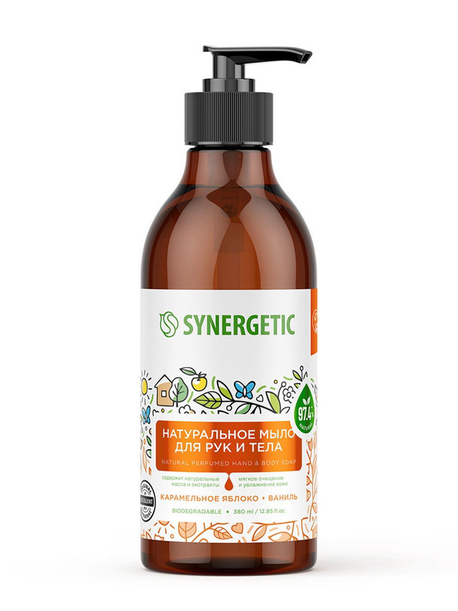 Жидкое мыло "Карамельное яблоко и ваниль", для рук и тела, 380 мл, Synergetic, Россия