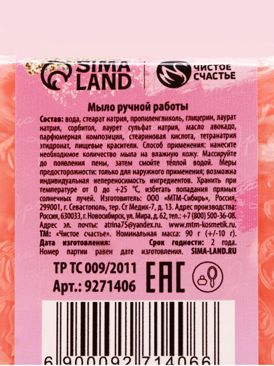 Область применения: Для рук, Для тела Вид мыла: Косметическое, Ручной работы Размер упаковки: 7 x 5.5 x 2 см. Темпер. ограничение НЕ НИЖЕ ℃: +5 Темпер. ограничение НЕ ВЫШЕ ℃: +25 Цвет: Розовый Тематика праздника: 8 Марта Вид упаковки: Термоусадочная плёнка Для кого: Для женщины Назначение: Очищение, детокс Адресат: Без адресата Возраст: Для взрослых tnved: 3401110000 tnved: 3401110000 Вес, г/Объём, мл: 90 Аромат: Вишня Тип: Твёрдое | ||