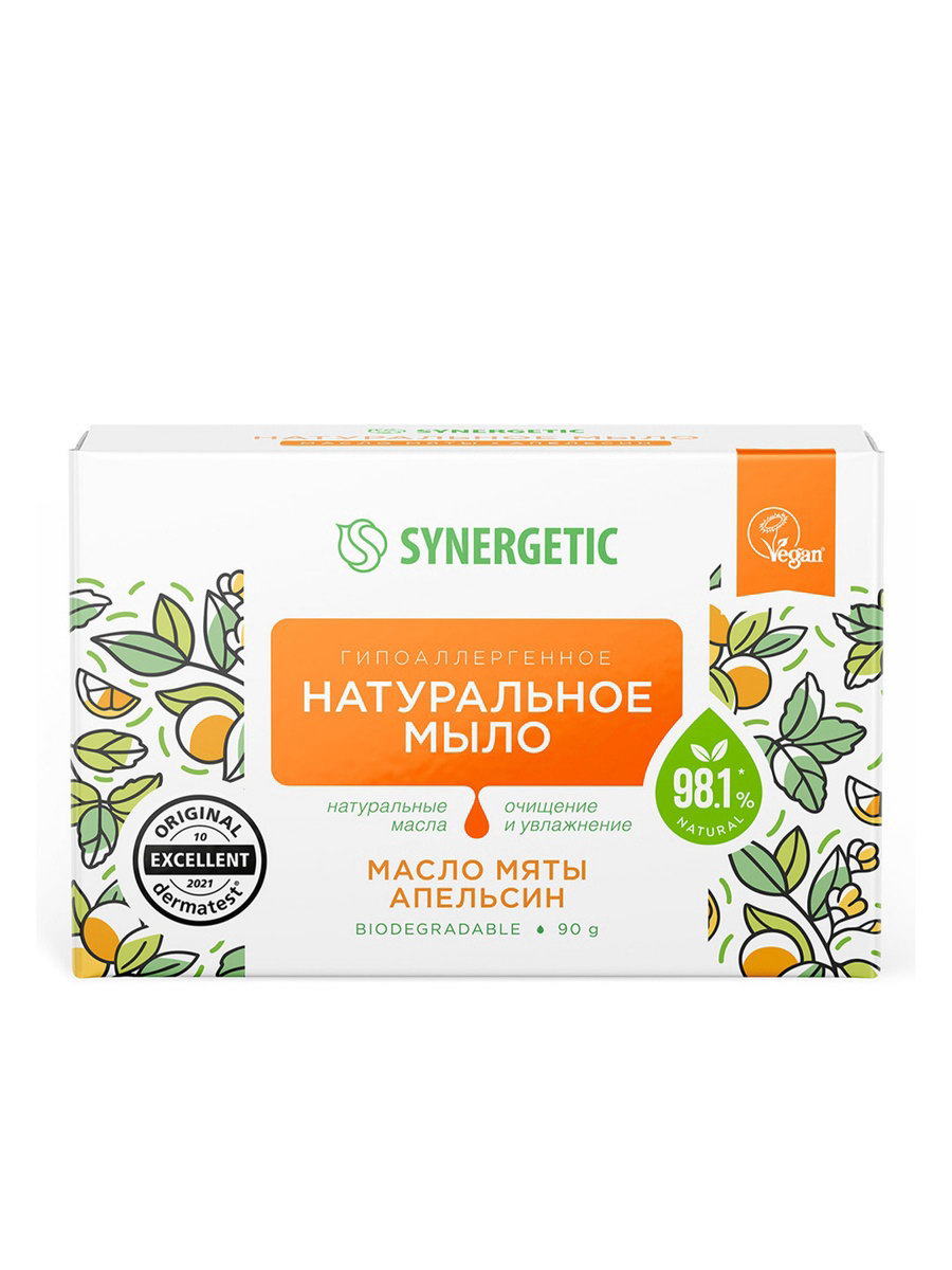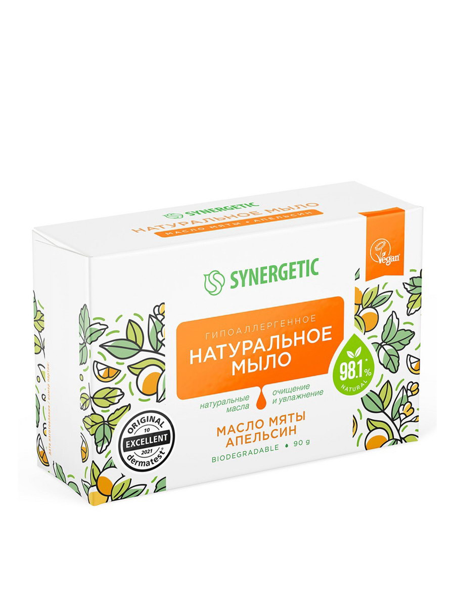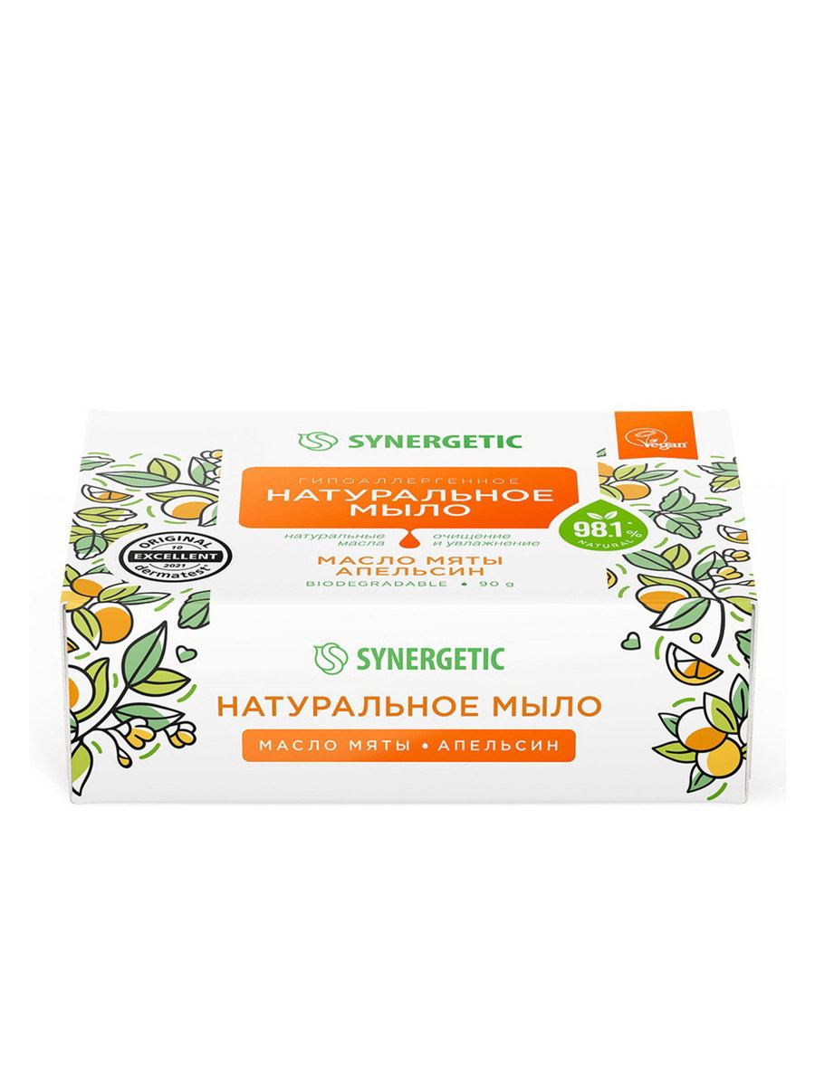 Натуральное туалетное мыло "Масло мяты и апельсин", гипоаллергенное, 90 г, Synergetic, Россия