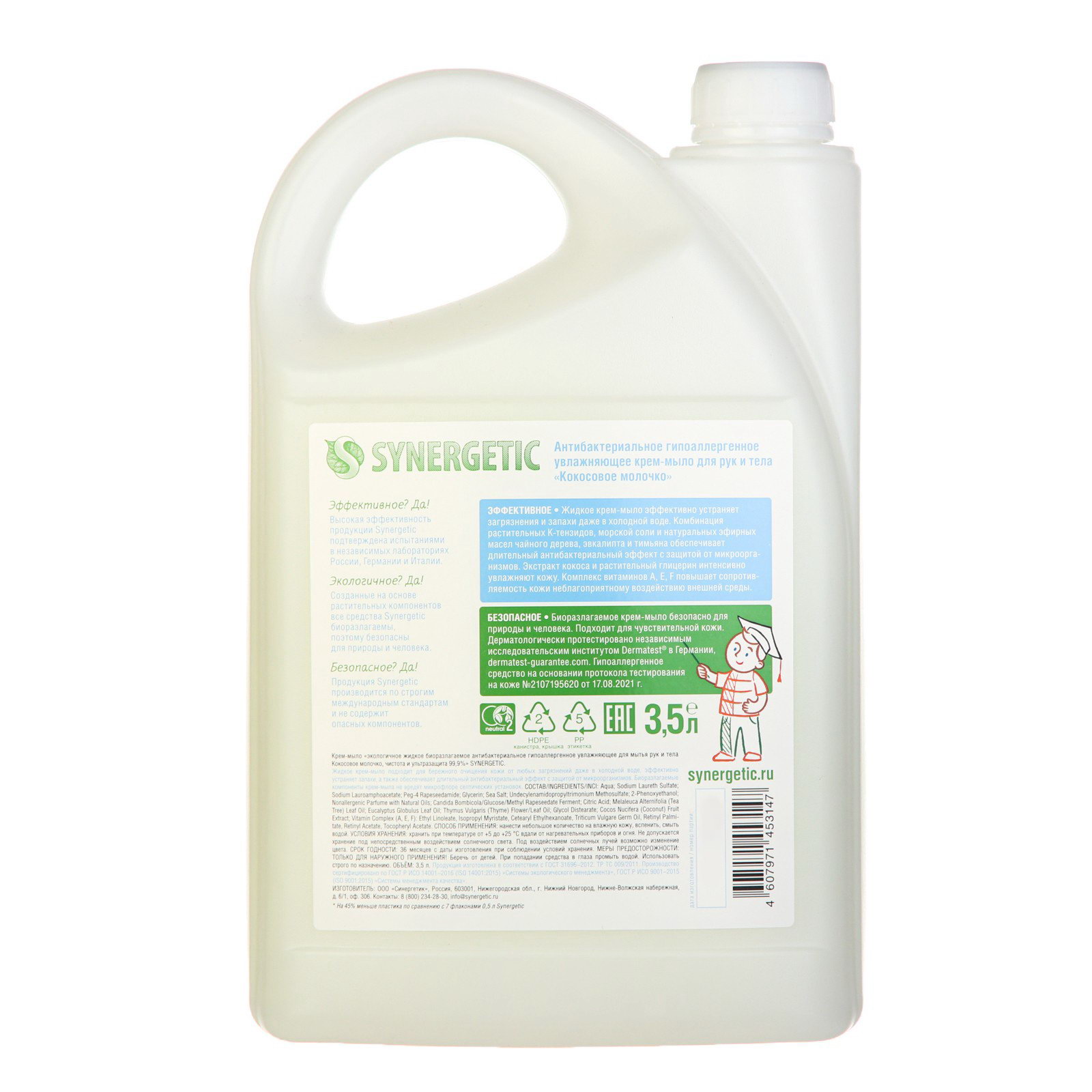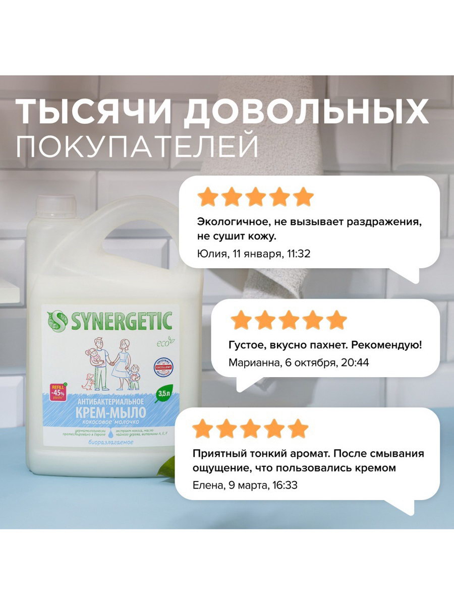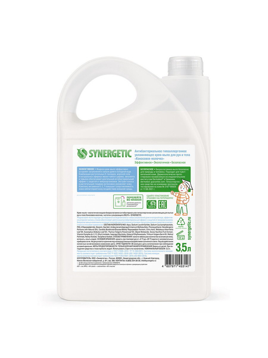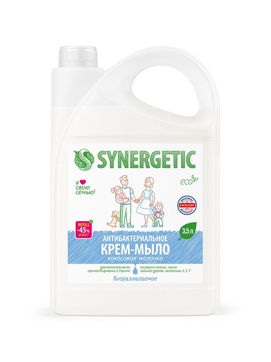 Крем-мыло "Кокосовое молочко", антибактериальное, 3.5 л, Synergetic, Россия