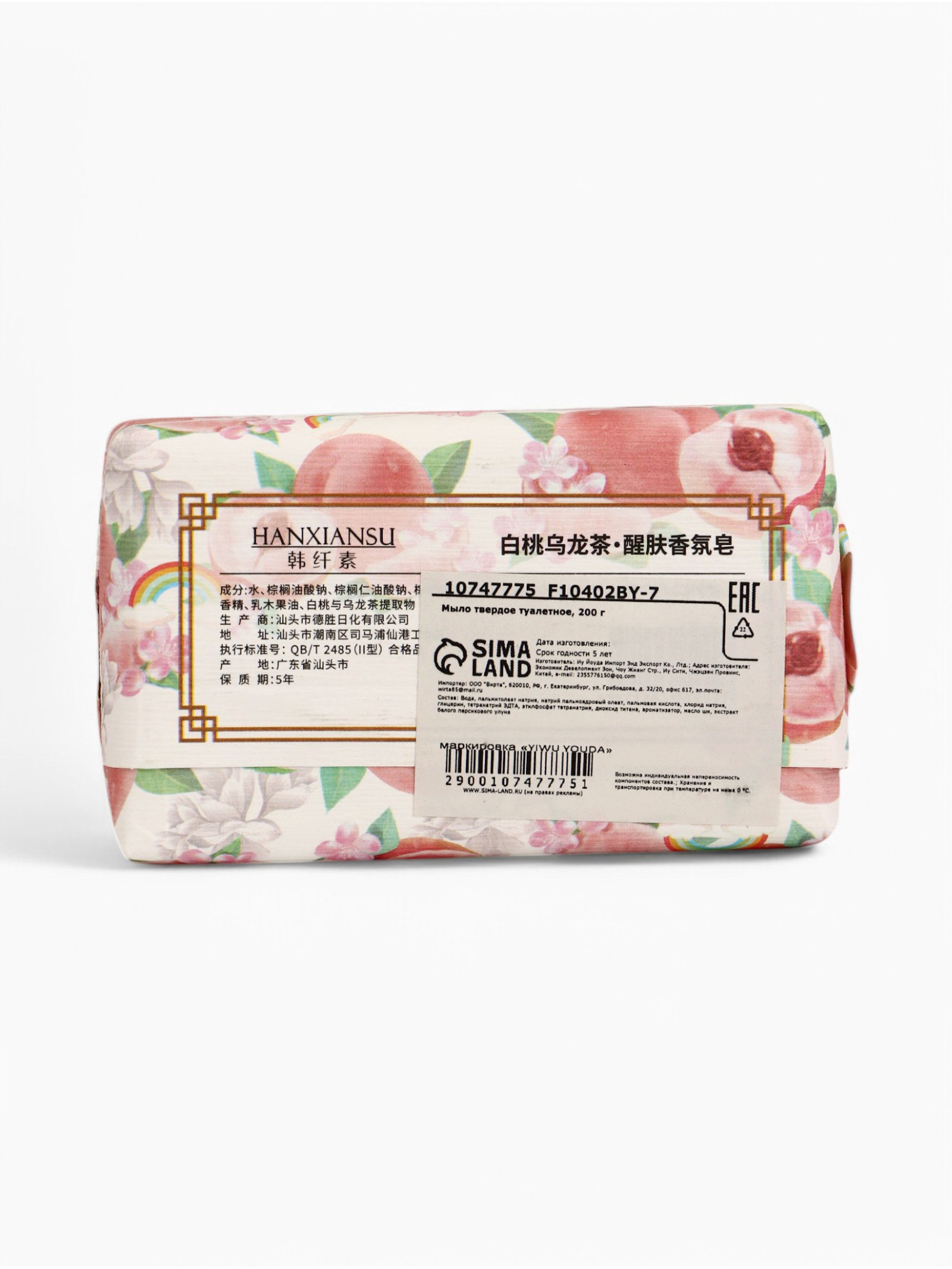 Мыло твердое "Белый персиковый улун", 200 г, 31x43x22 см., Китай