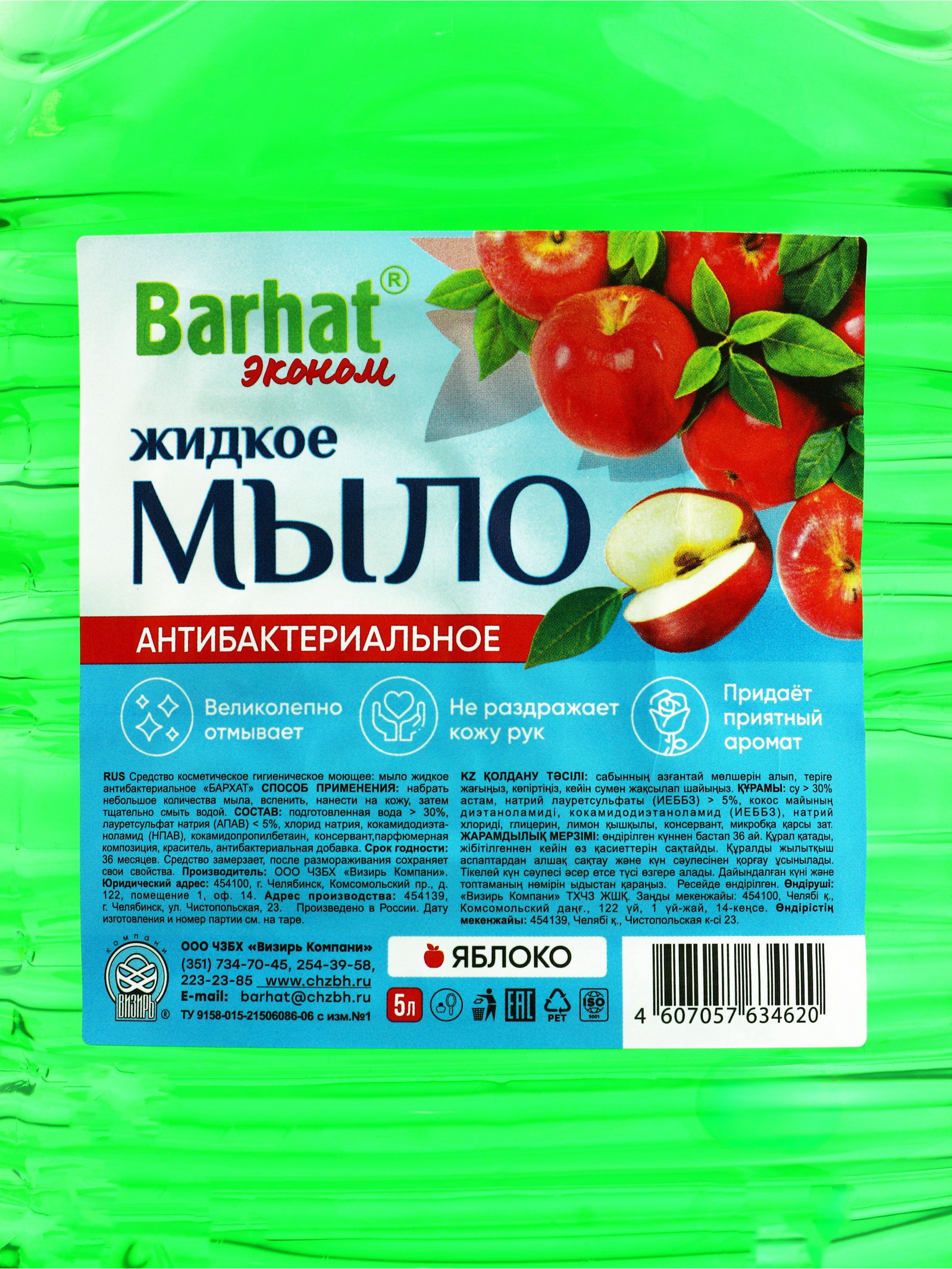 Мыло жидкое Бархат с антибактериальным эффектом Яблоко, 5 л, BARHAT, Россия