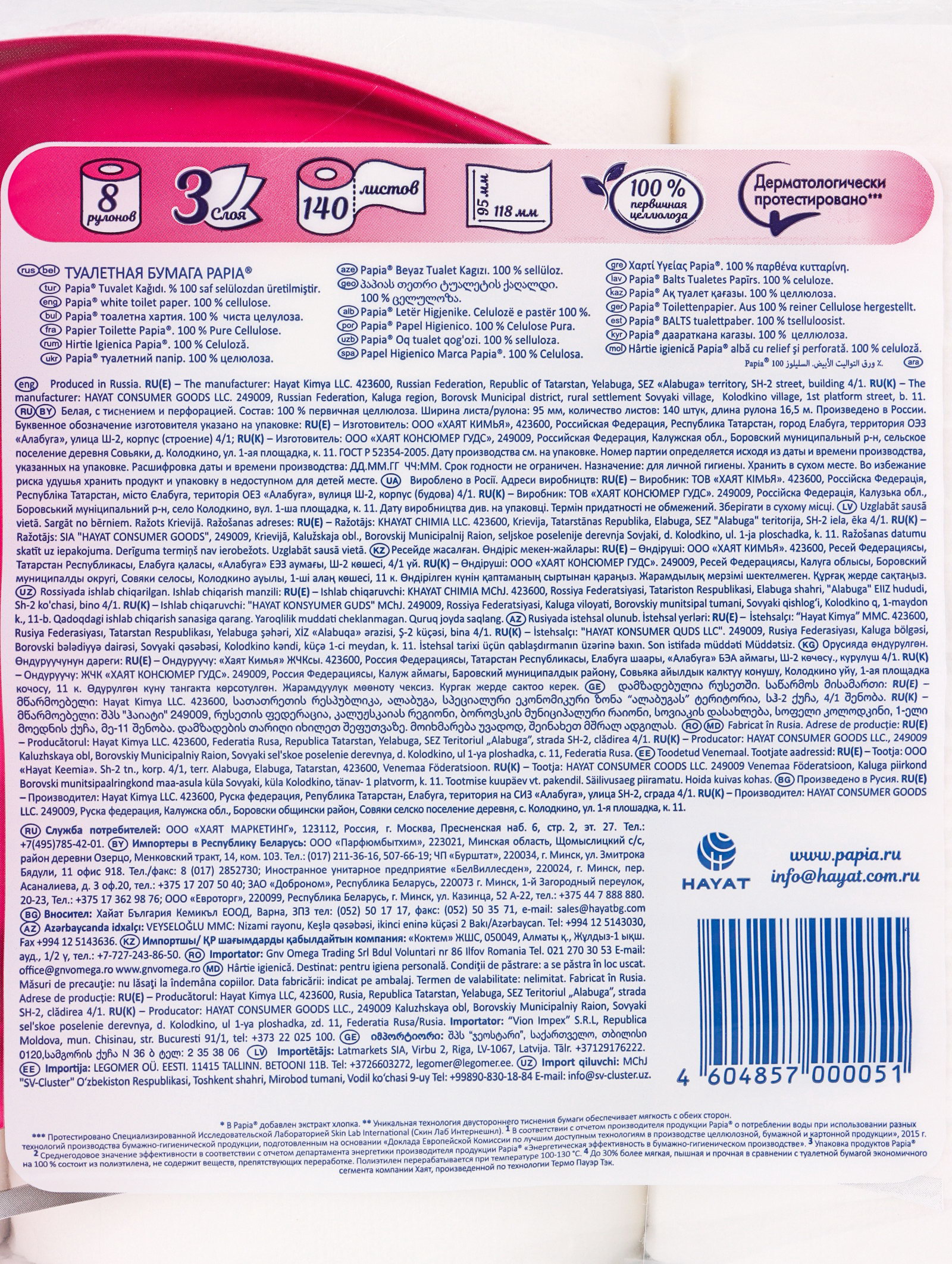 Вид: В рулонах, Классическая Размер упаковки: 11 x 19 x 41 см. Длина, м: 16.5 Аромат: Без аромата Ароматизированная: Нет tnved: 4818101000 Температурное ограничение: Нет Количество рулонов в упаковке: 8 Тип бумаги: Трёхслойная Цвет: Белый Тиснение: Да Для тех, кто ценит сочетание надёжности и комфорта в каждой детали, создана Papia Professional трёхслойная туалетная бумага премиального уровня. Идеально подходит для дома, офиса, кафе или любого публичного помещения, где важны качество, гигиена и экономичность. Особенности Papia Professional: