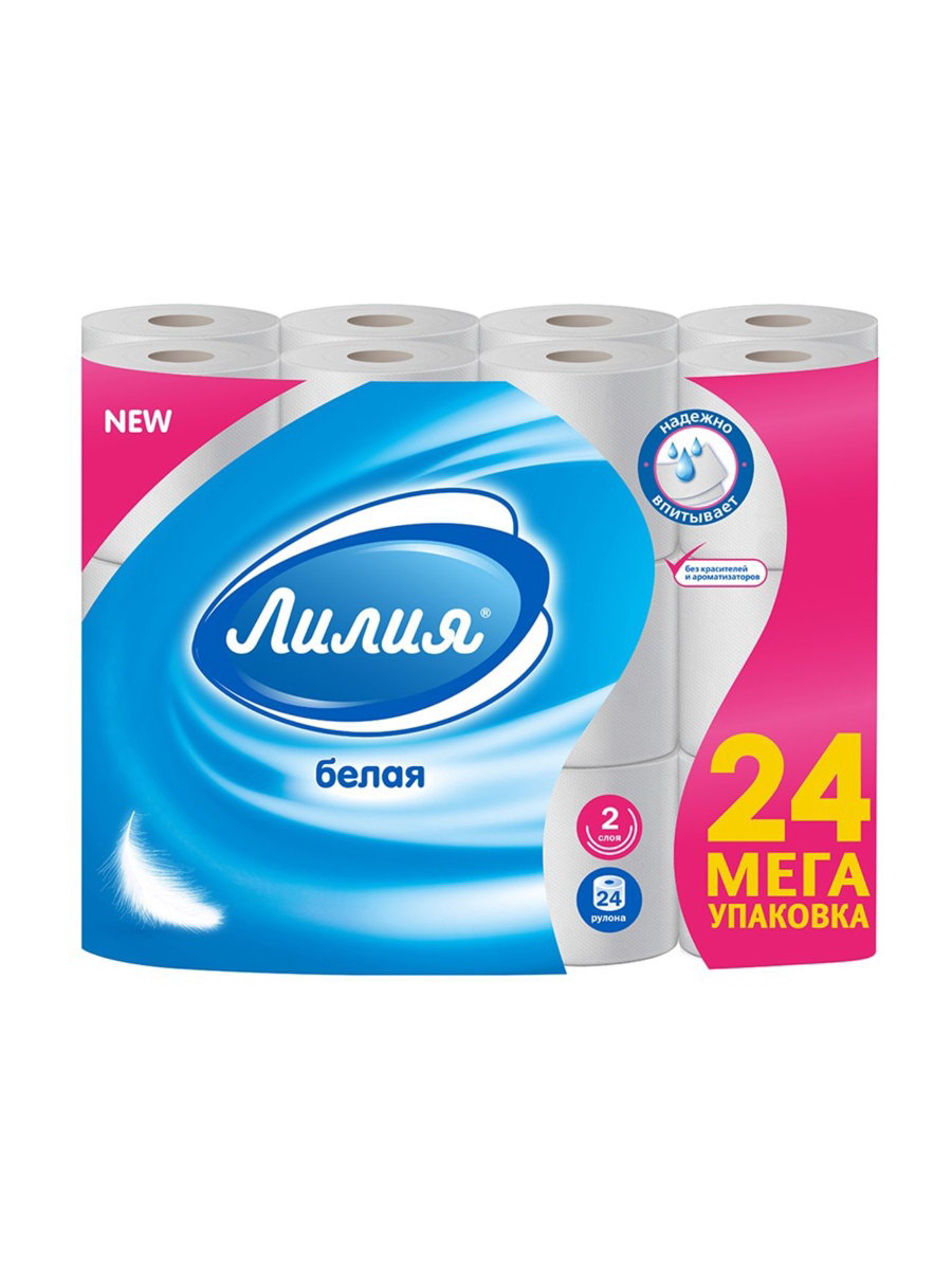 Туалетная бумага 2 слоя, 24 рулона, Лилия, Россия