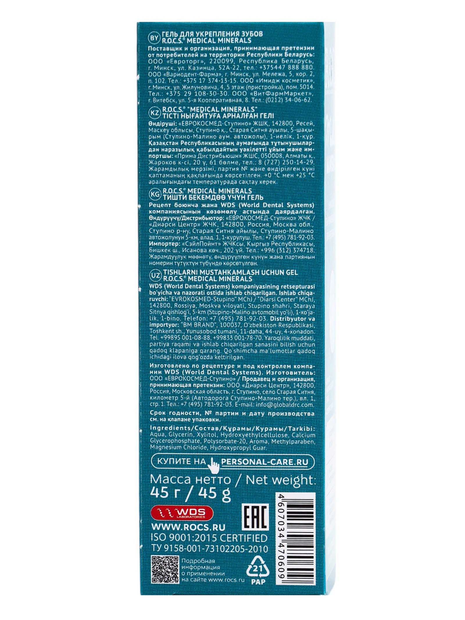 Гель для укрепления зубов Medical Minerals реминерализующий, 45 г, R.O.C.S., Россия