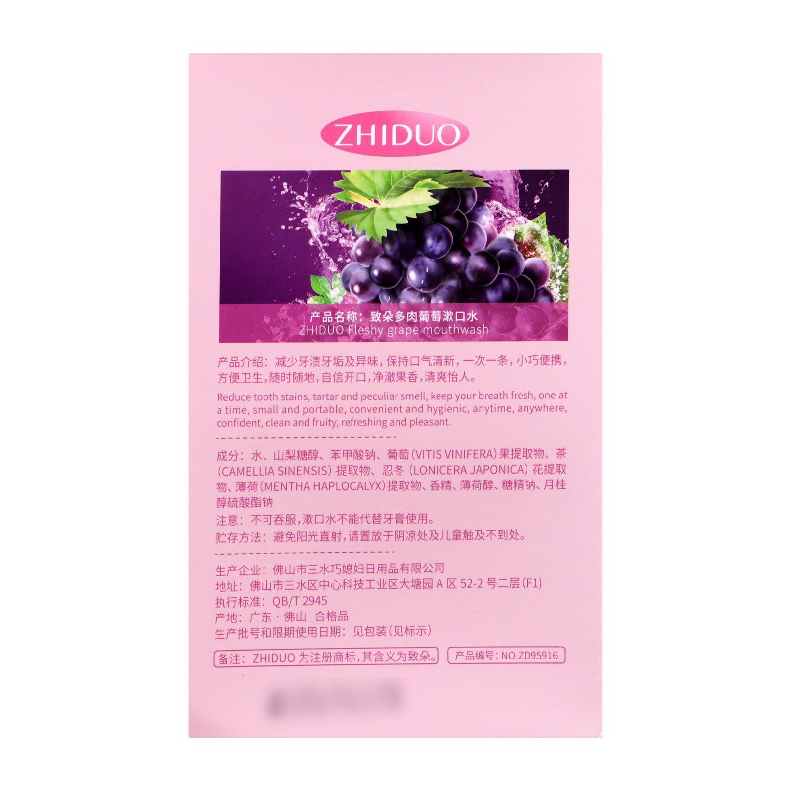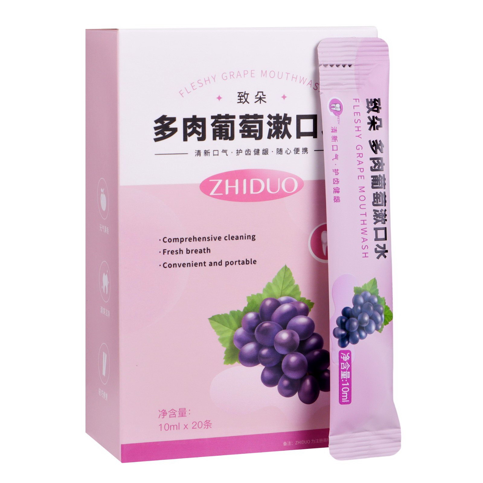 Набор ополаскивателей для рта в стиках со вкусом винограда, 20 шт. по 10 мл, 10x10x10 см., Китай