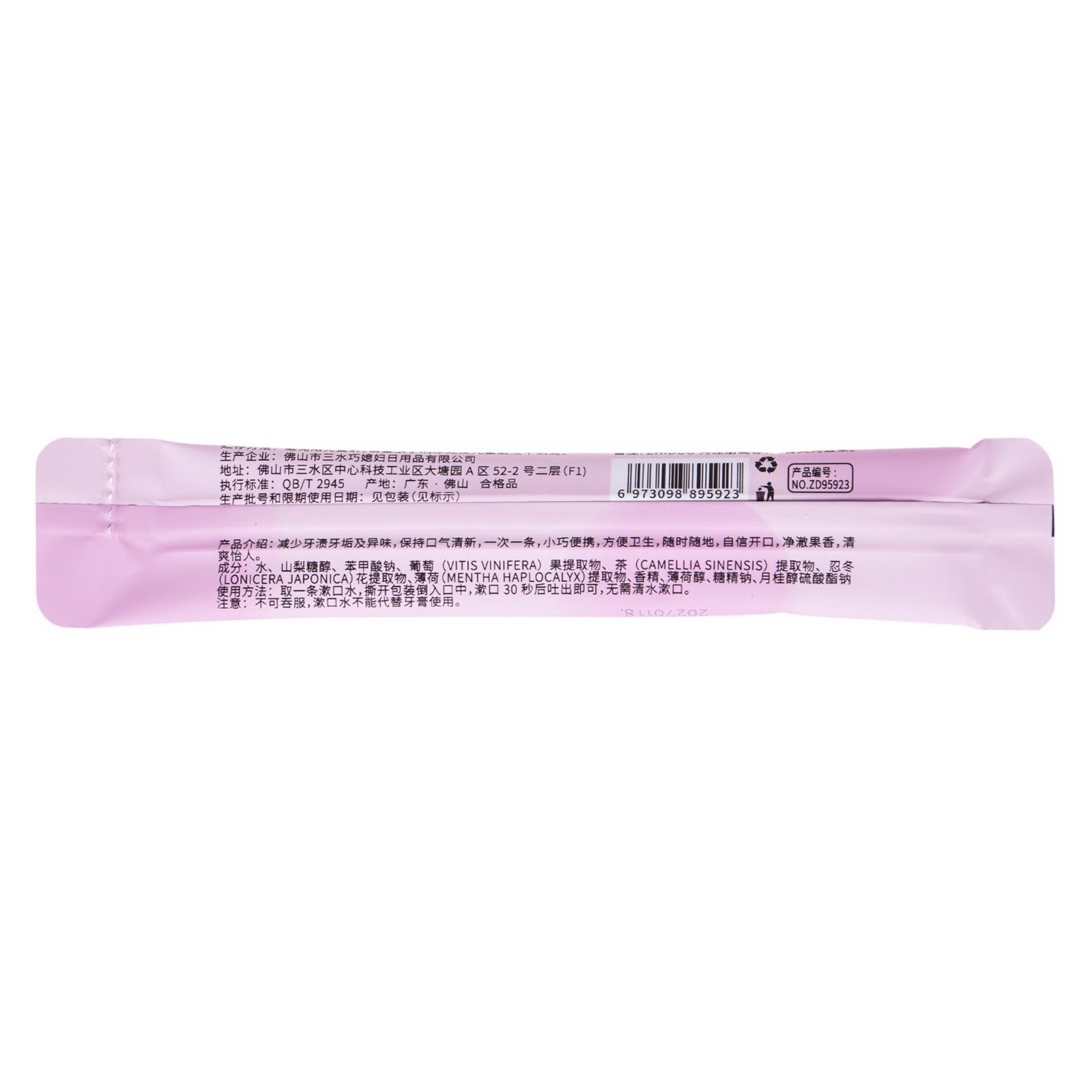 Набор ополаскивателей в стиках – это удобное и эффективное решение для тех, кто ценит свою устную гигиению. Простота использования и приятный виноградный вкус делают этот продукт отличным выбором для ежедневного ухода за полостью рта. Состав: вода, сорбитол, 1,3-пропиленгликоль, калия сорбат, пэг-40 гидрогенизированное касторовое масло, ксилит, масло мяты, натрия бензоат, ароматизатор винограда, дикалия глицирризат, лимонная кислота, хлорид цетримониума, трихлоргалактоза. Способ применения: Полоскание следует выполнять после еды. Полощите в течение 30-45 секунд. Затем сплюньте. Для максимального эффекта не принимать пищу и жидкость в течение 30 минут после процедуры. | ||