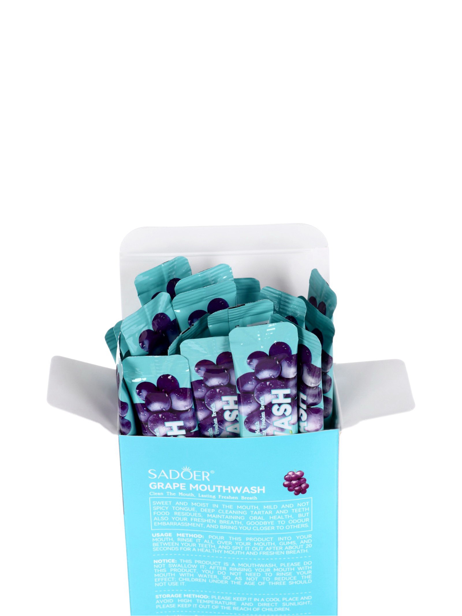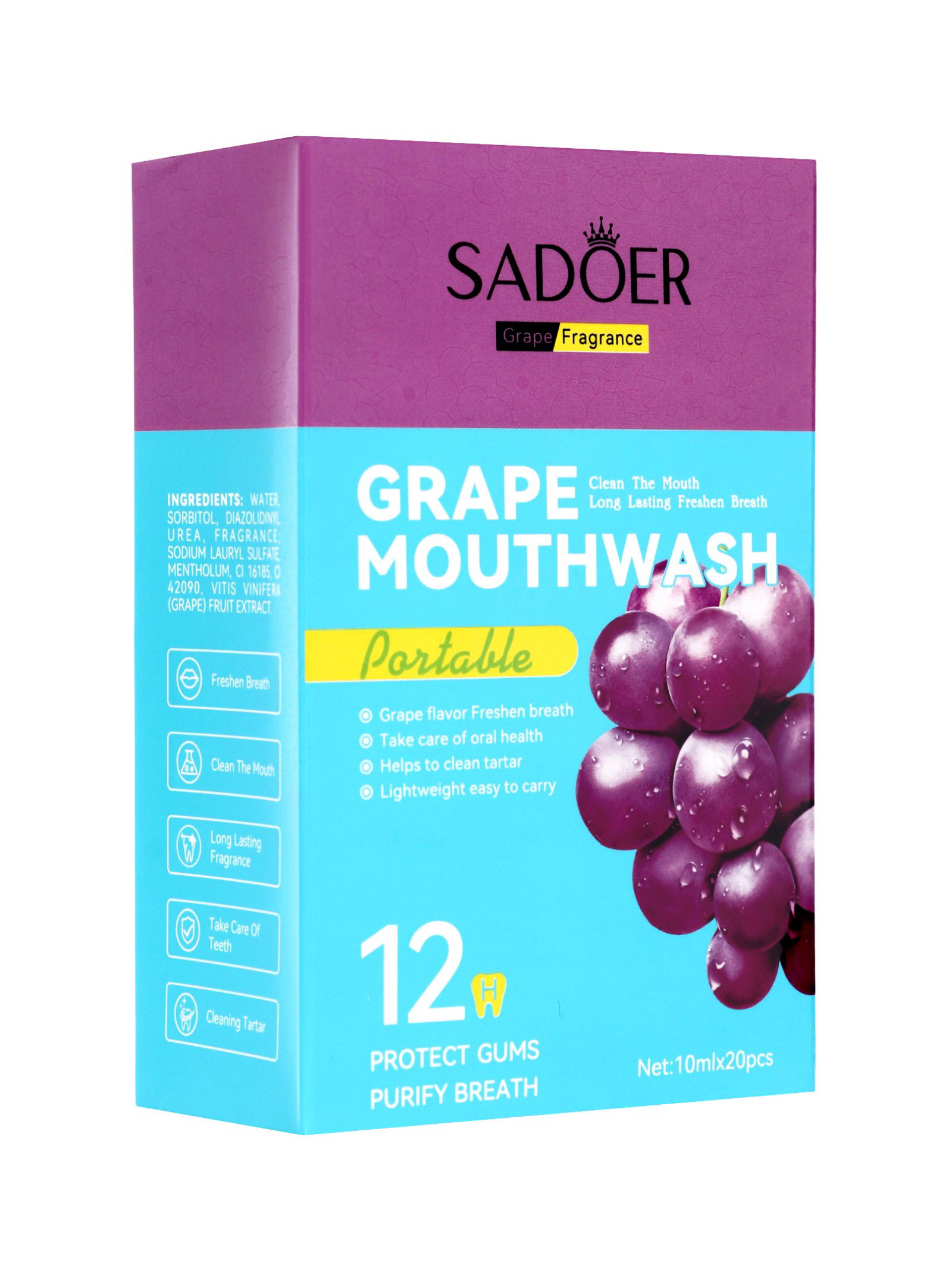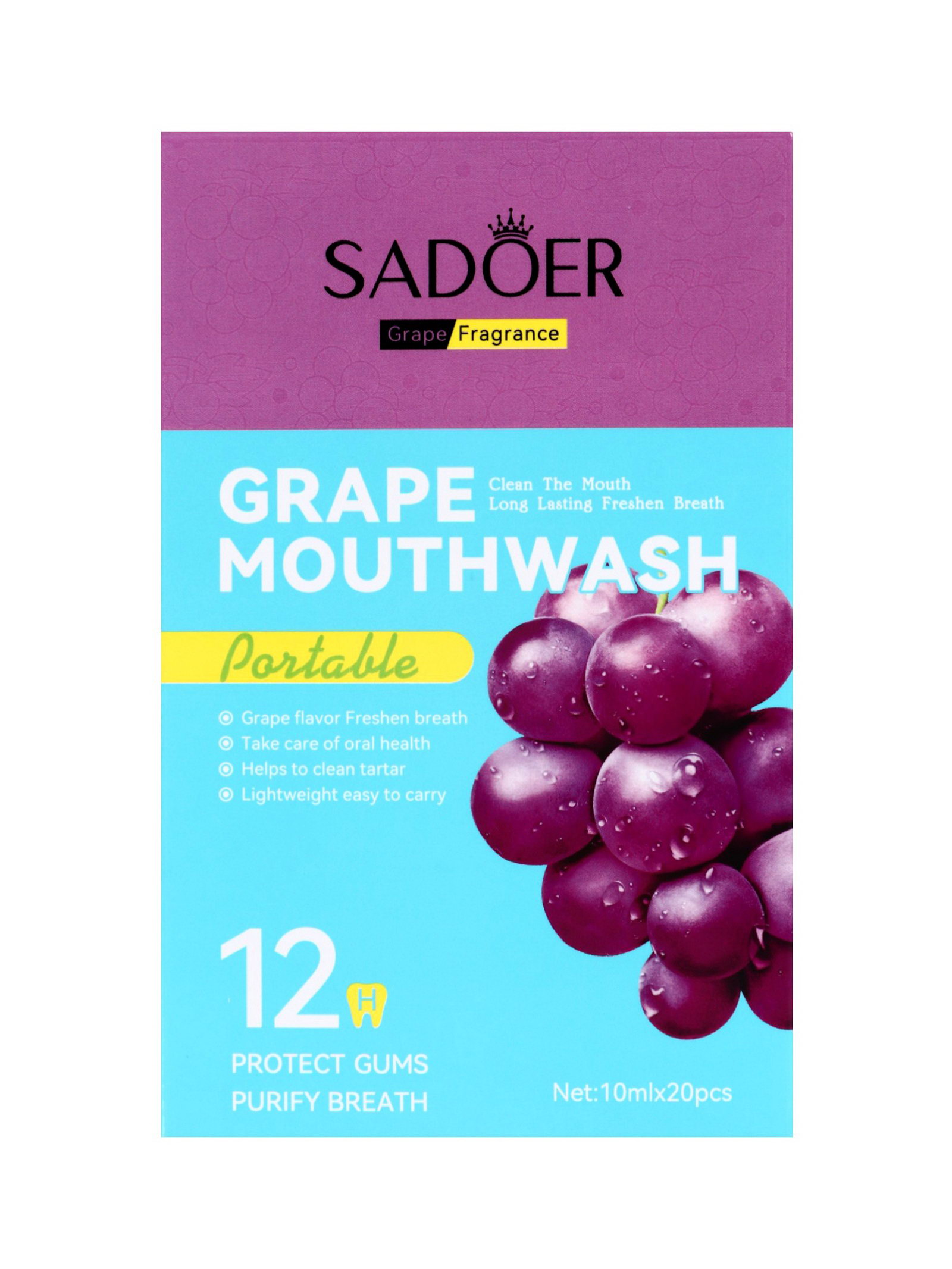 Набор ополаскивателей для рта в стиках со вкусом винограда, 20 шт. по 10 мл, 10 мл., SADOER, Китай