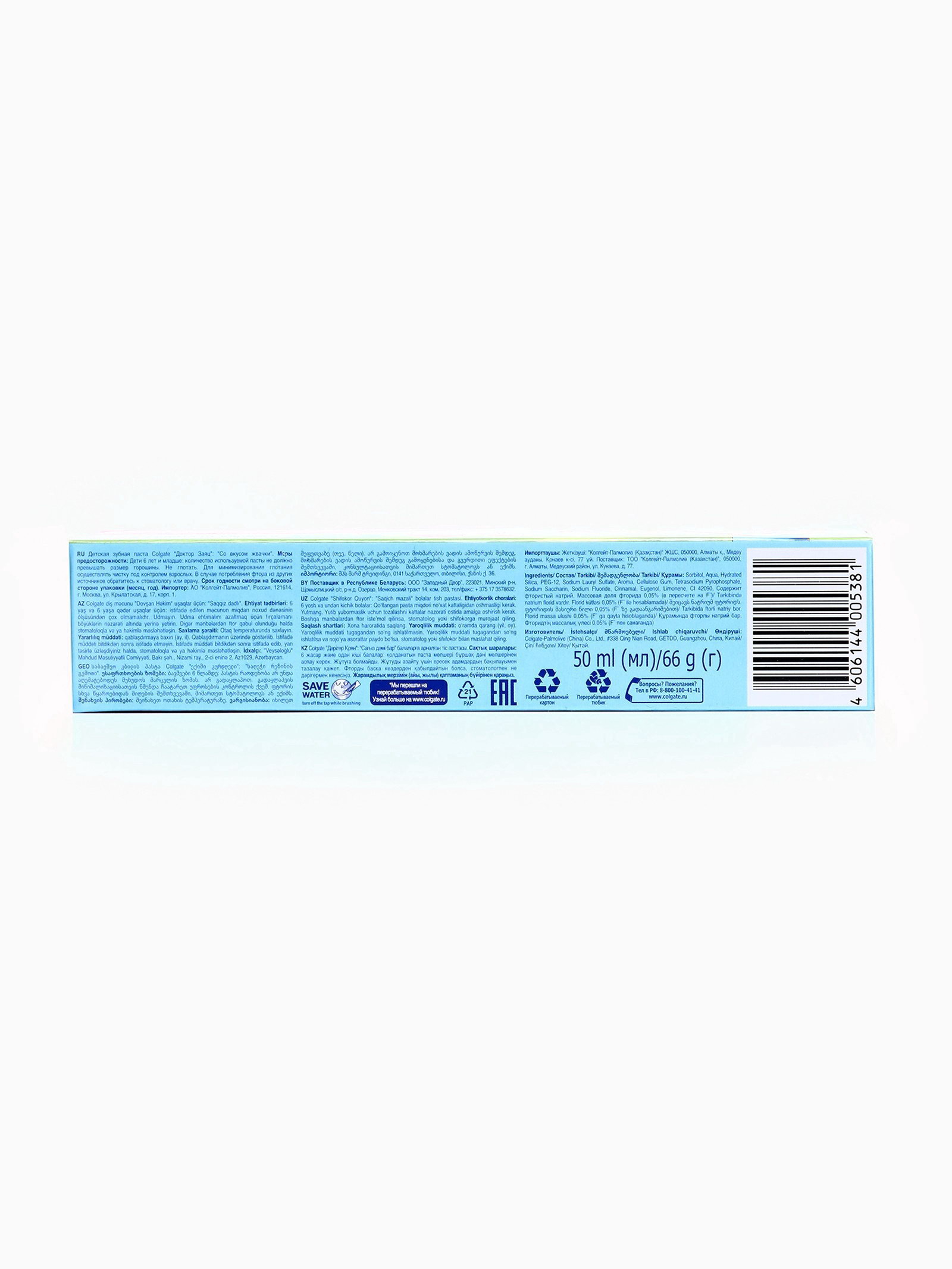 Детская зубная паста "Доктор Заяц", со вкусом жвачки, 66 мл, 4x3x16 см., Colgate, Китай