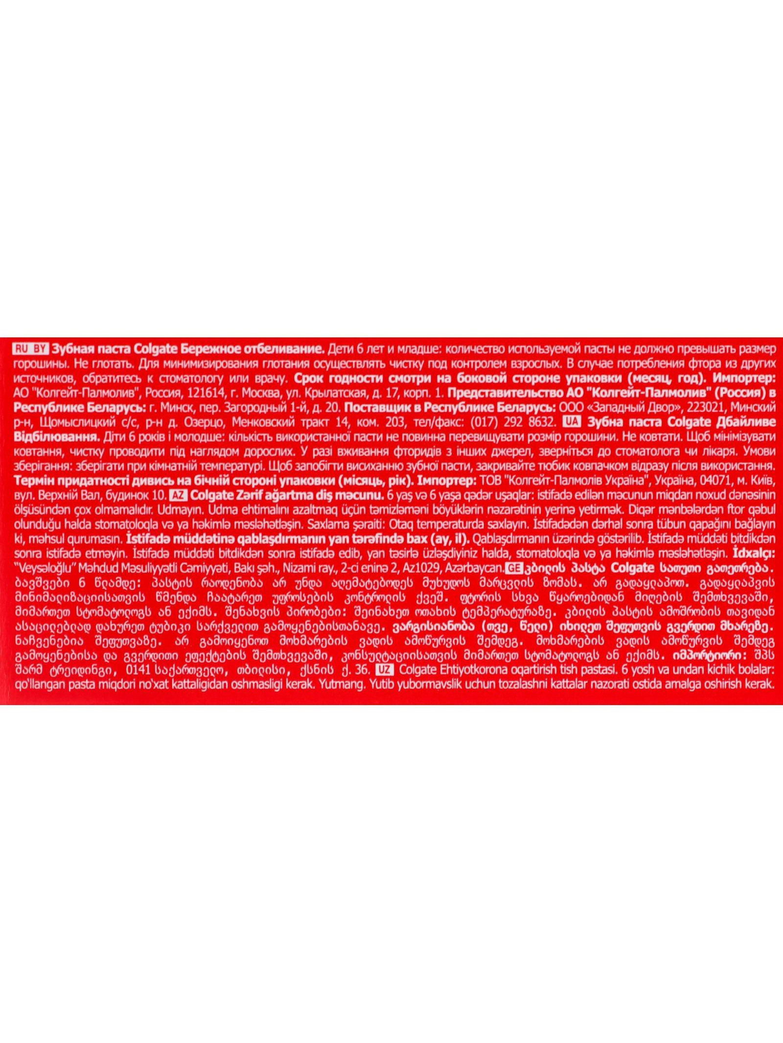 Зубная паста "Бережное отбеливание", 50 мл, 4x3.5x16 см., Colgate, Китай