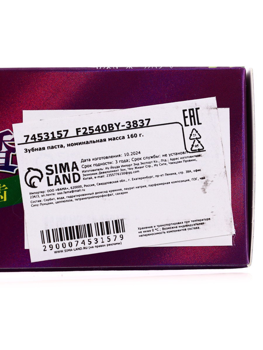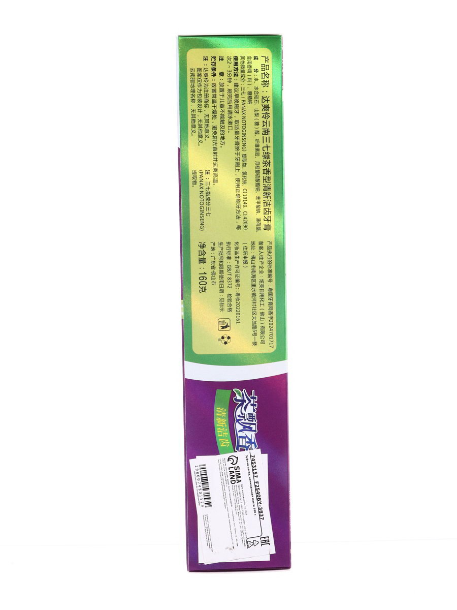 Зубная паста китайская традиционная, отбеливающая, с зеленым чаем, 160 г, 5x20x4 см., Китай
