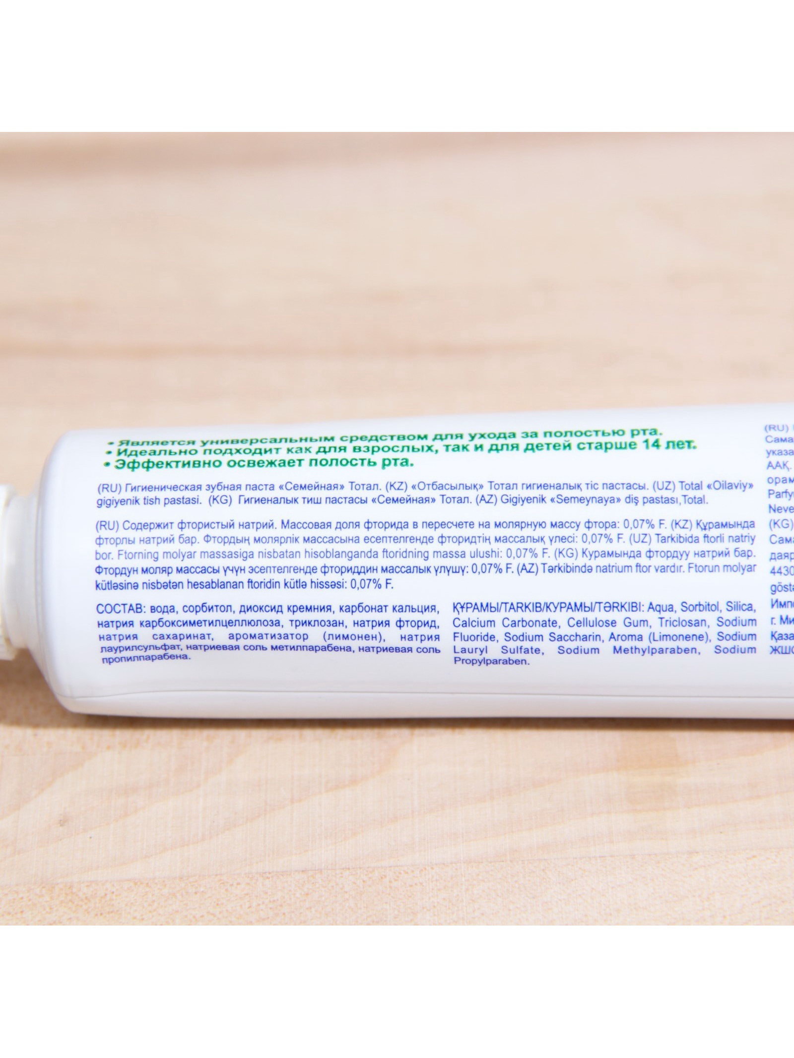 Размер упаковки: 3 x 19 x 4.5 см. Размер упаковки: 3 x 19 x 4.5 см. Вес/Объём: 90 г Возраст: Взрослый С дозатором: Нет tnved: 3306100000 tnved: 3306100000 Применение: Комплексный уход Вес, г/Объём, мл: 90 Описание: гигиеническая зубная паста для всей семьи. Является универсальным средством для ухода за полостью рта. Идеально подходит как для взрослых, так и для детей старше 14 лет. Зубная паста помещена в мягкий тюбик, что способствует полному использованию. Зубная паста обладает средним пенообразованием, эффективно освежает полость рта. Состав: косметическая основа 100%. Действие пасты: антибактериальная; защита от кариеса; отбеливающая. Назначение косметического средства: гигиена полости рта; для мам и малышей. | ||