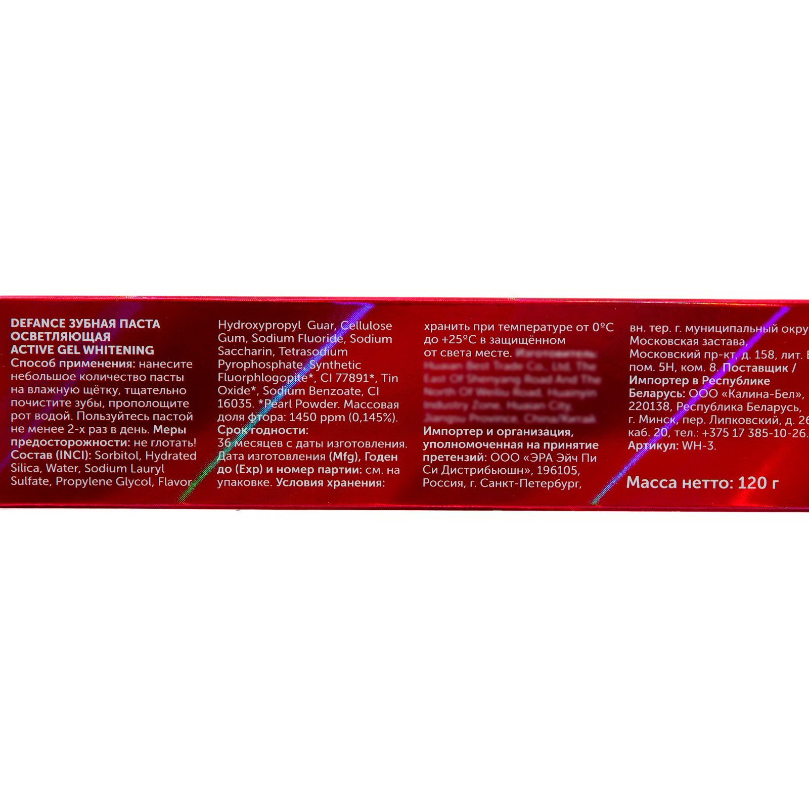 Зубная паста DEFANCE Oraldent Active Gel, отбеливающая, 120 г, Китай