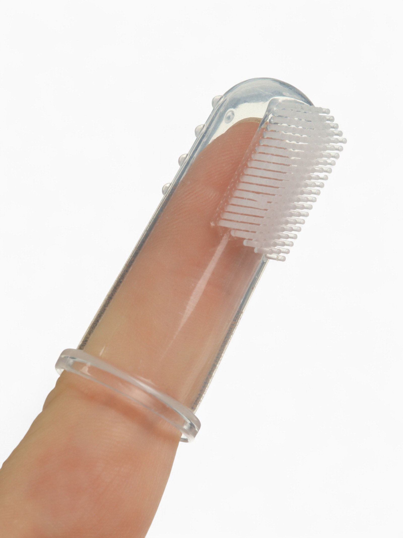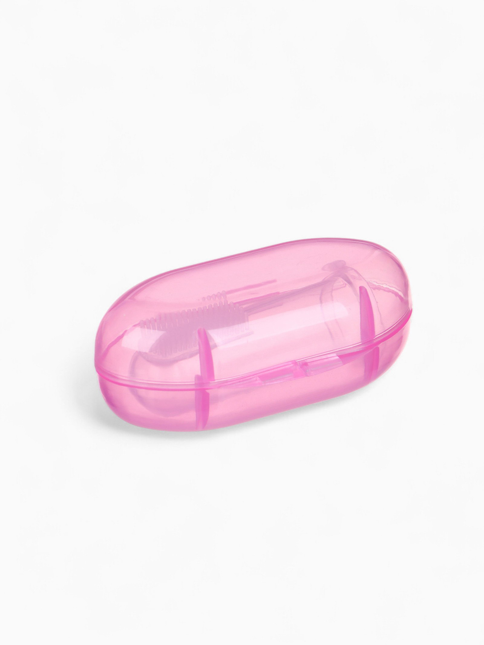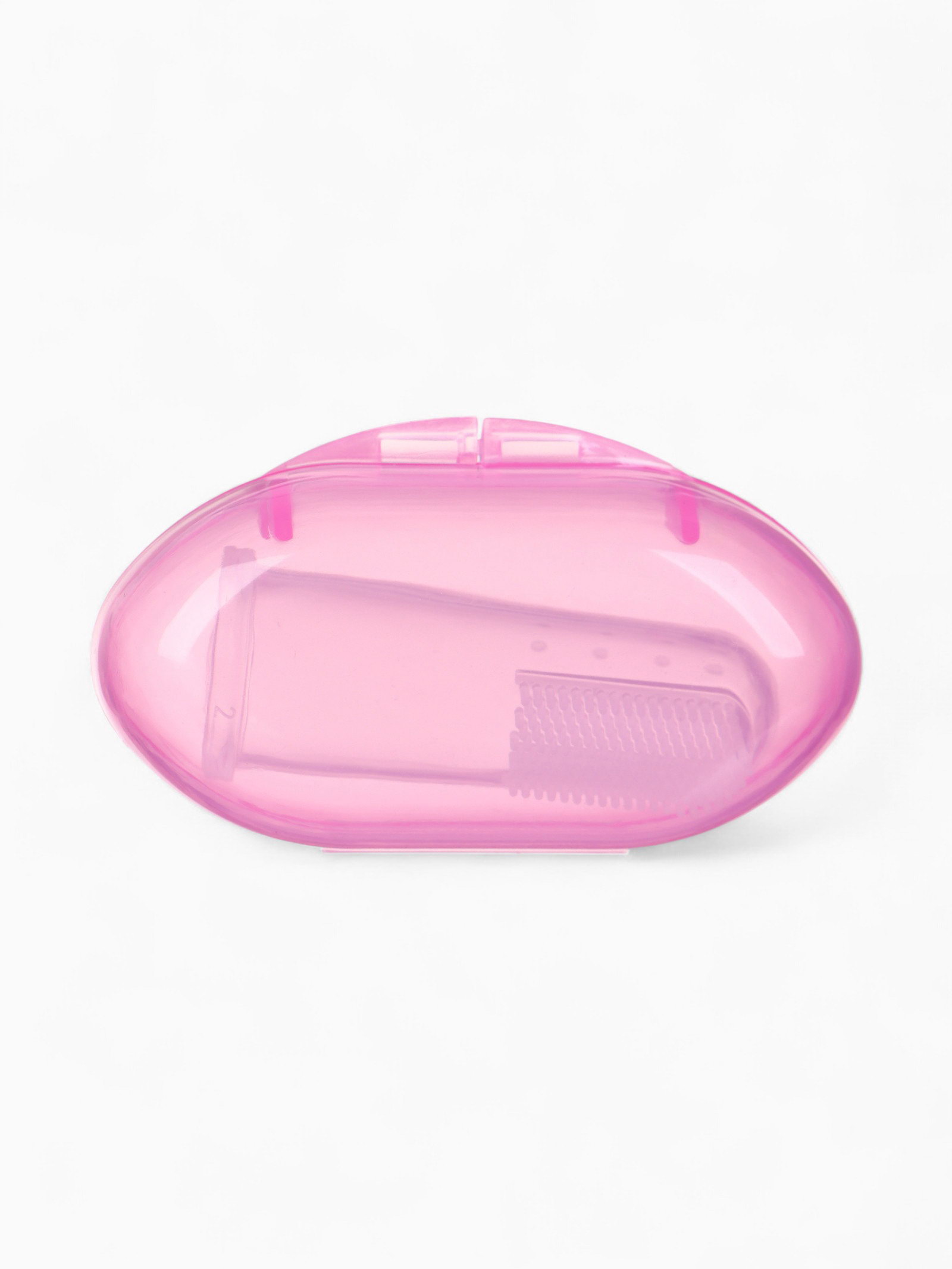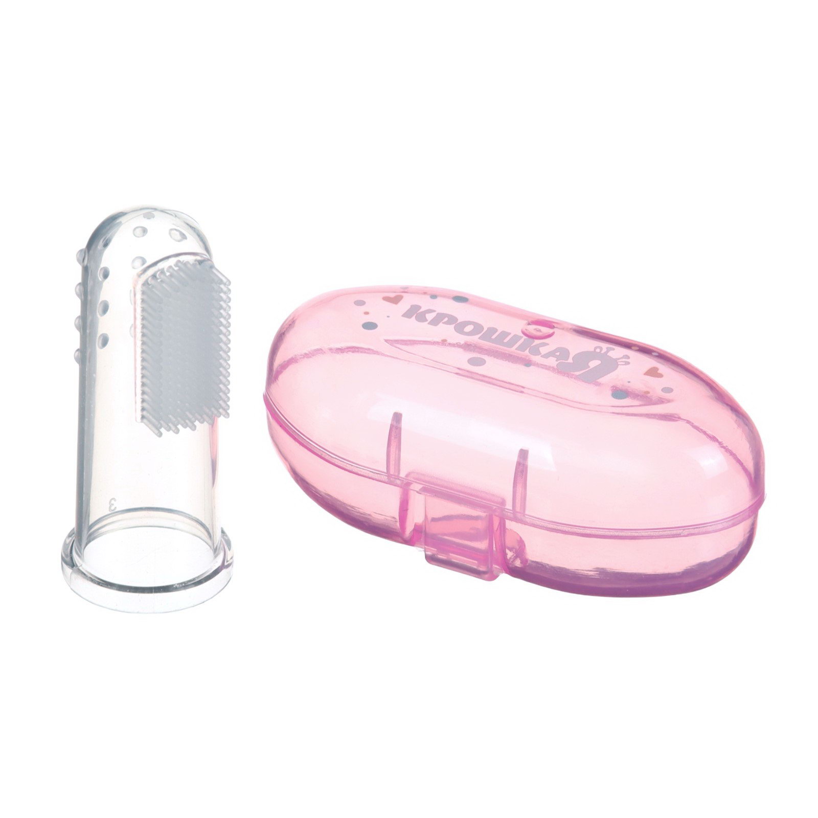 Прорезыватель - массажер 3 в 1, детский в контейнере, на палец, силиконовый от 3 мес., розовый, 3x7x3 см., Крошка Я, Китай