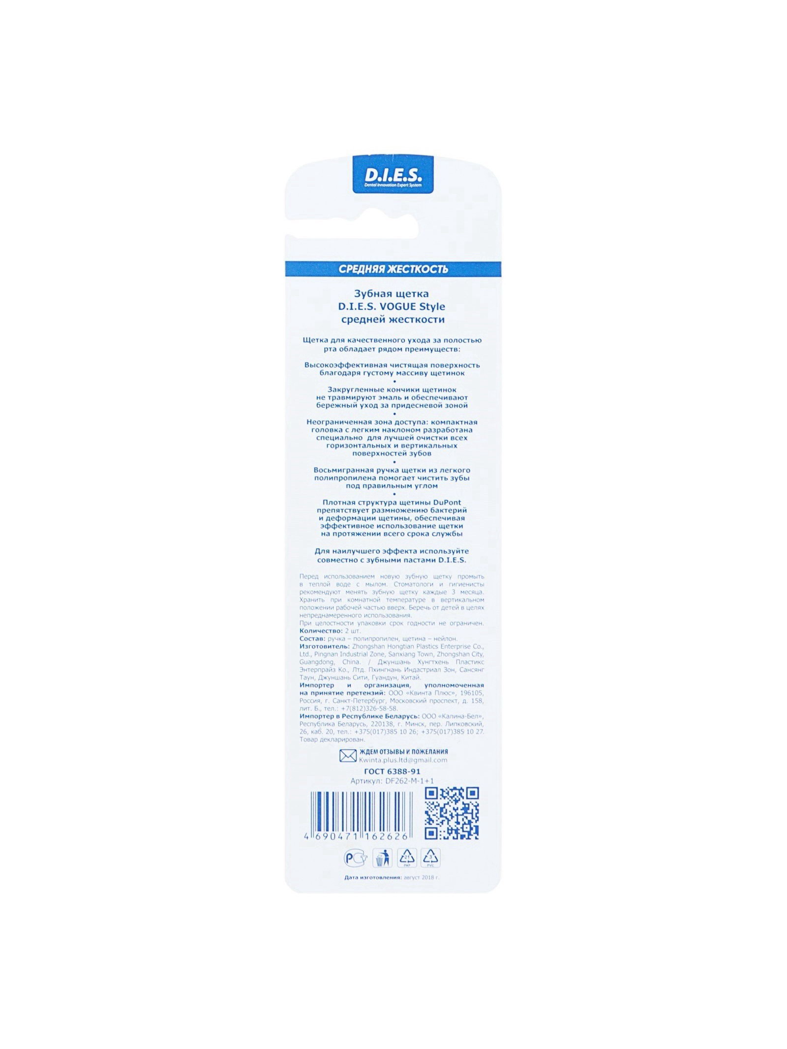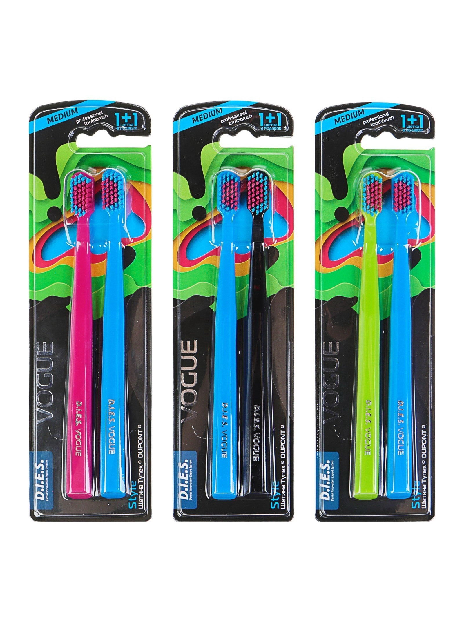 Зубная щётка Vogue Style средней жёсткости, 1+1 шт., 2.2x6.8x23.4 см., D.I.E.S., Китай
