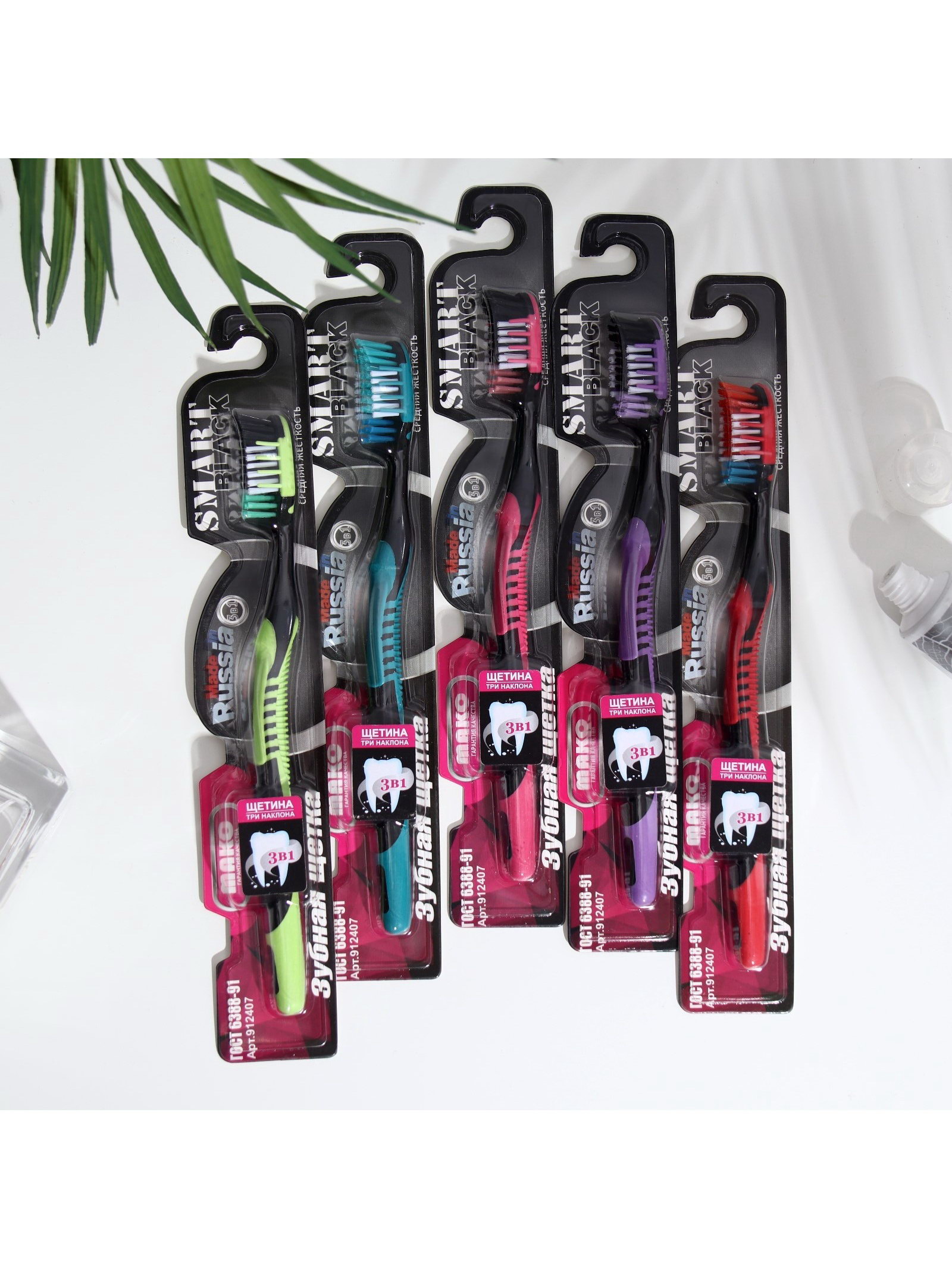 Зубная щётка "Сплит" Black средней жесткости, ЛенПластПолимер, РОССИЯ
