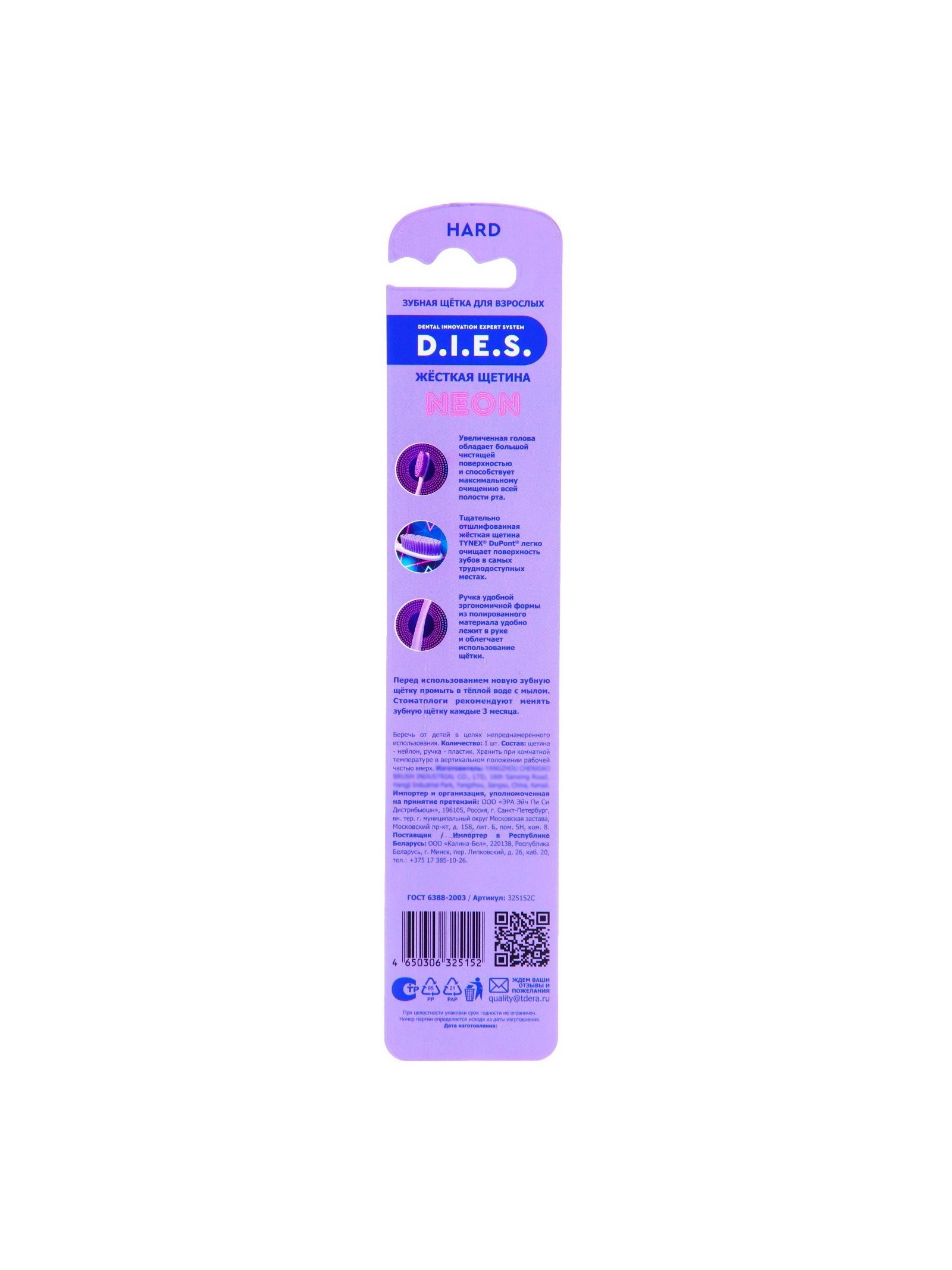 Зубная щетка Neon, жесткая, зеленый, D.I.E.S., Китай