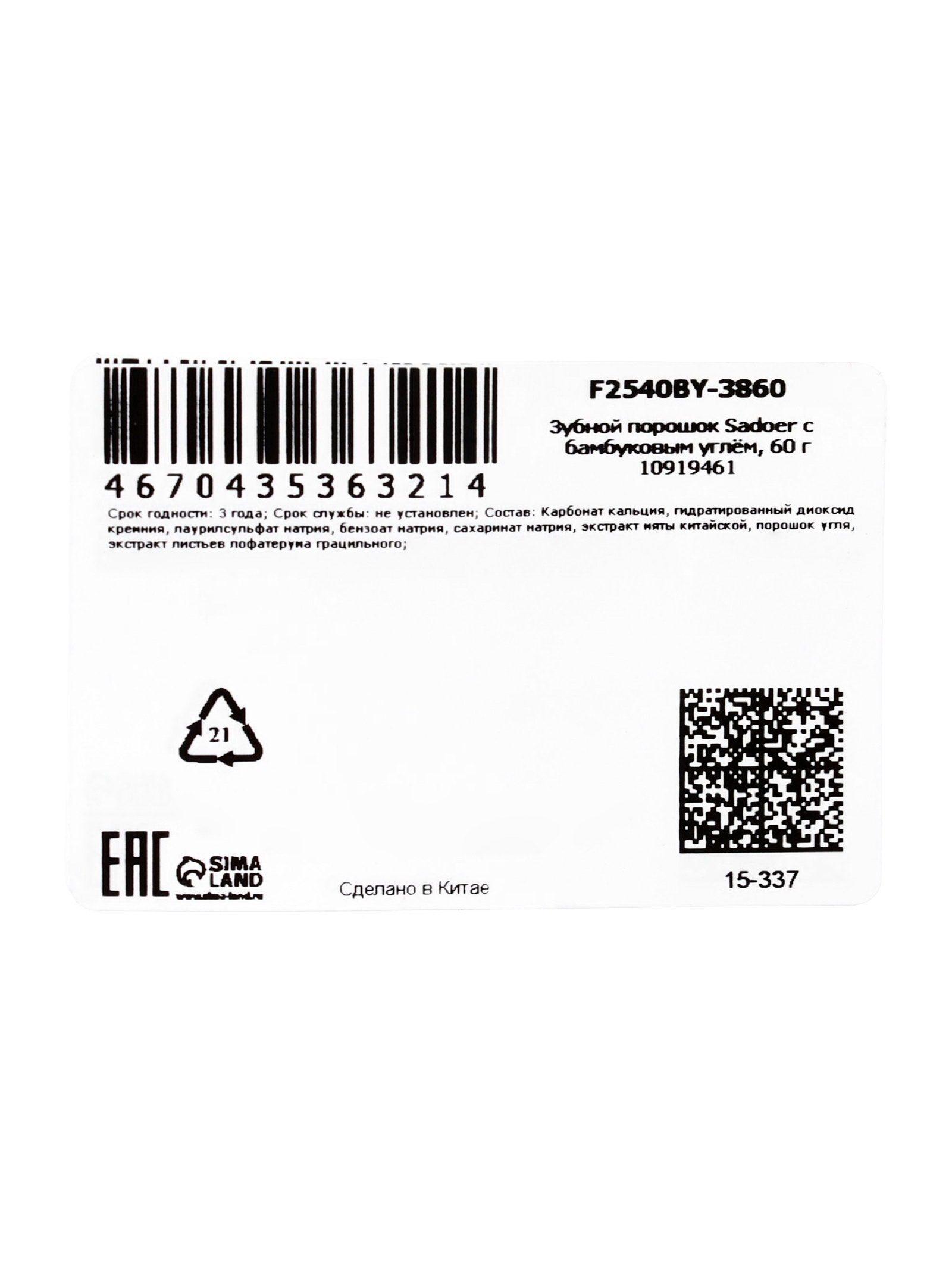 Зубной порошок с бамбуковым углём, 60 г, SADOER, Китай