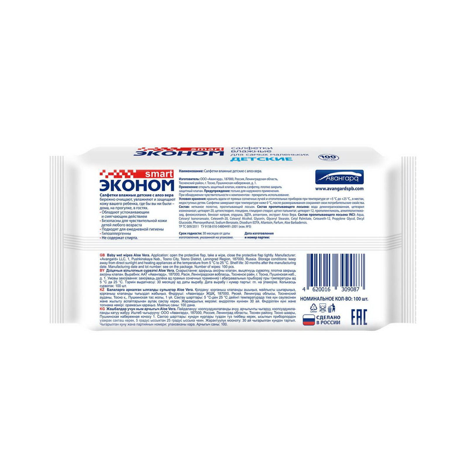 Влажные салфетки детские 100 шт., Эконом Smart, Россия