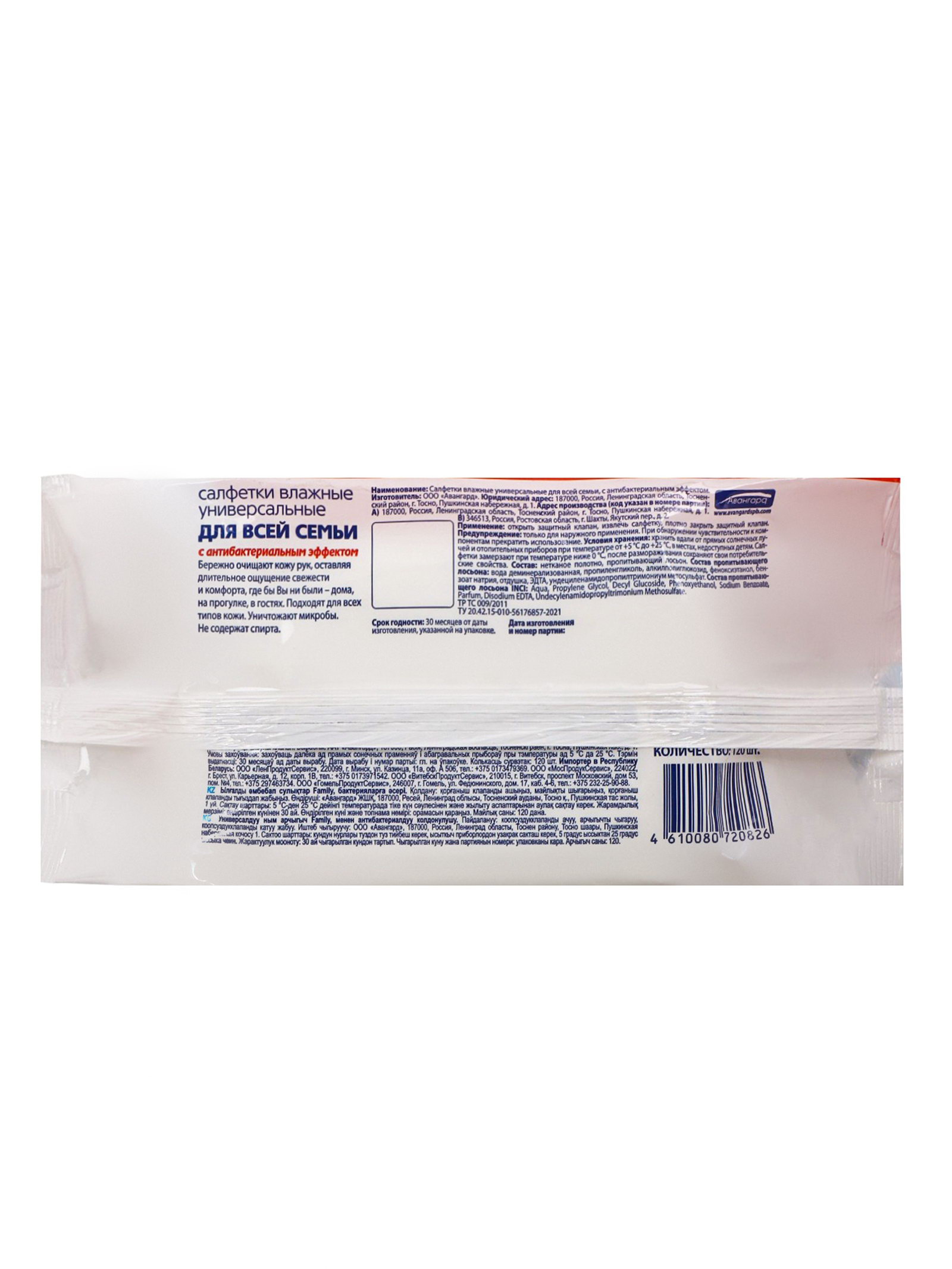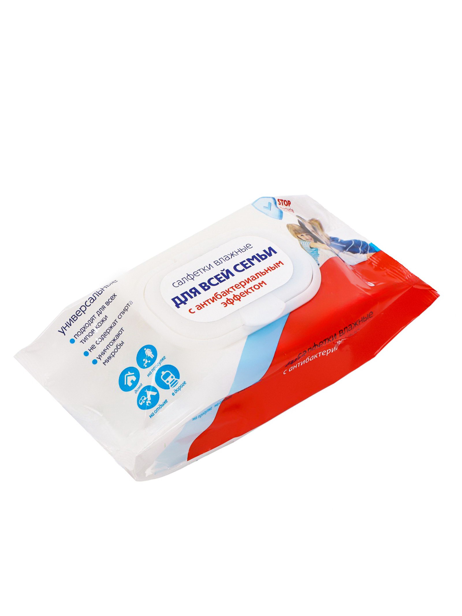 Влажные салфетки антибактериальные, универсальные с пластиковым клапаном, для всей семьи, 120 шт., Россия