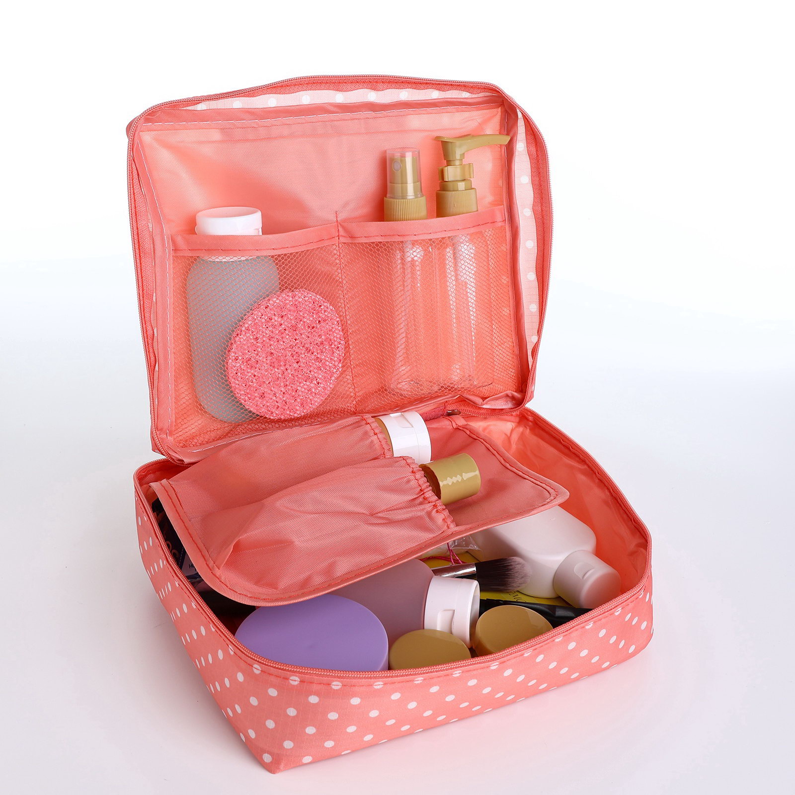 Косметичка-органайзер дорожная на молнии, с карманами, в мелкий горох, розовая, 8x21x16 см., Китай
