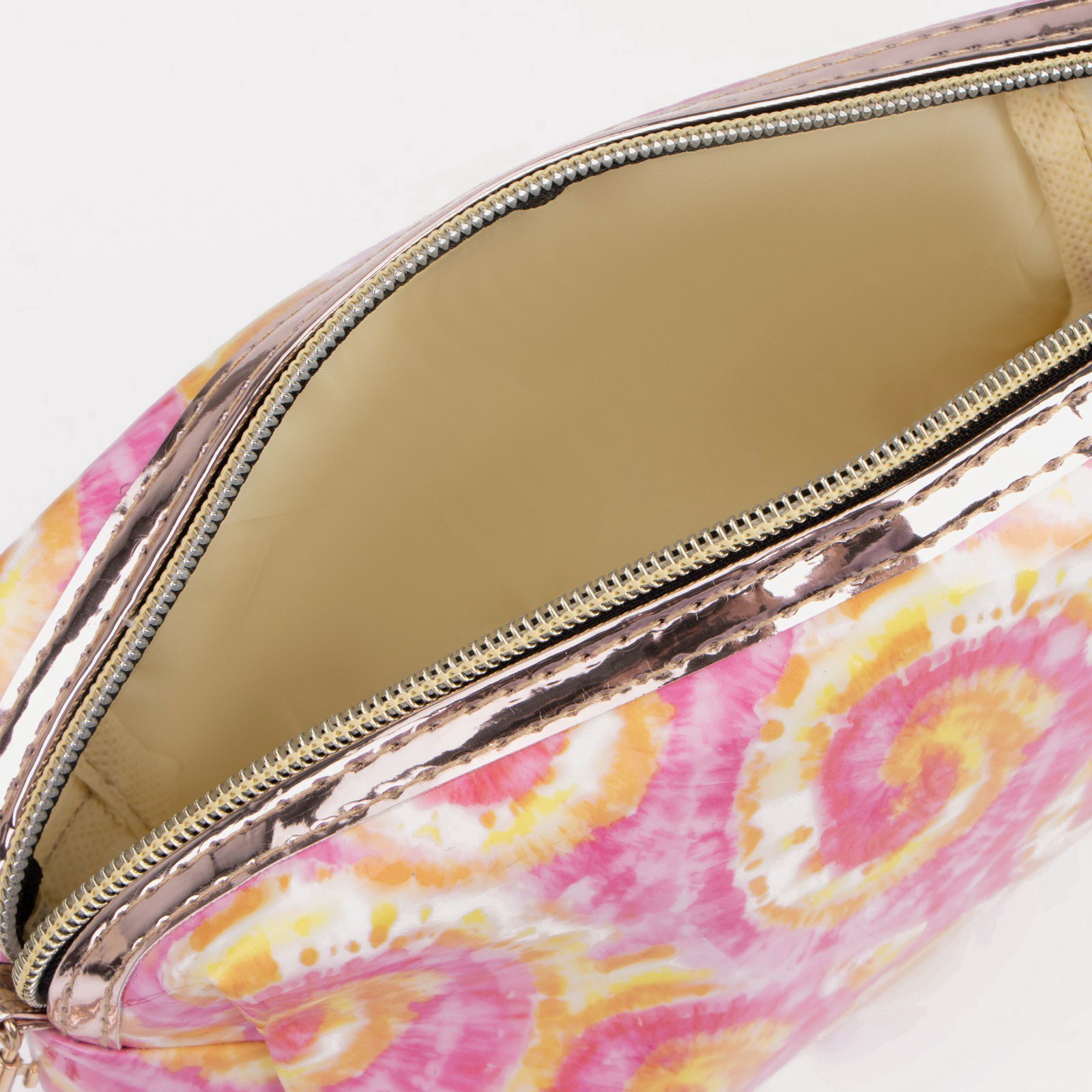 Косметичка дорожная на молнии, с ручкой, с принтом, розовая/разноцветная, 10x19x9 см., Китай