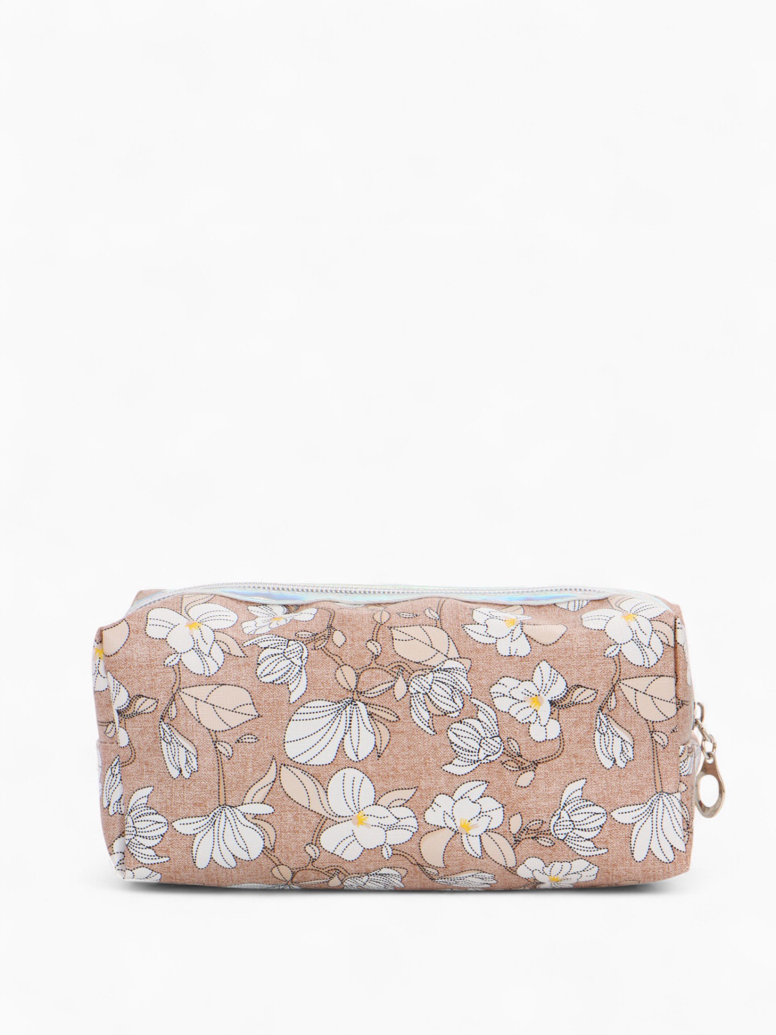 Косметичка на молнии женская, с рисунком, с рисунком, пастельно-коричневая, 6x19x9 см., Китай