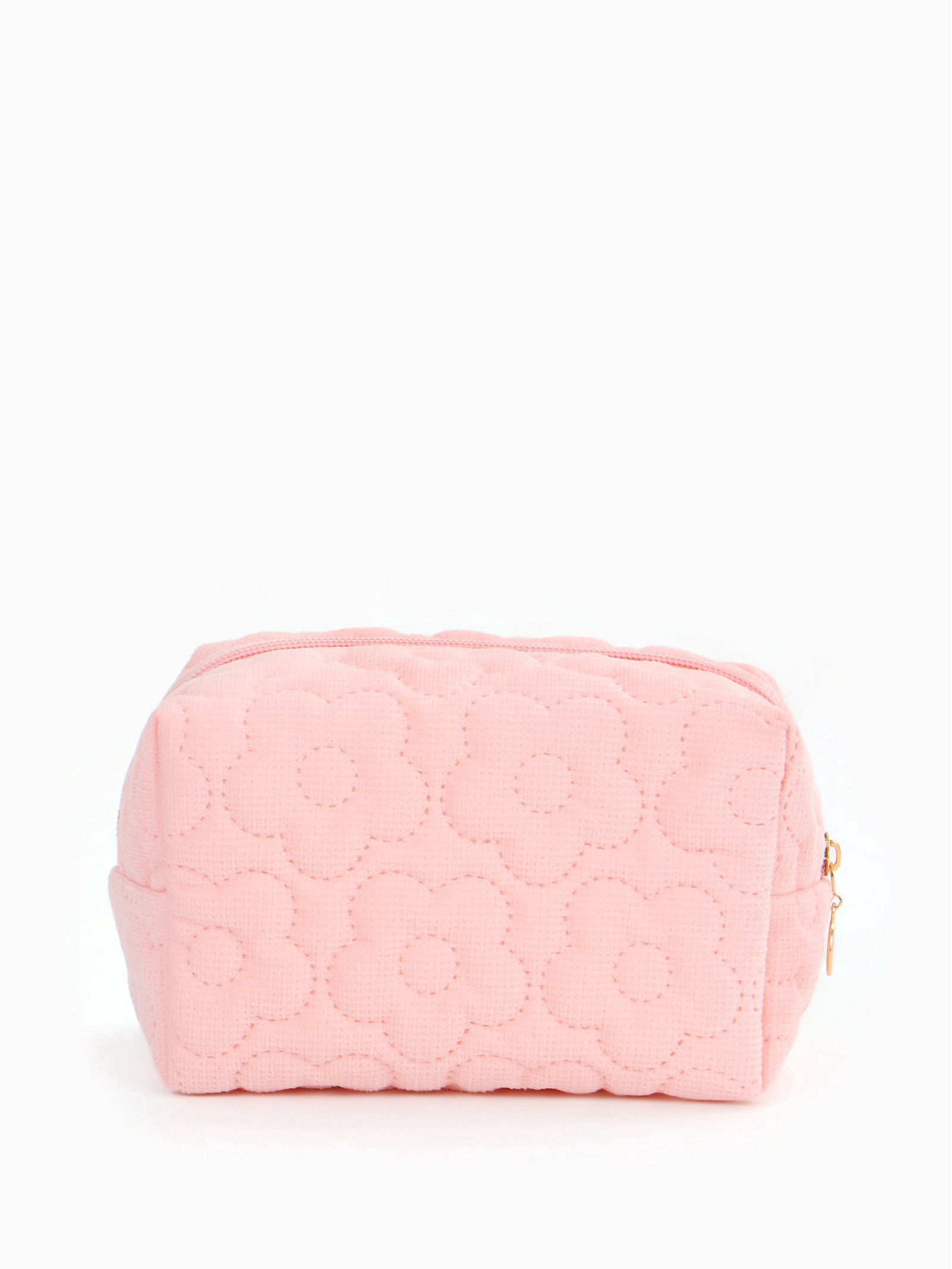 Косметичка объёмная на молнии, маленькая, с вышивкой, светло-розовая, 8x16x10 см., Китай