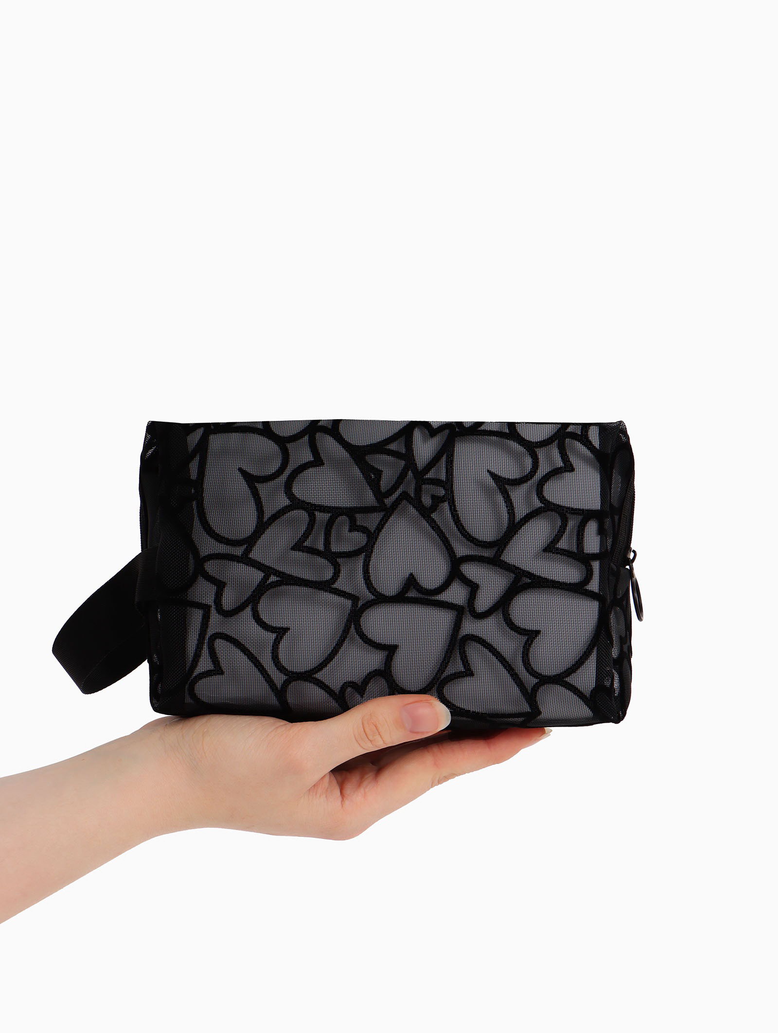 Косметичка дор Сердца 21*9.5*13, отд на молнии, черный, 9.5x21x13 см., Китай