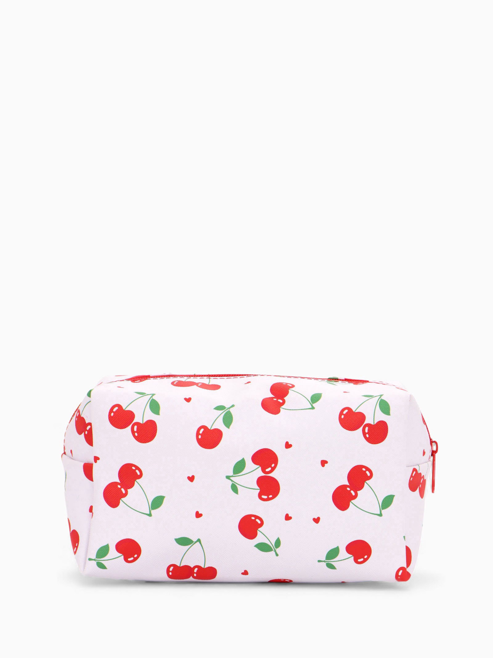 Косметичка женская "Вишенки", на молнии, с рисунком, белая, 10x19x11 см., Китай