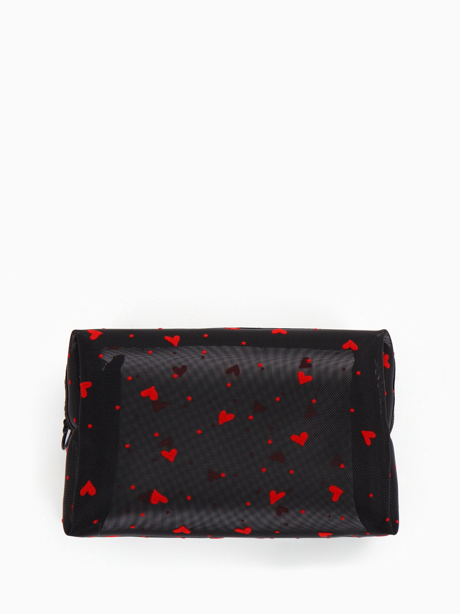Косметичка женская HEARTS, с рисунком, сетка, на молнии, чёрная, 7.5x18x10 см., Китай