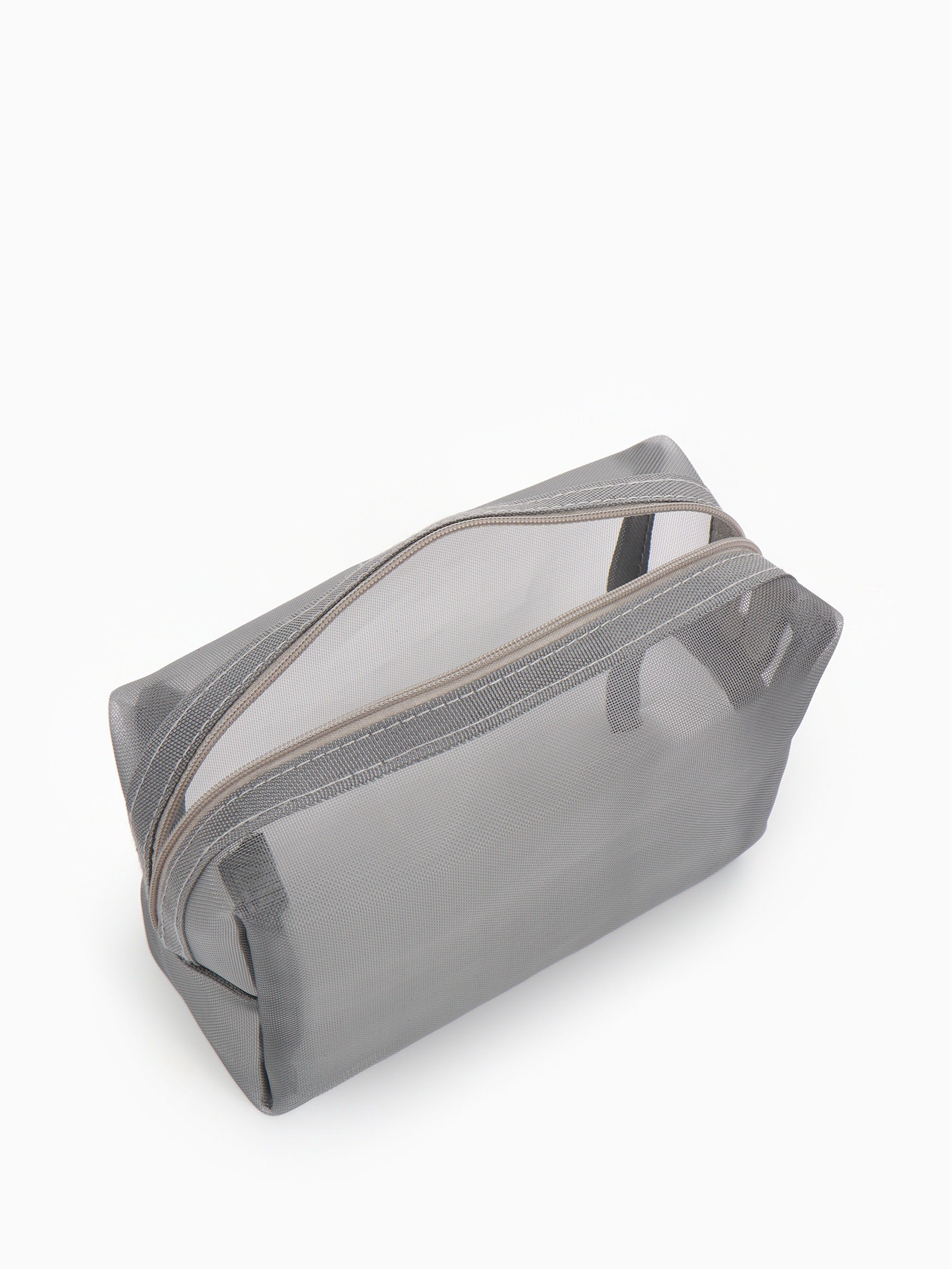 Косметичка Classic, полупрозрачная, на молнии, серая, 7.5x18x10 см., Китай