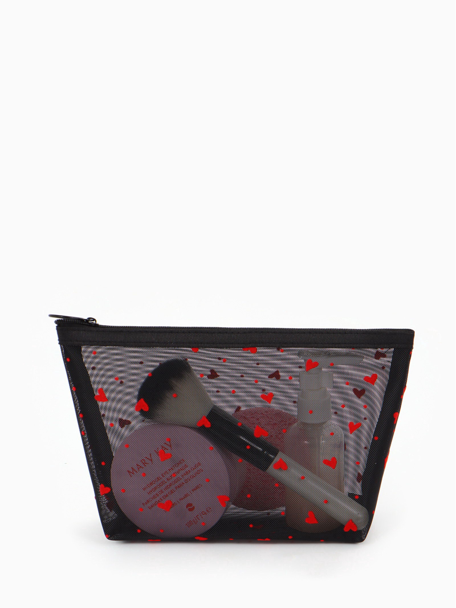 Косметичка женская Little love, с рисунком, на молнии, чёрная, 6.5x17x13.5 см., Китай