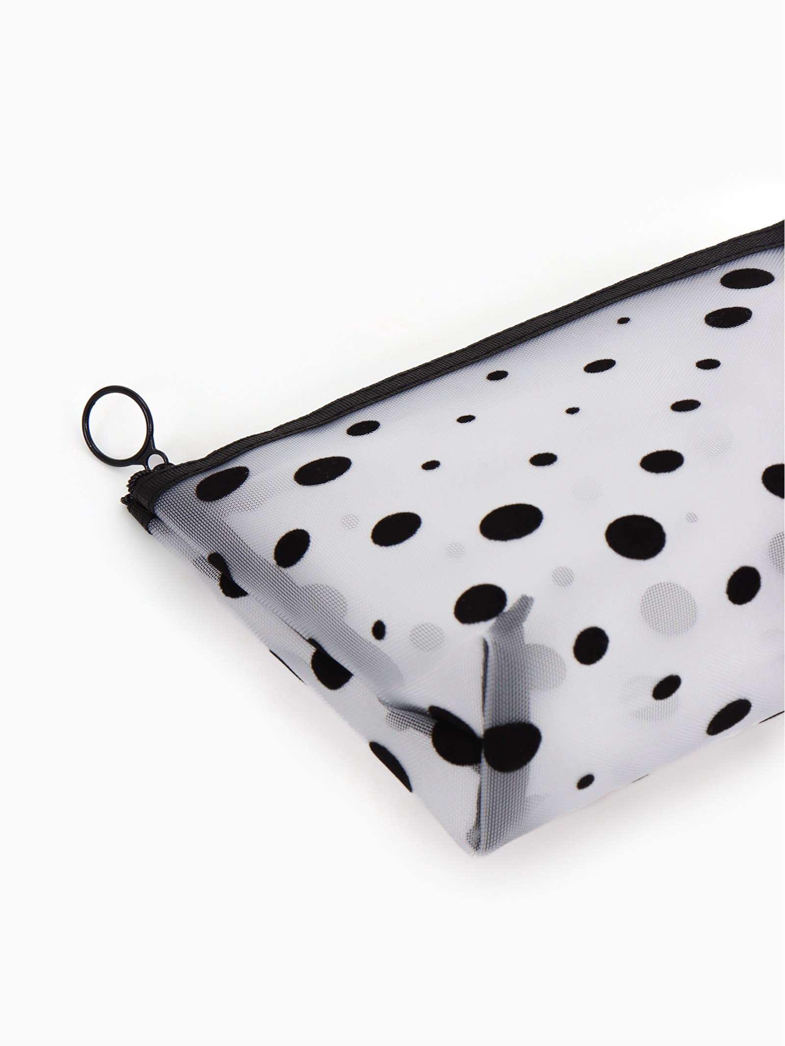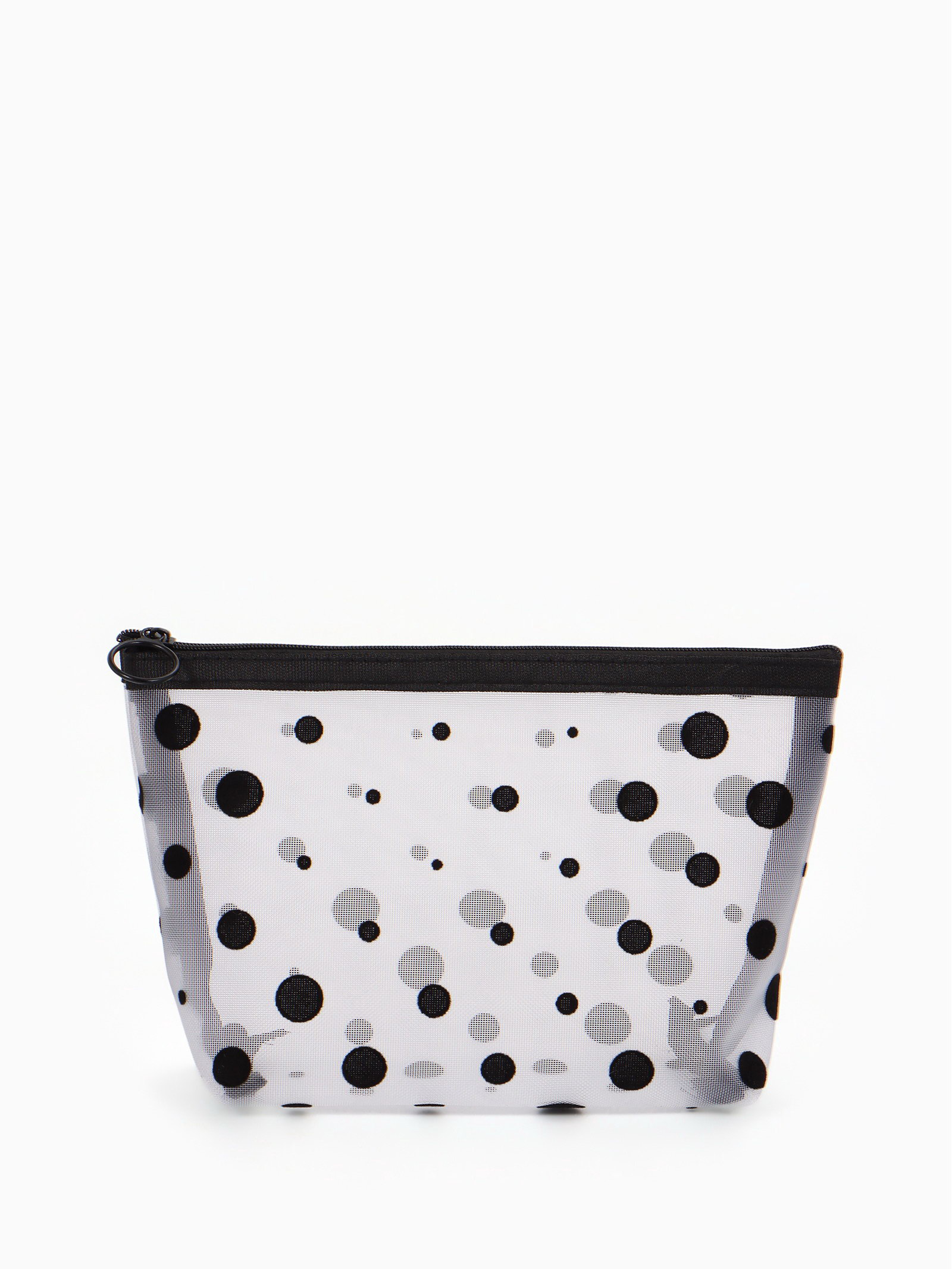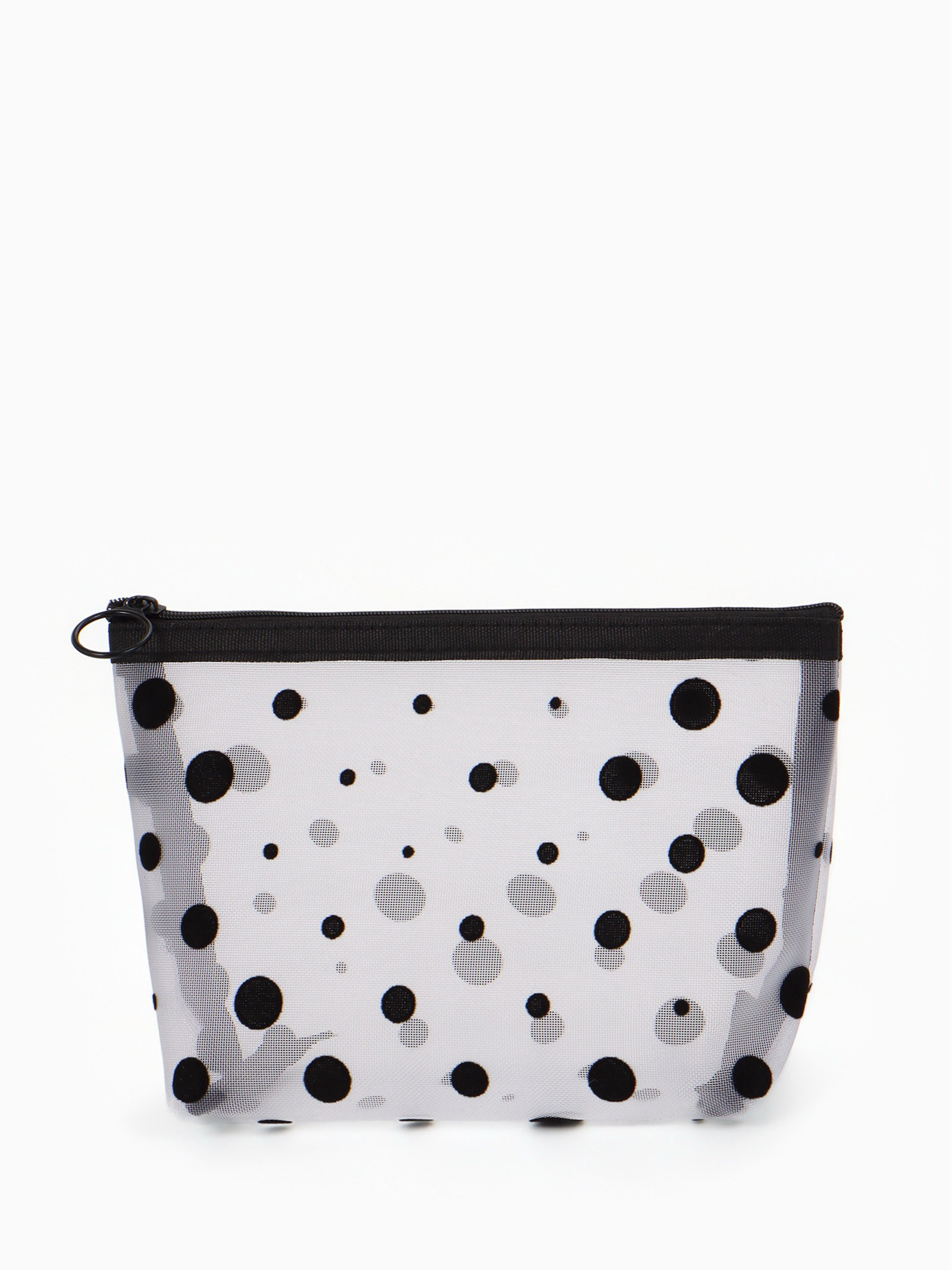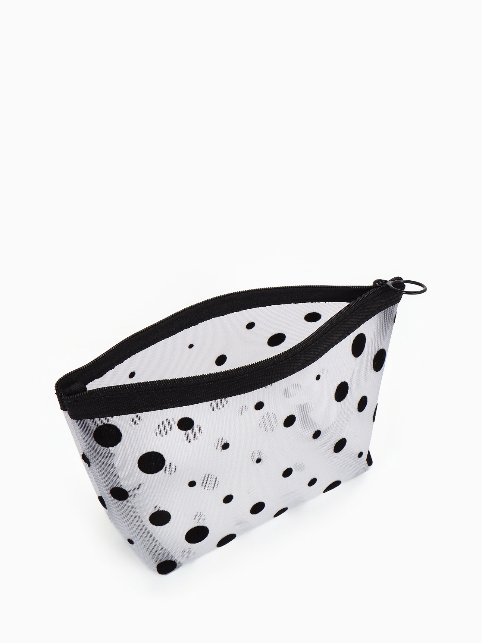 Косметичка DOTs, с рисунком, сетка, на молнии, белая, 6.5x17x13.5 см., Китай