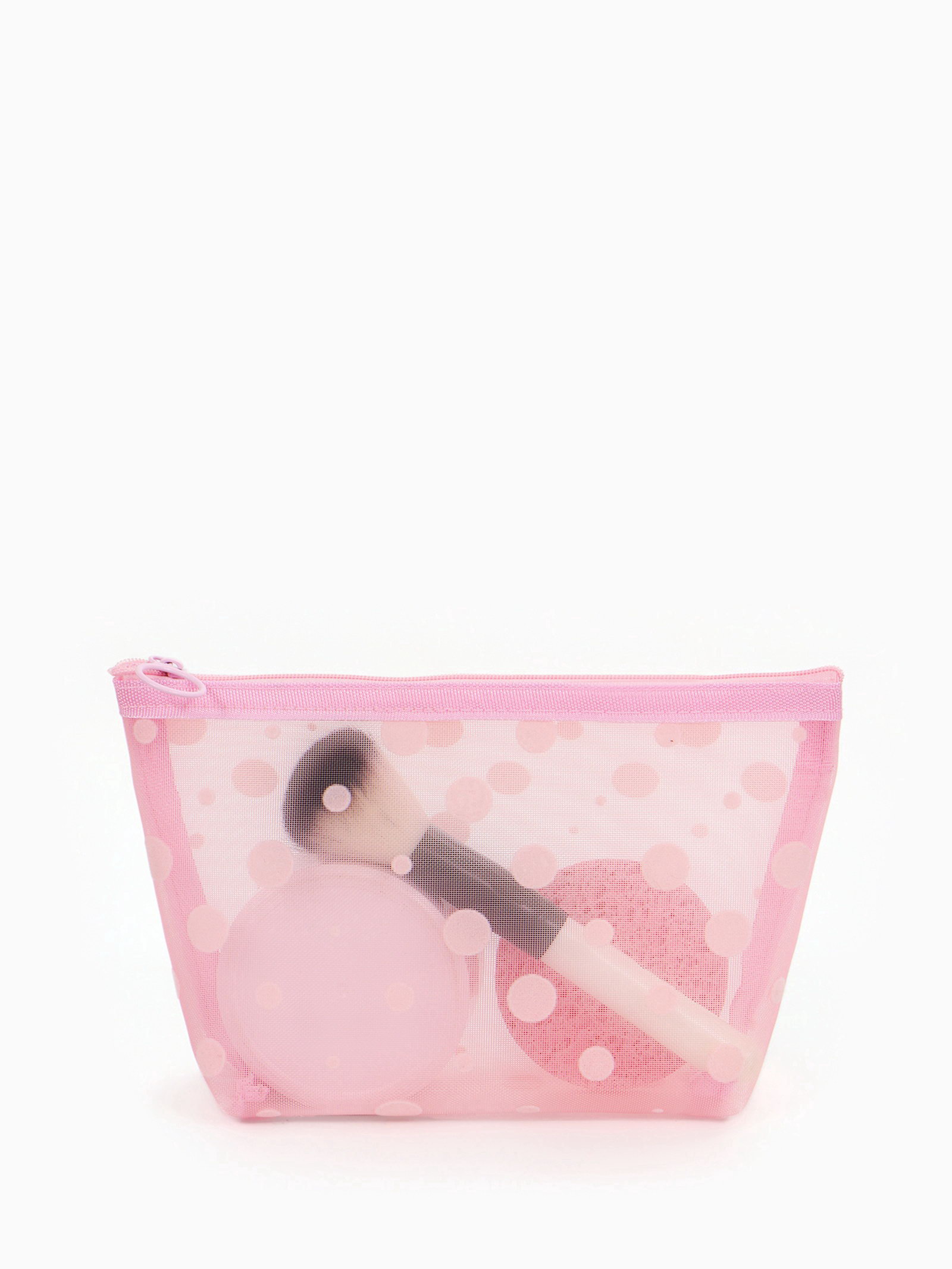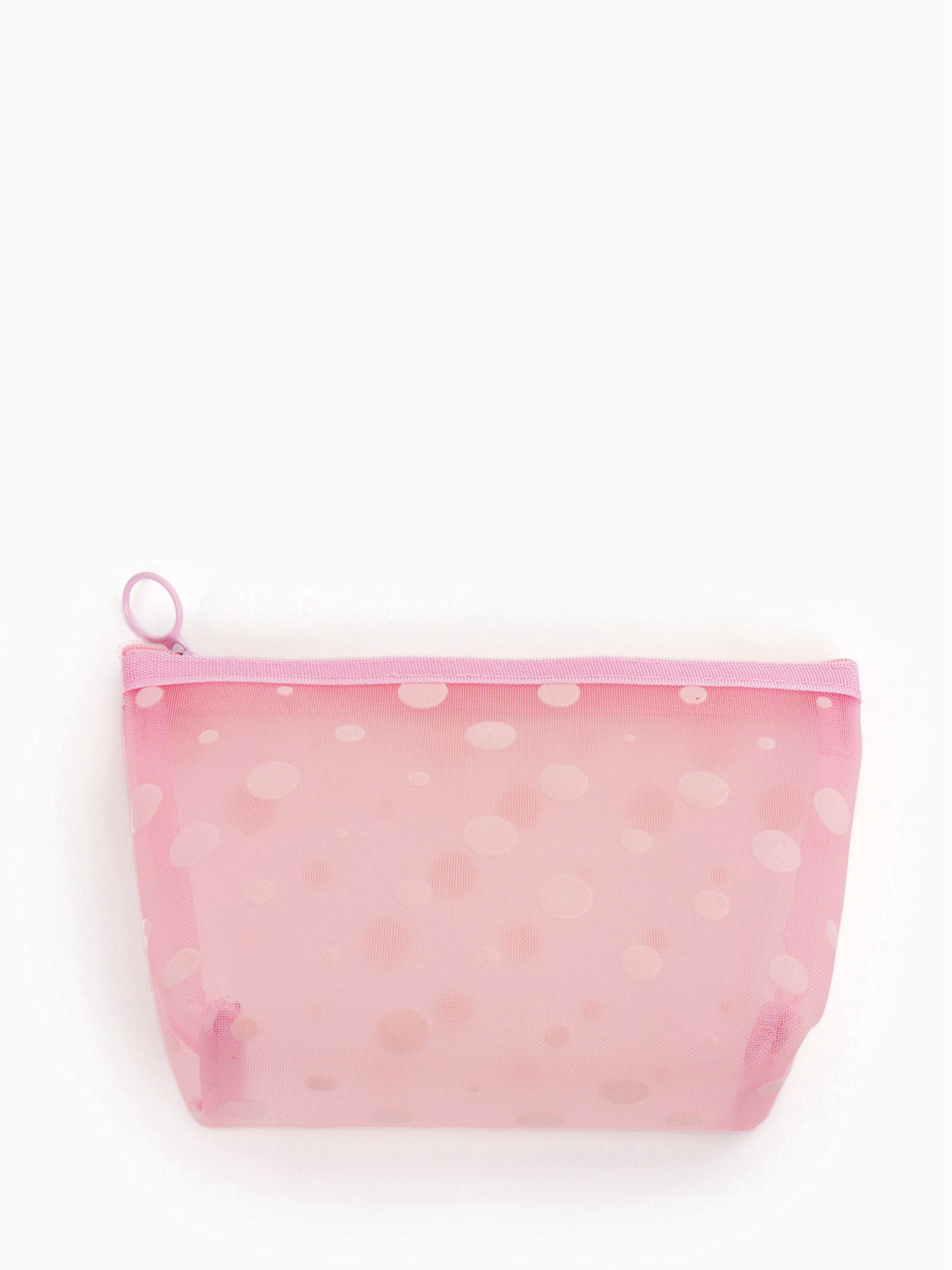 Косметичка DOTs, с рисунком, сетка, на молнии, розовая, 6.5x17x13.5 см., Китай