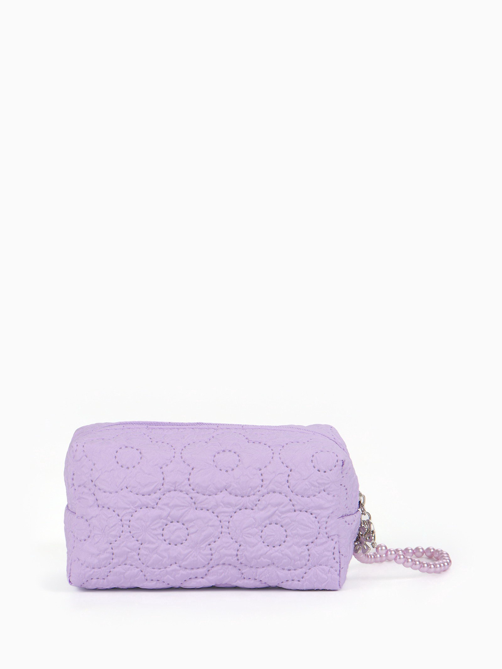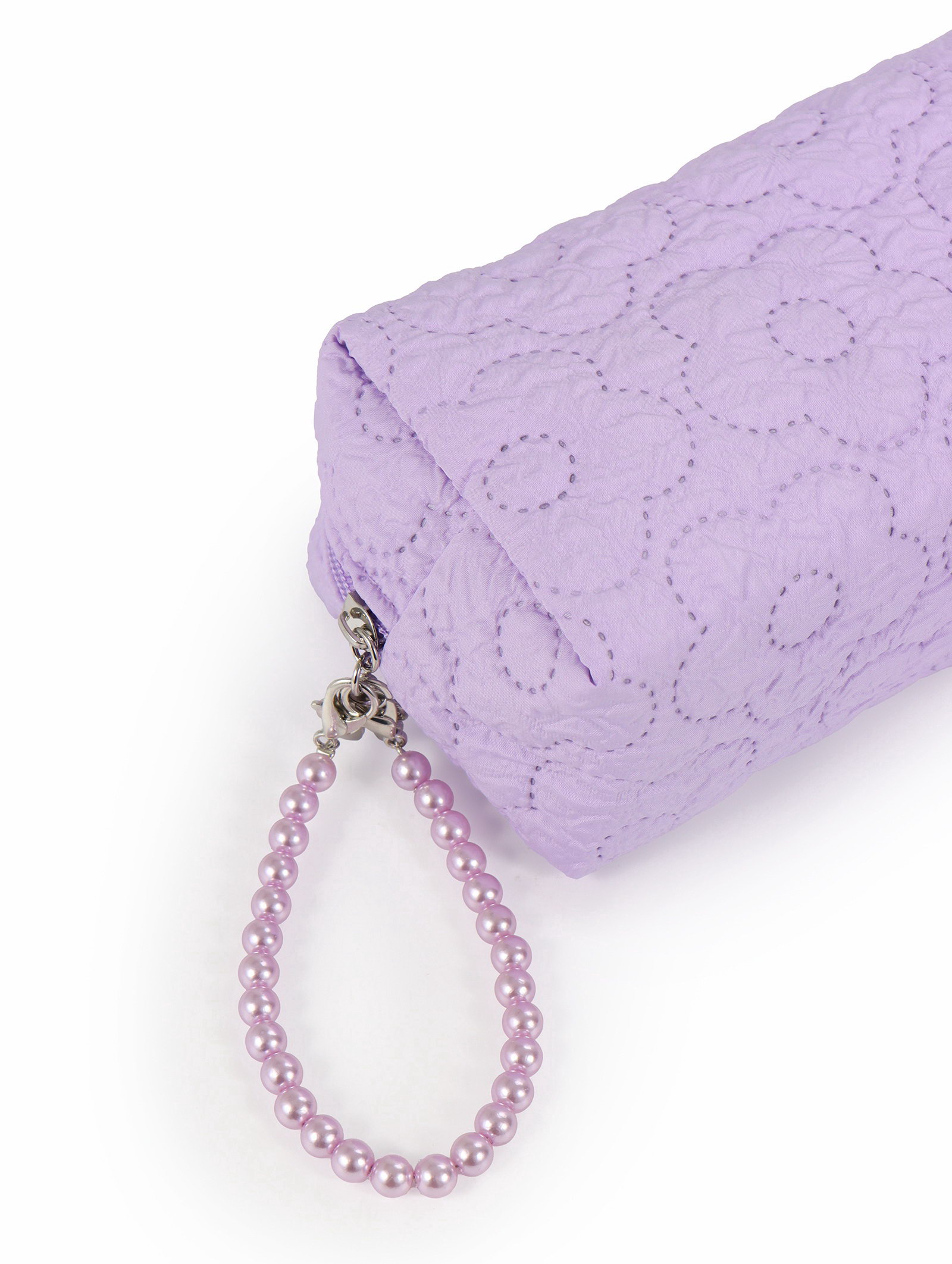 Косметичка женская "Цветочек", ручка из бусин, сиреневая, 6x17x9 см., Китай