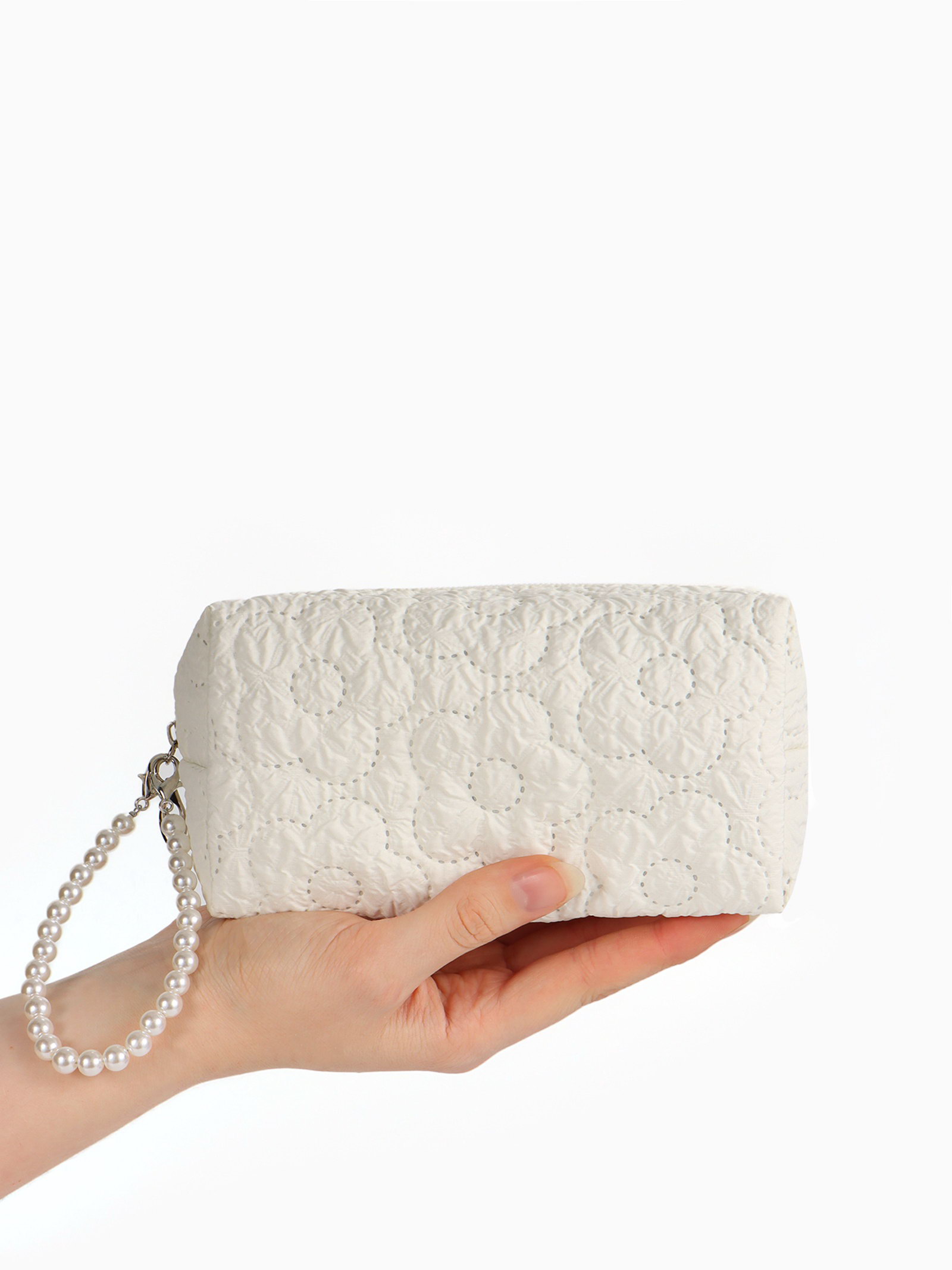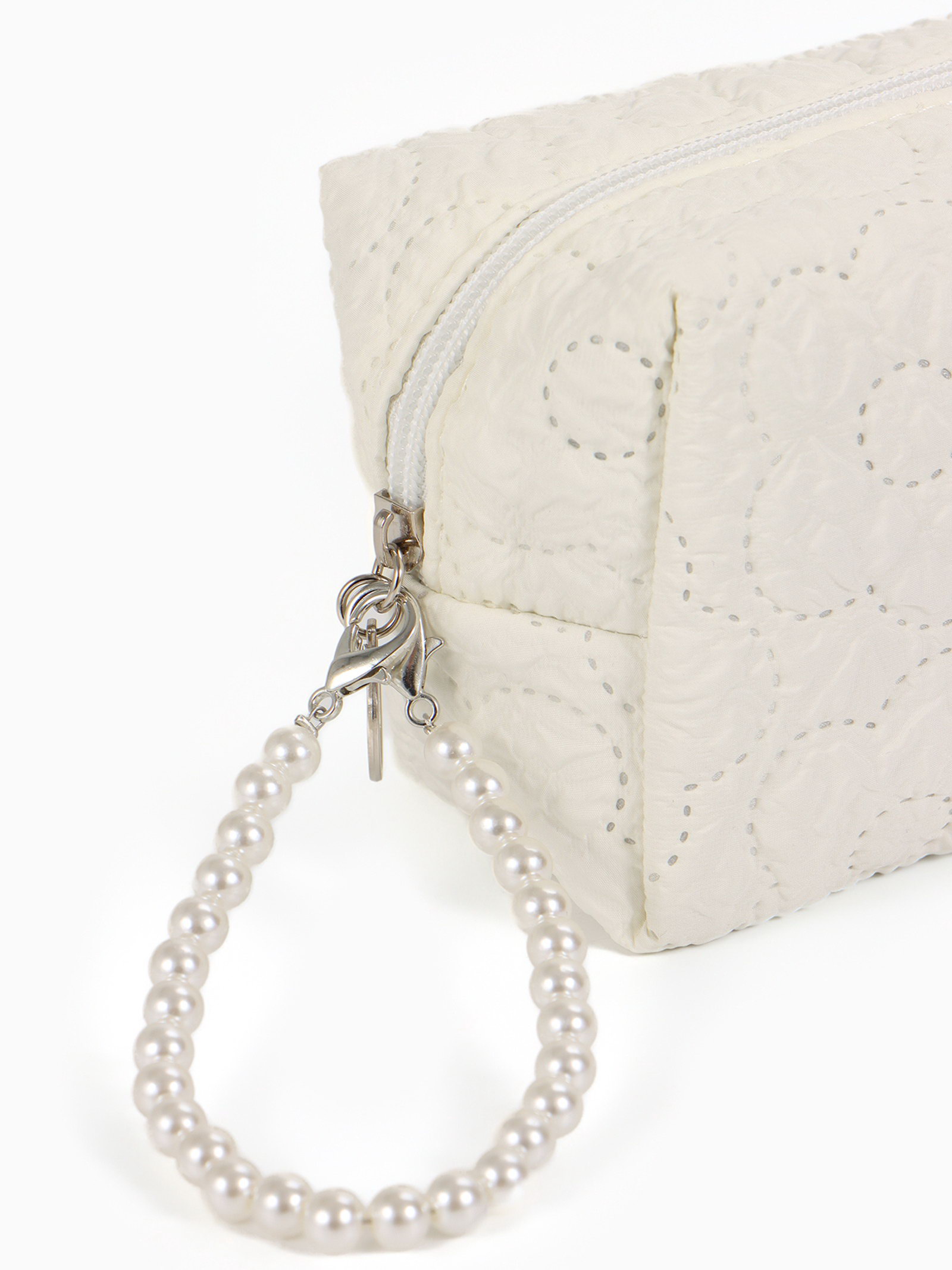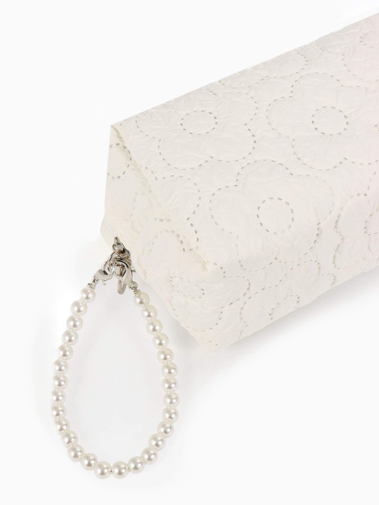 Косметичка женская "Цветочек", ручка из бусин, молочная, 6x17x9 см., Китай