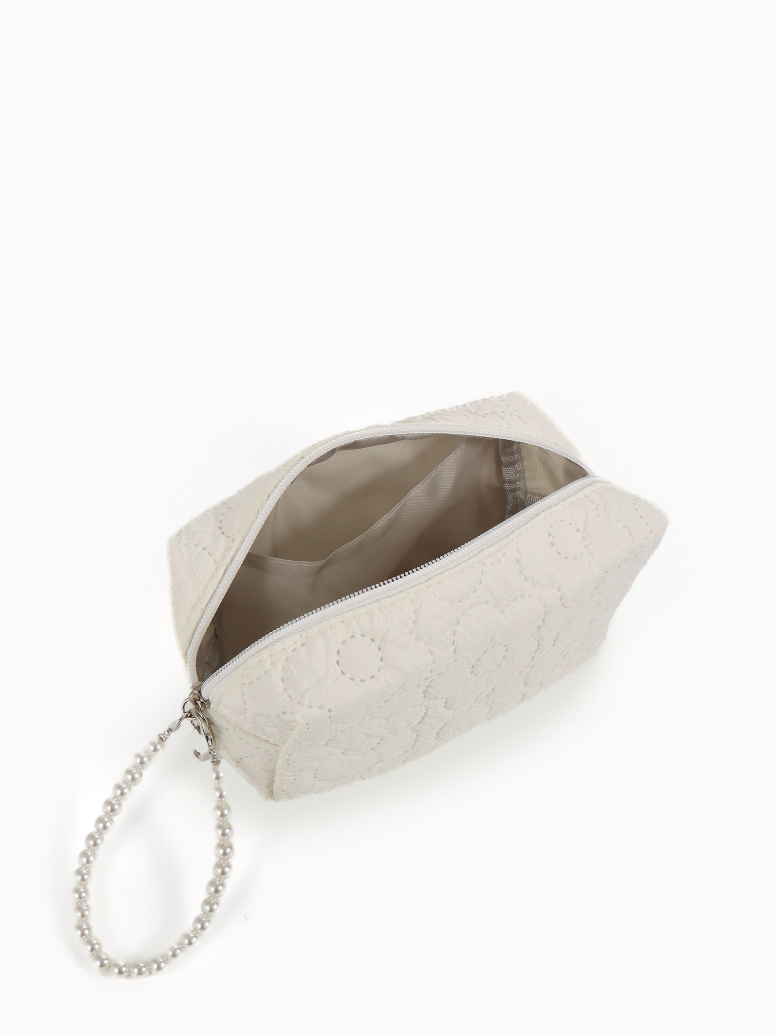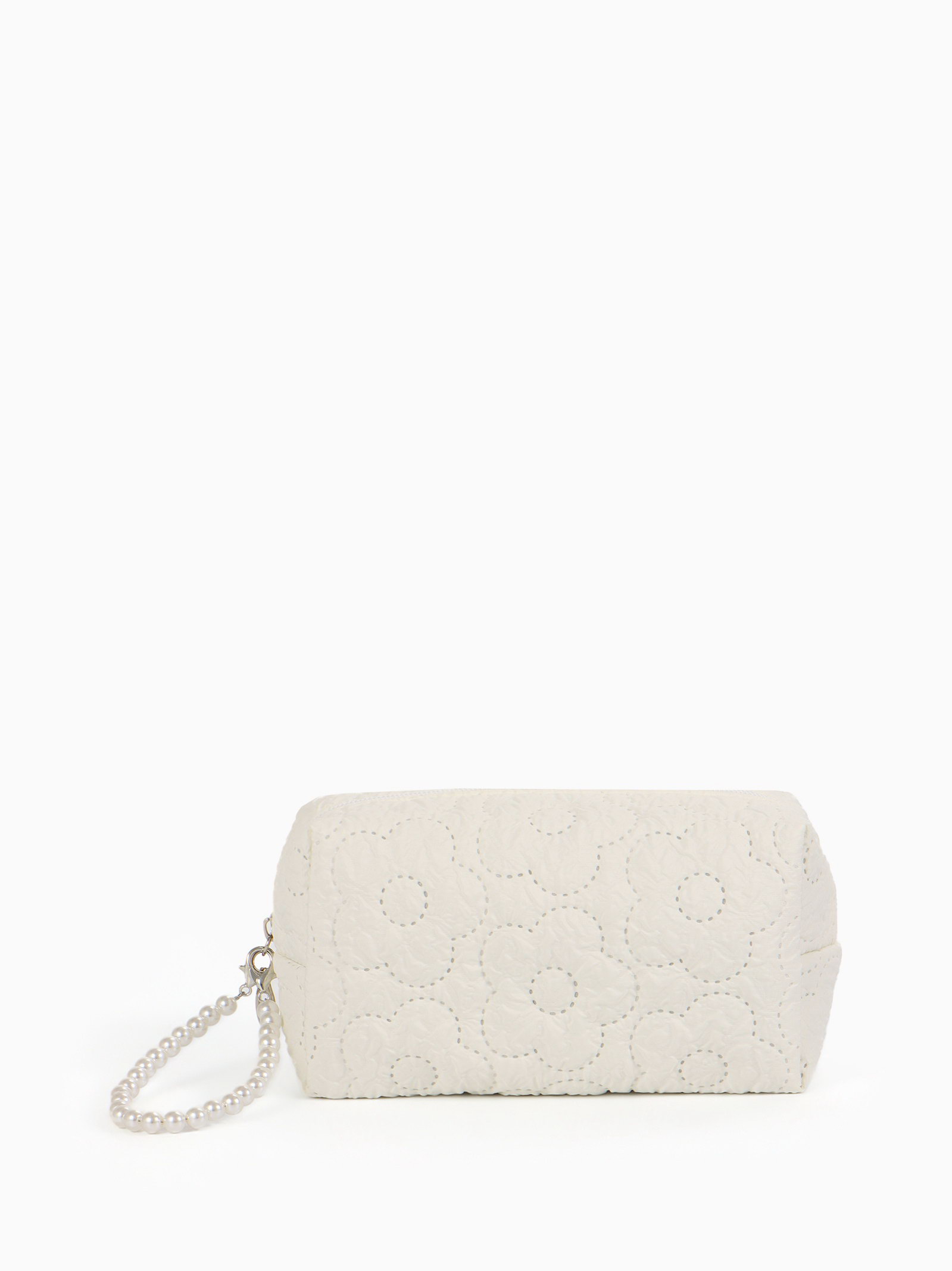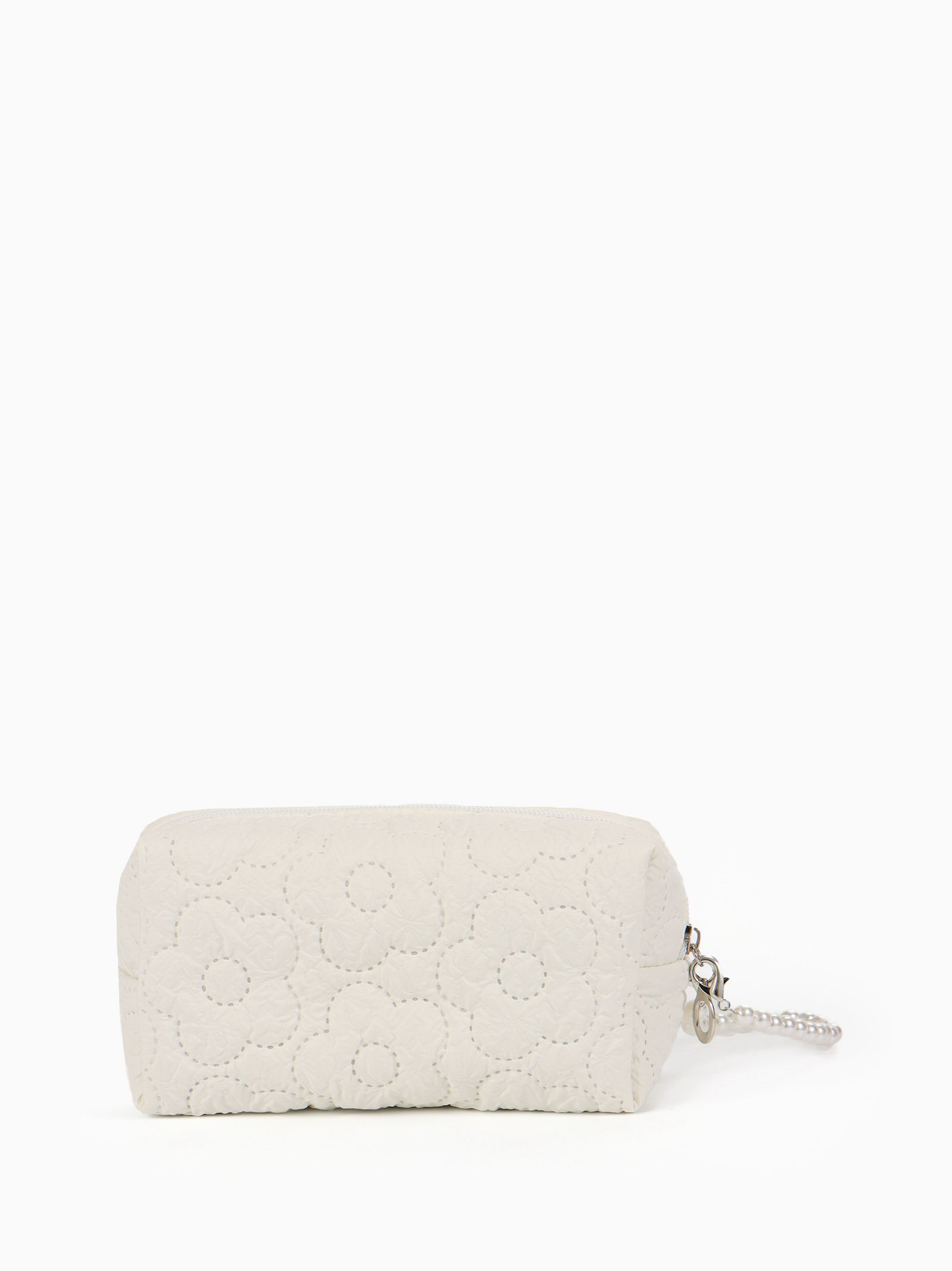 Косметичка женская "Цветочек", ручка из бусин, молочная, 6x17x9 см., Китай