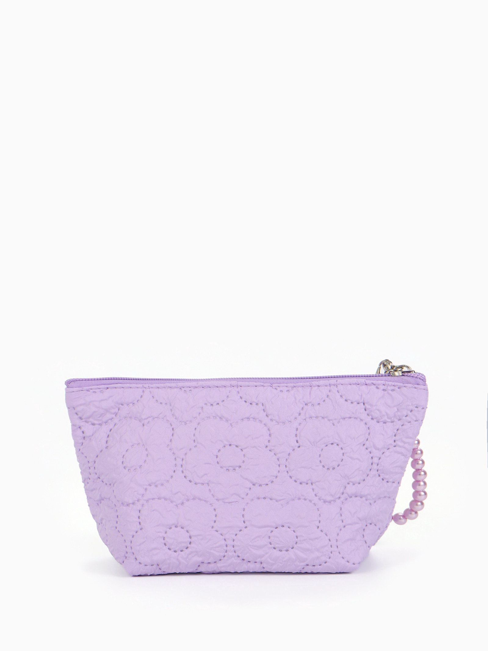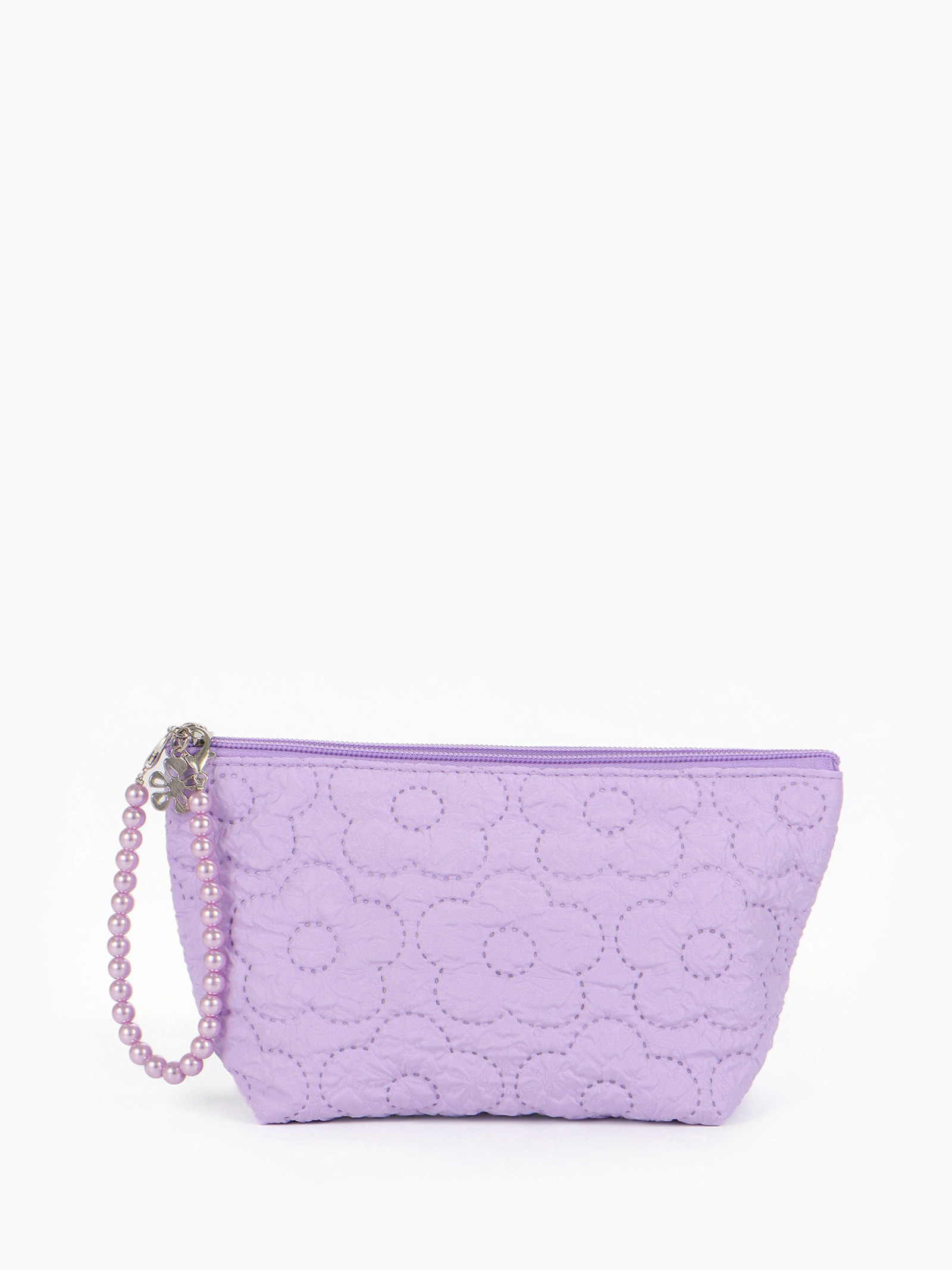 Косметичка женская "Цветочки", на молнии, ручка из бусин, сиреневая, 6x22x16 см., Китай