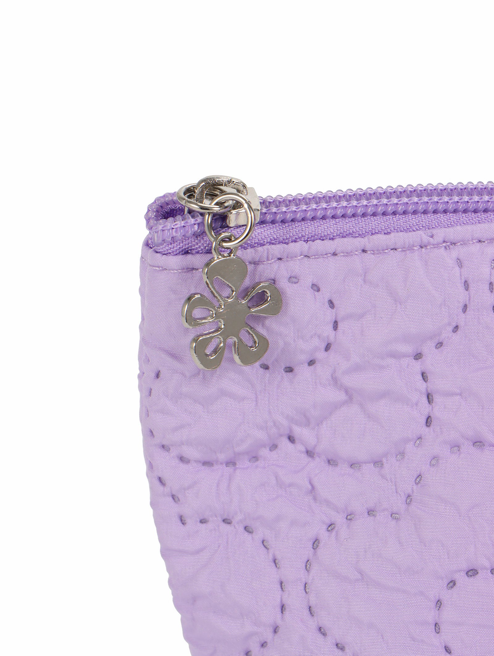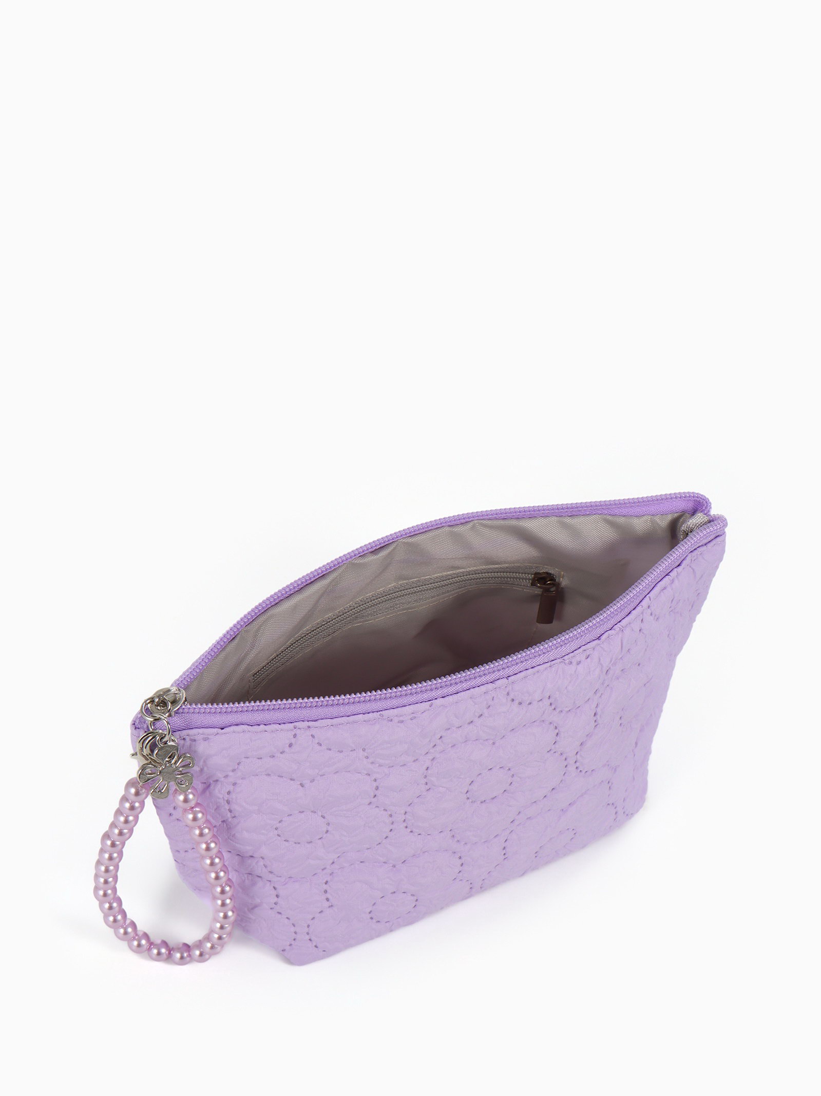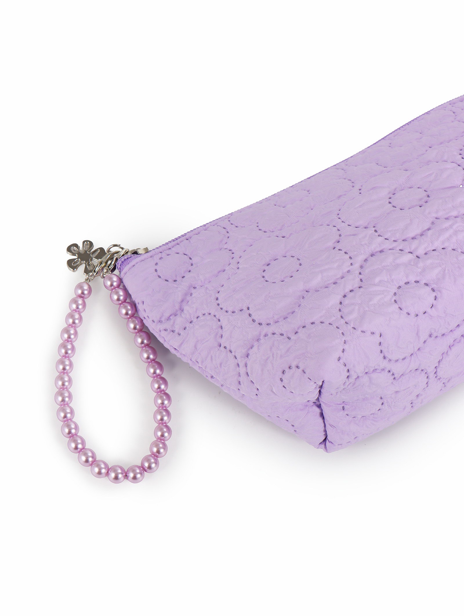 Косметичка женская "Цветочки", на молнии, ручка из бусин, сиреневая, 6x22x16 см., Китай