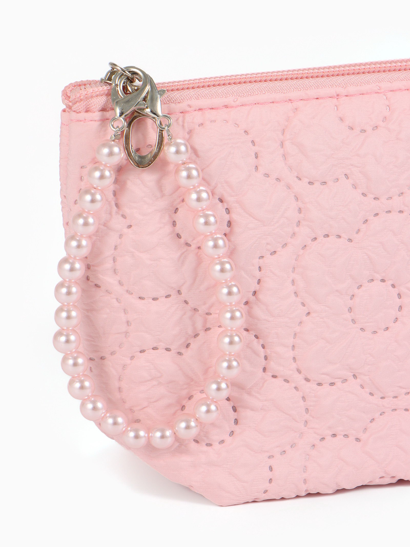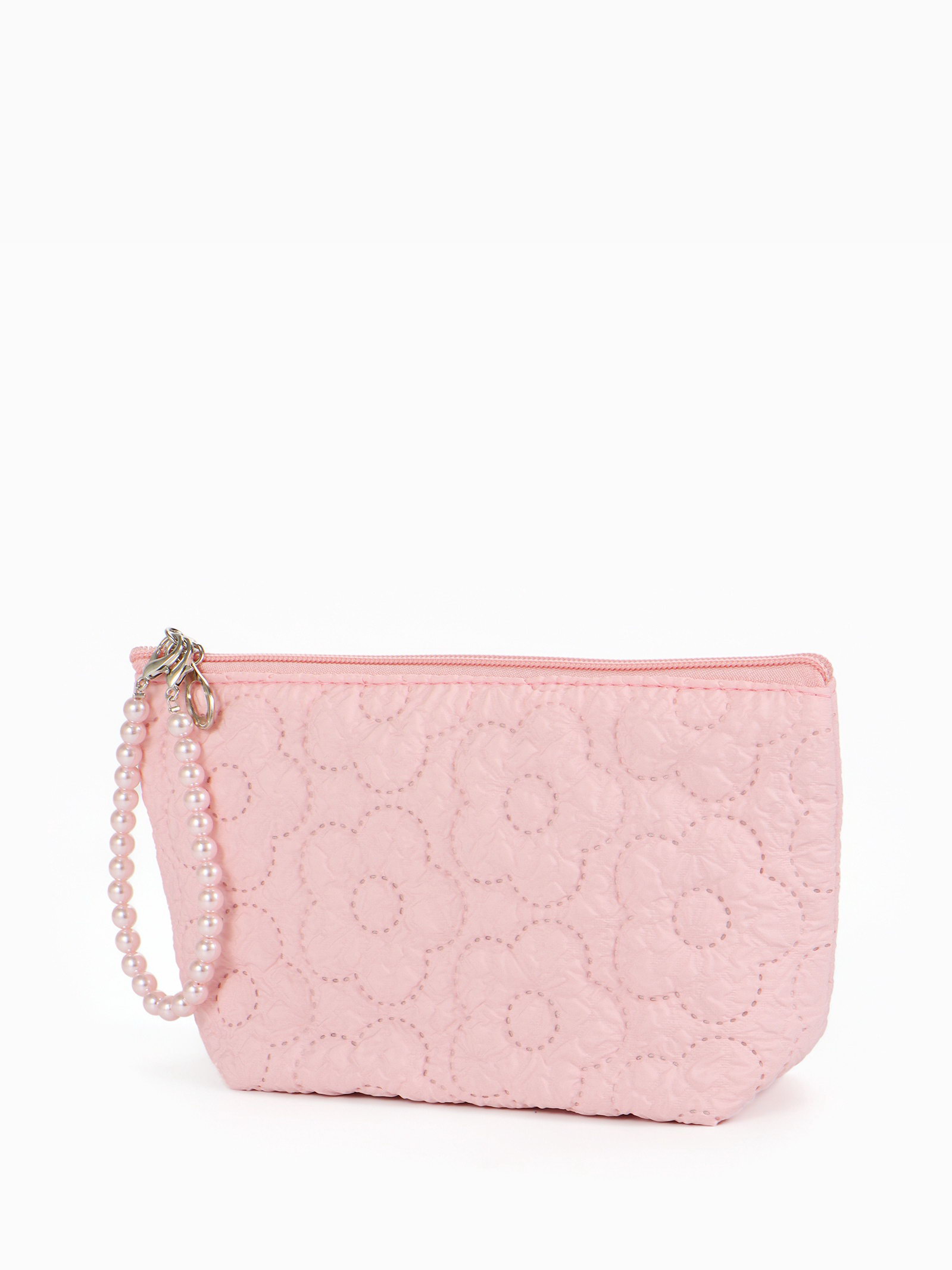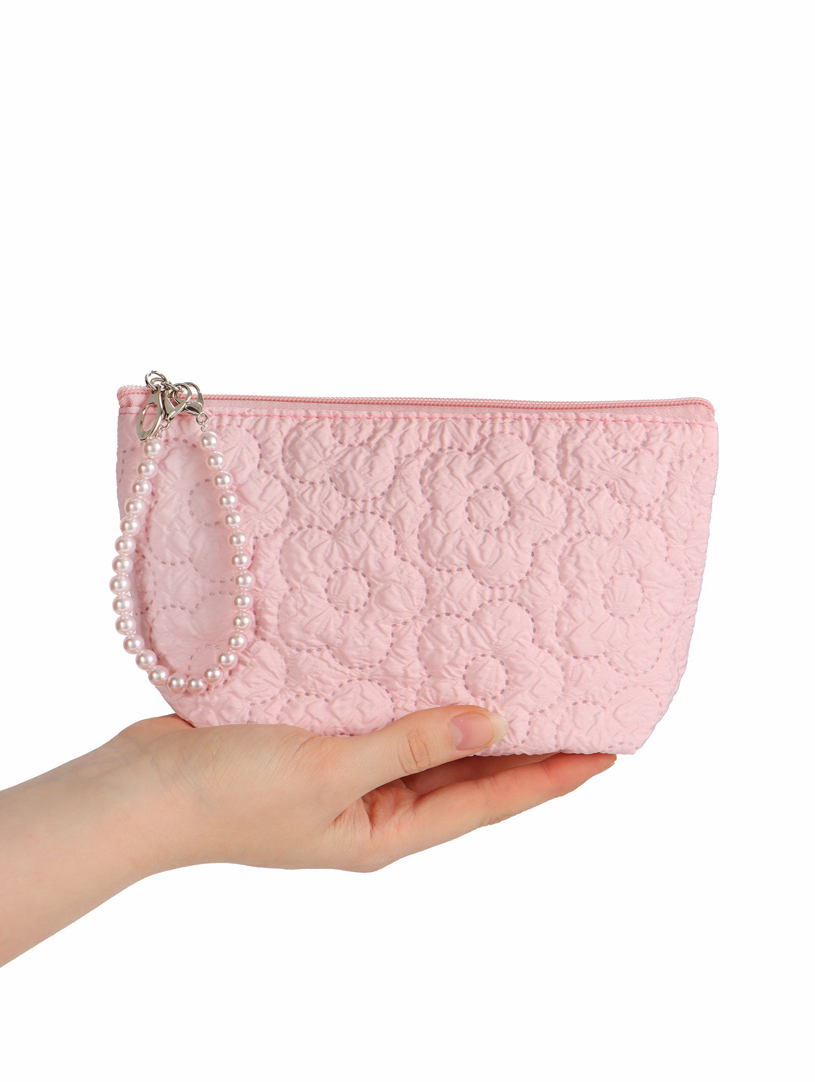 Косметичка женская "Цветочки", на молнии, ручка из бусин, розовая, 6x22x16 см., Китай