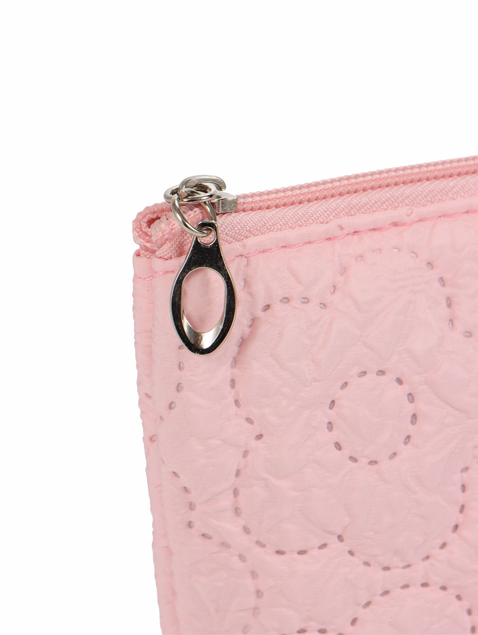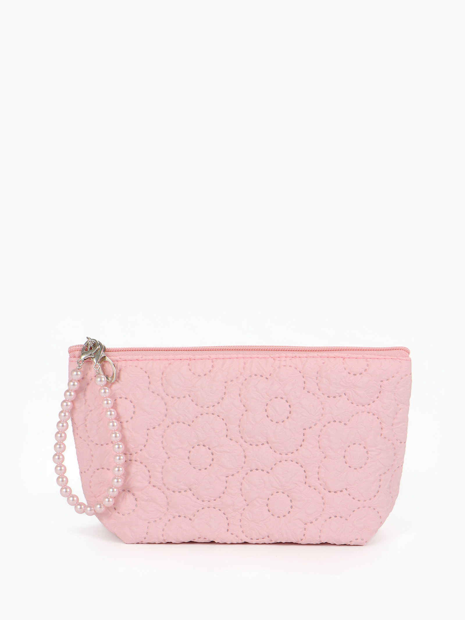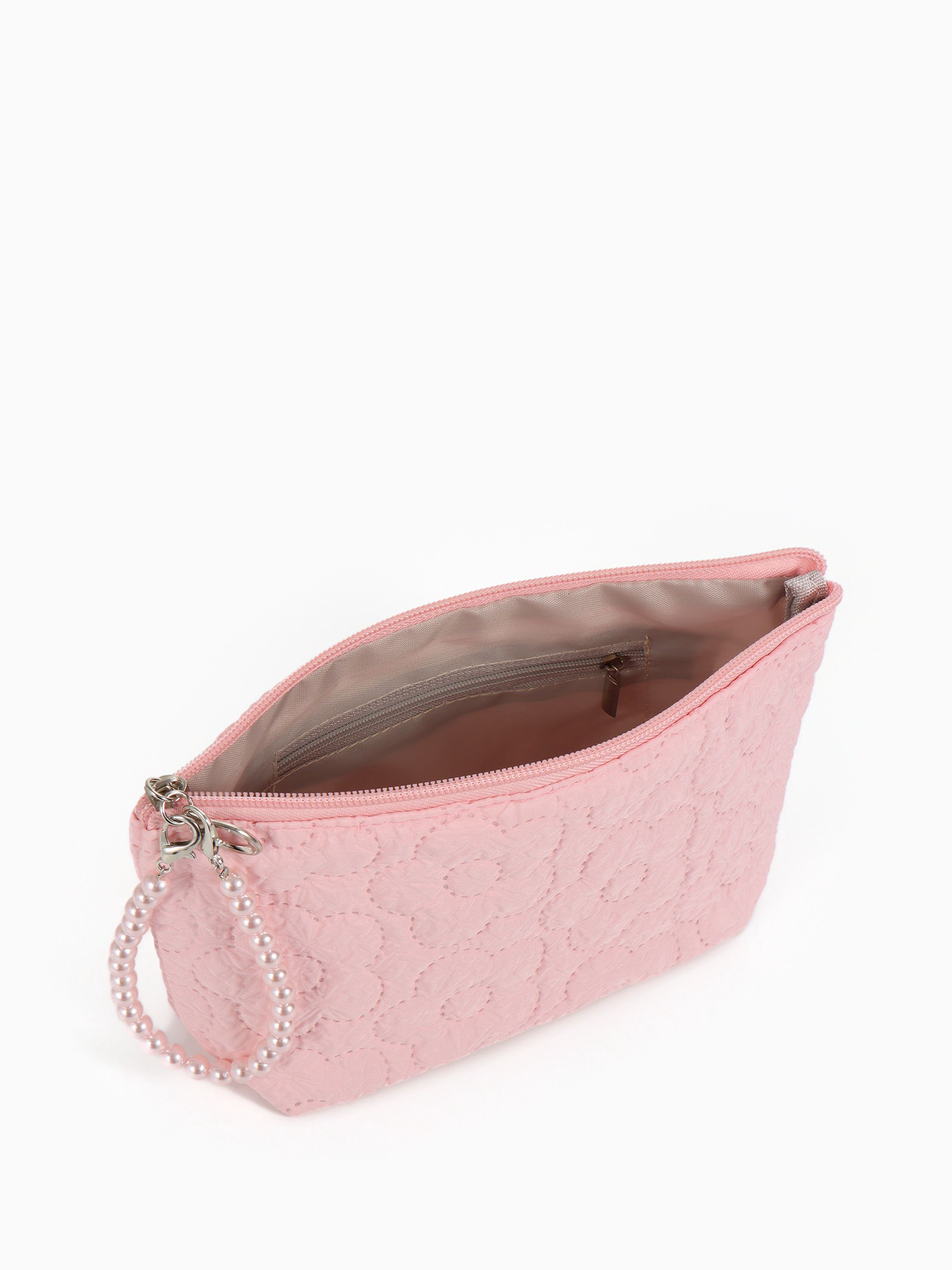 Косметичка женская "Цветочки", на молнии, ручка из бусин, розовая, 6x22x16 см., Китай
