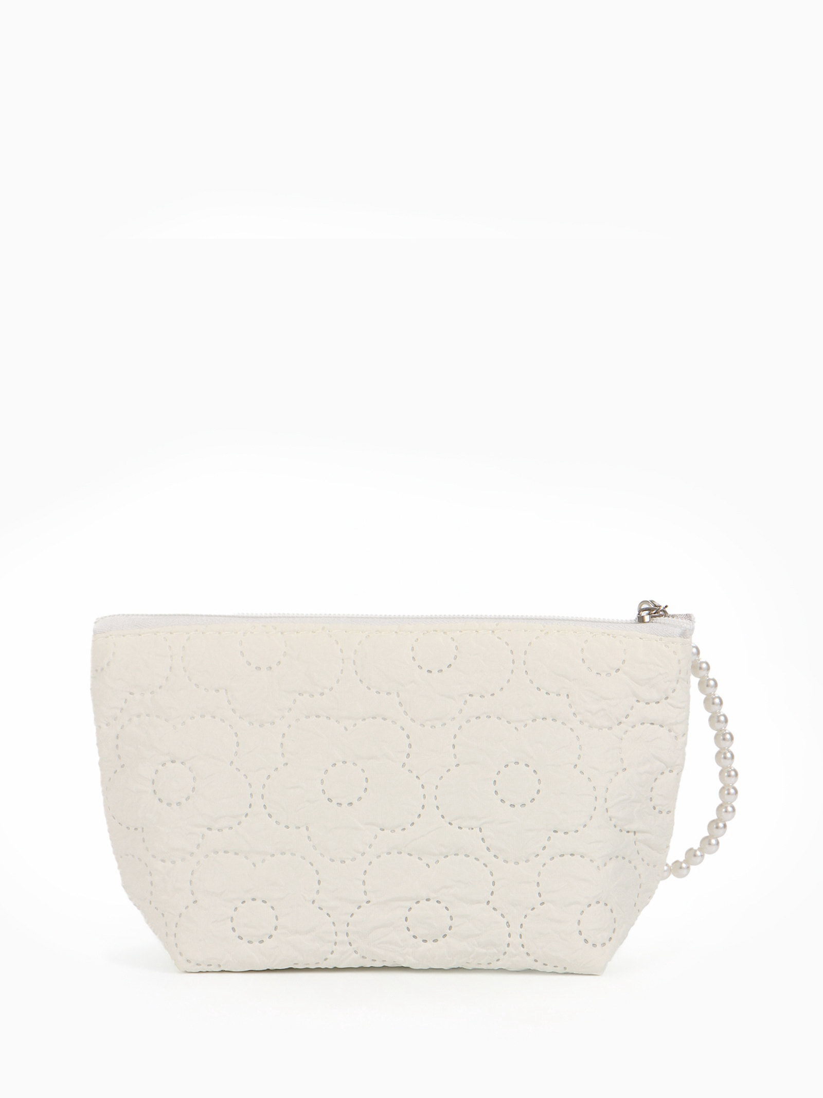 Косметичка женская "Цветочки", на молнии, ручка из бусин, молочная, 6x22x16 см., Китай