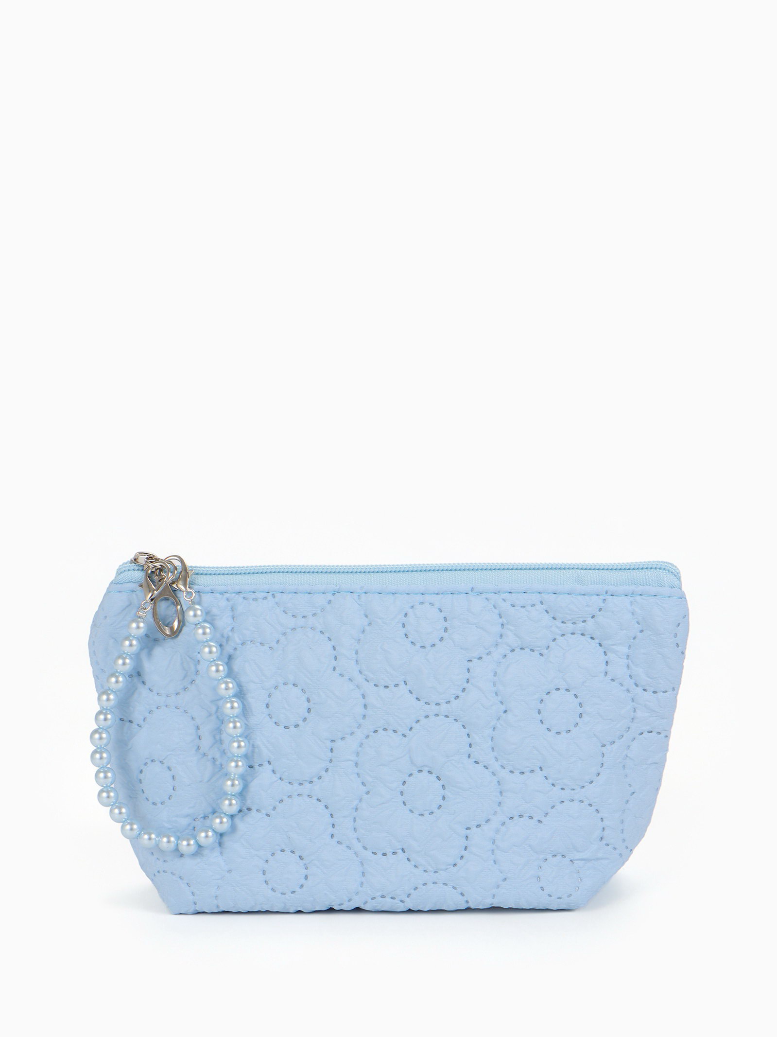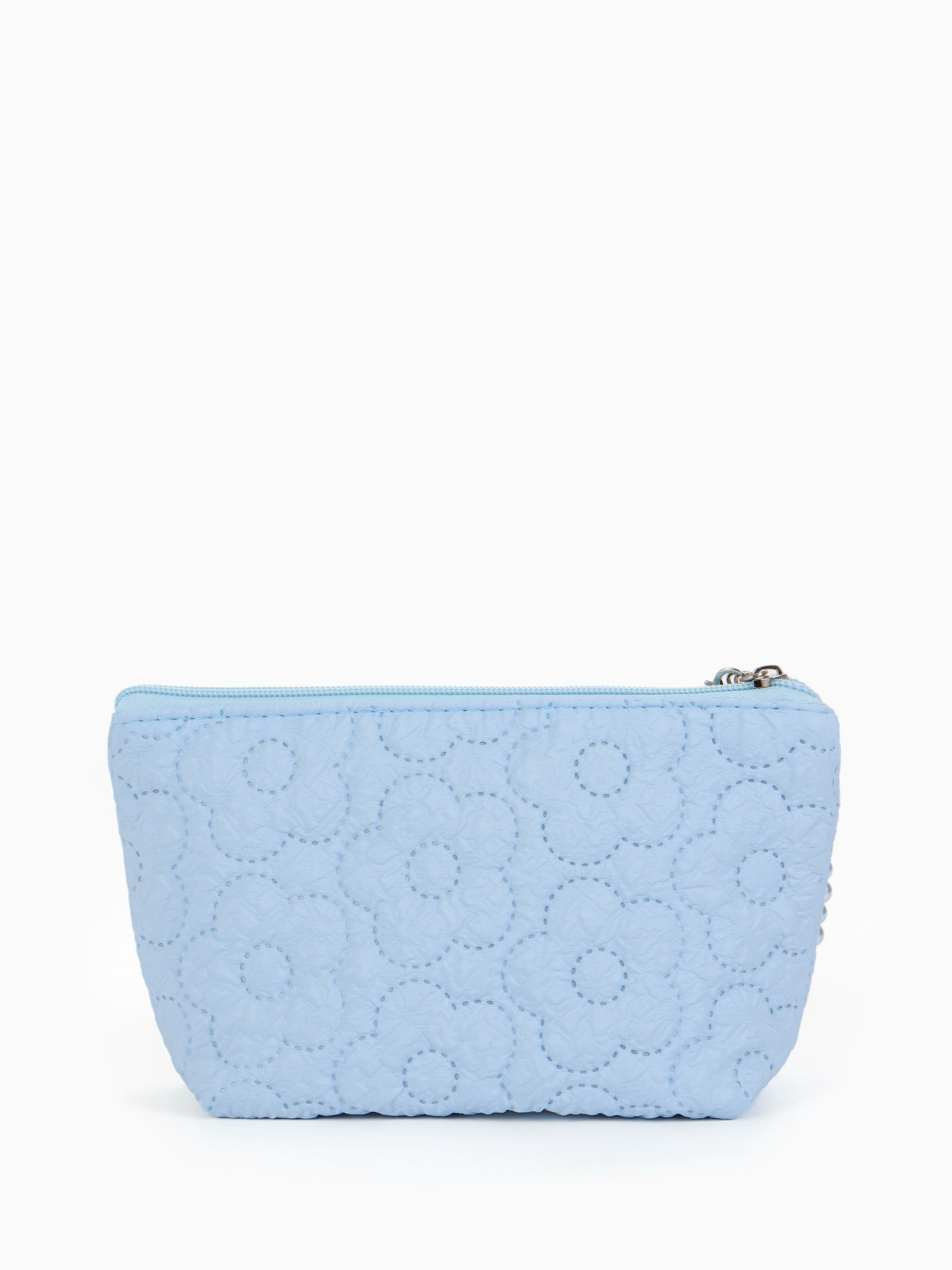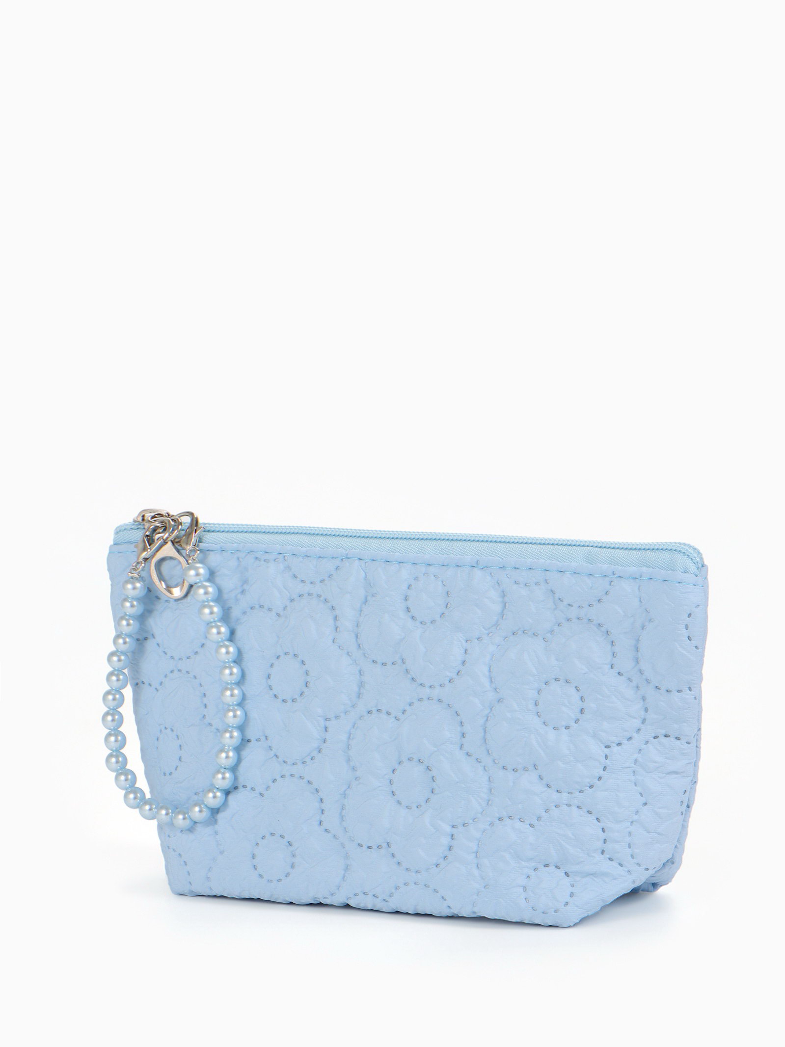Косметичка женская "Цветочки", на молнии, ручка из бусин, голубая, 6x22x16 см., Китай