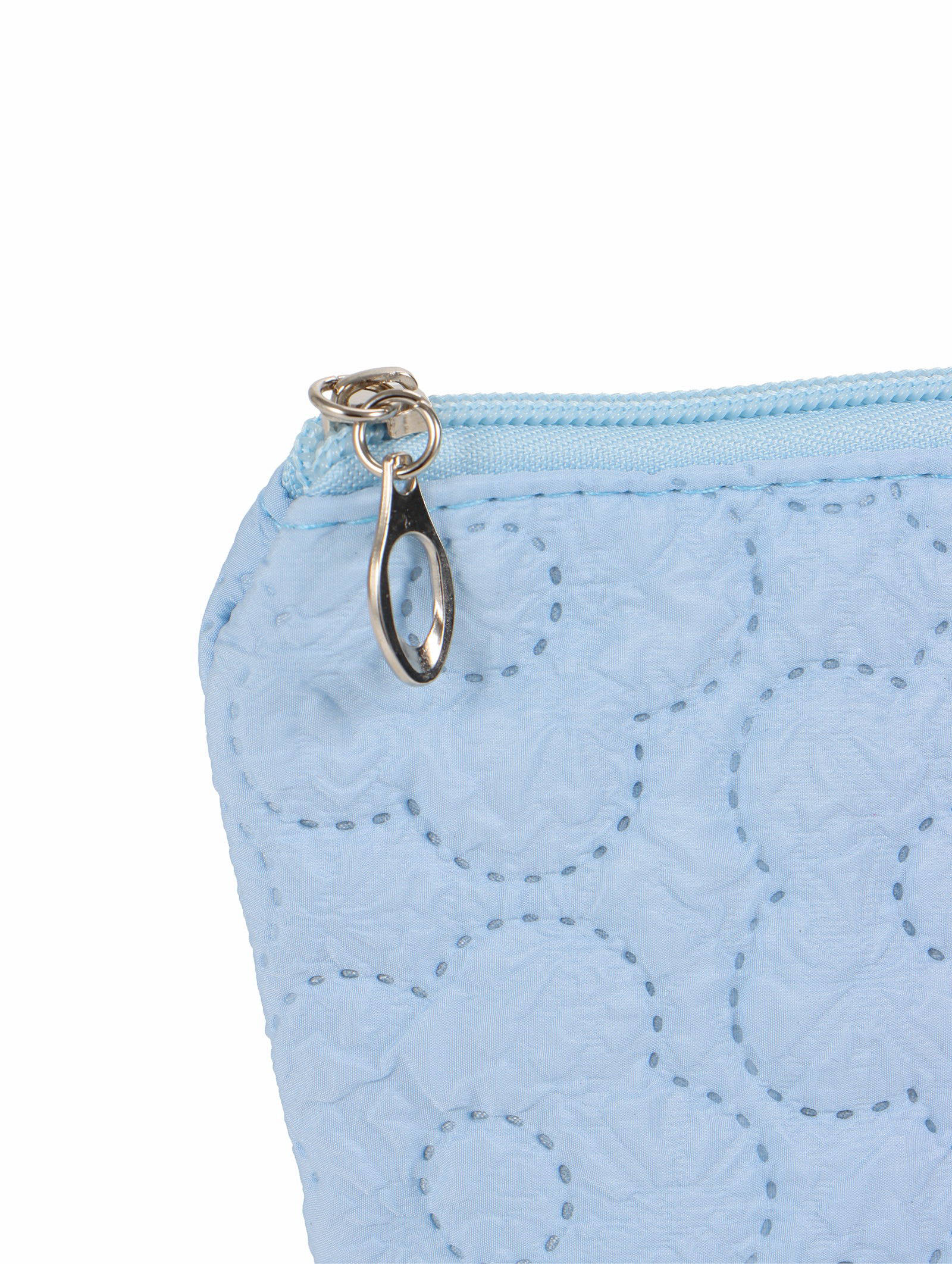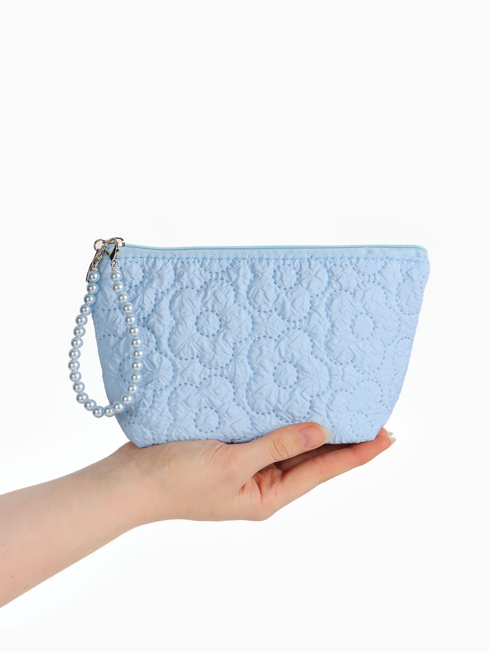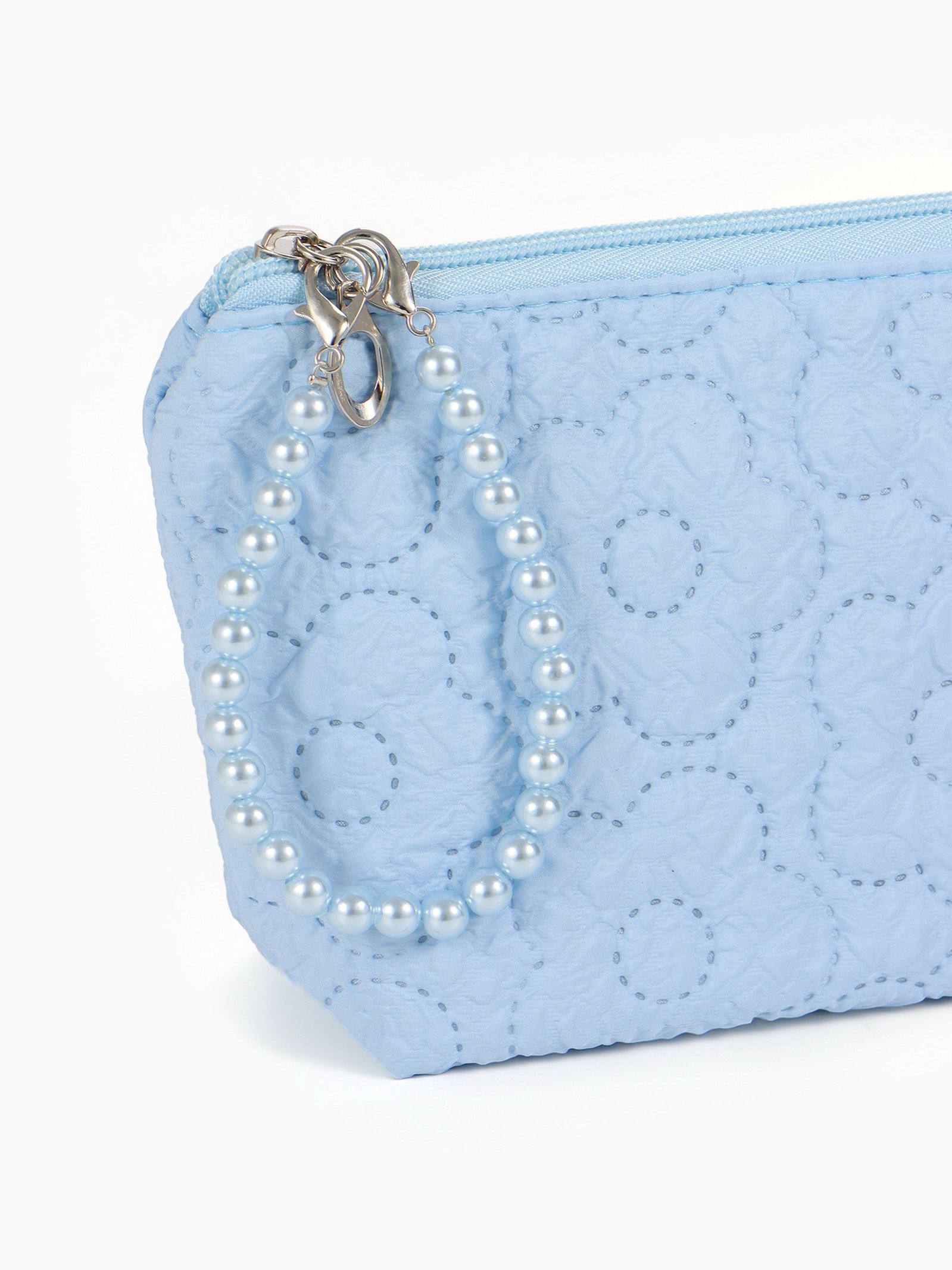 Косметичка женская "Цветочки", на молнии, ручка из бусин, голубая, 6x22x16 см., Китай
