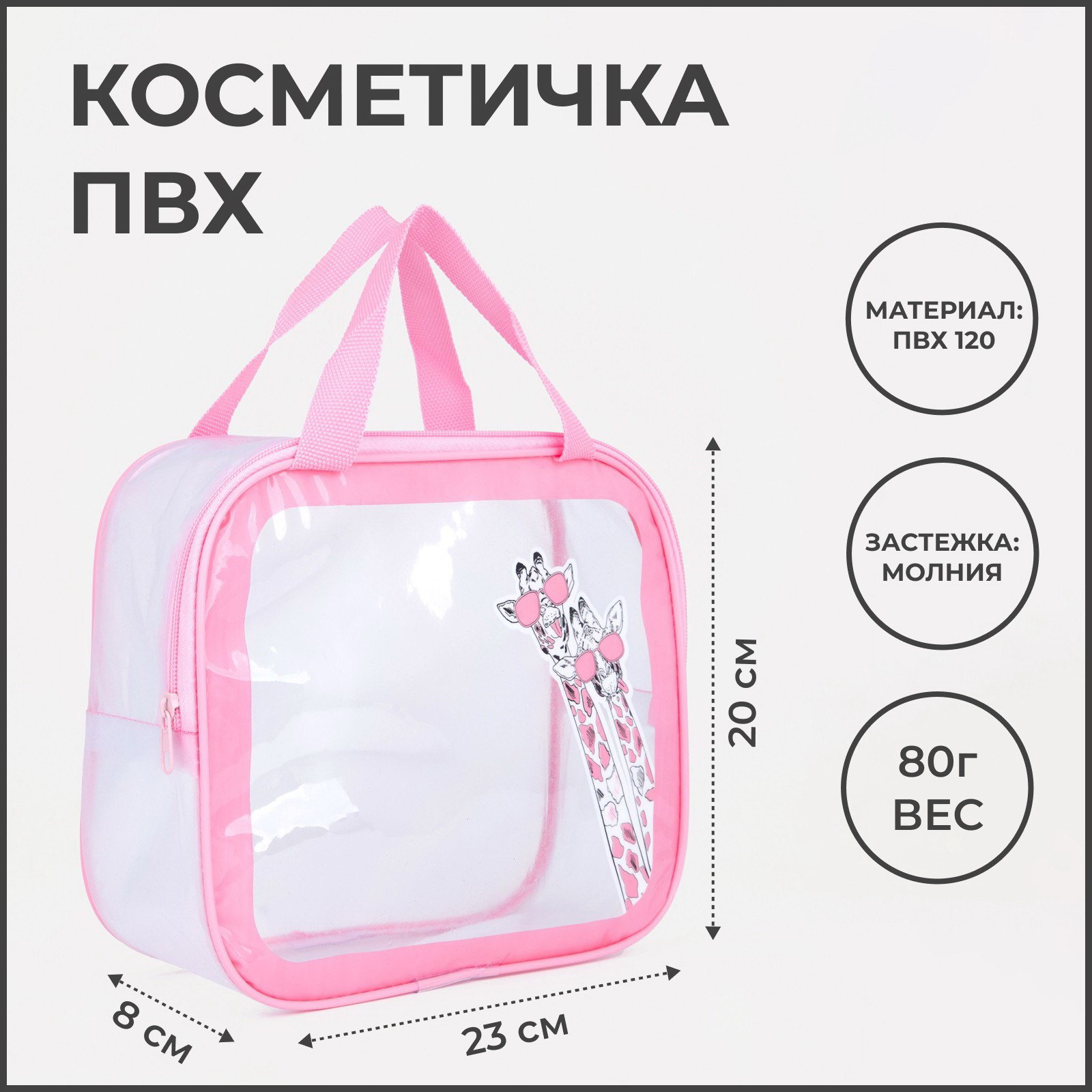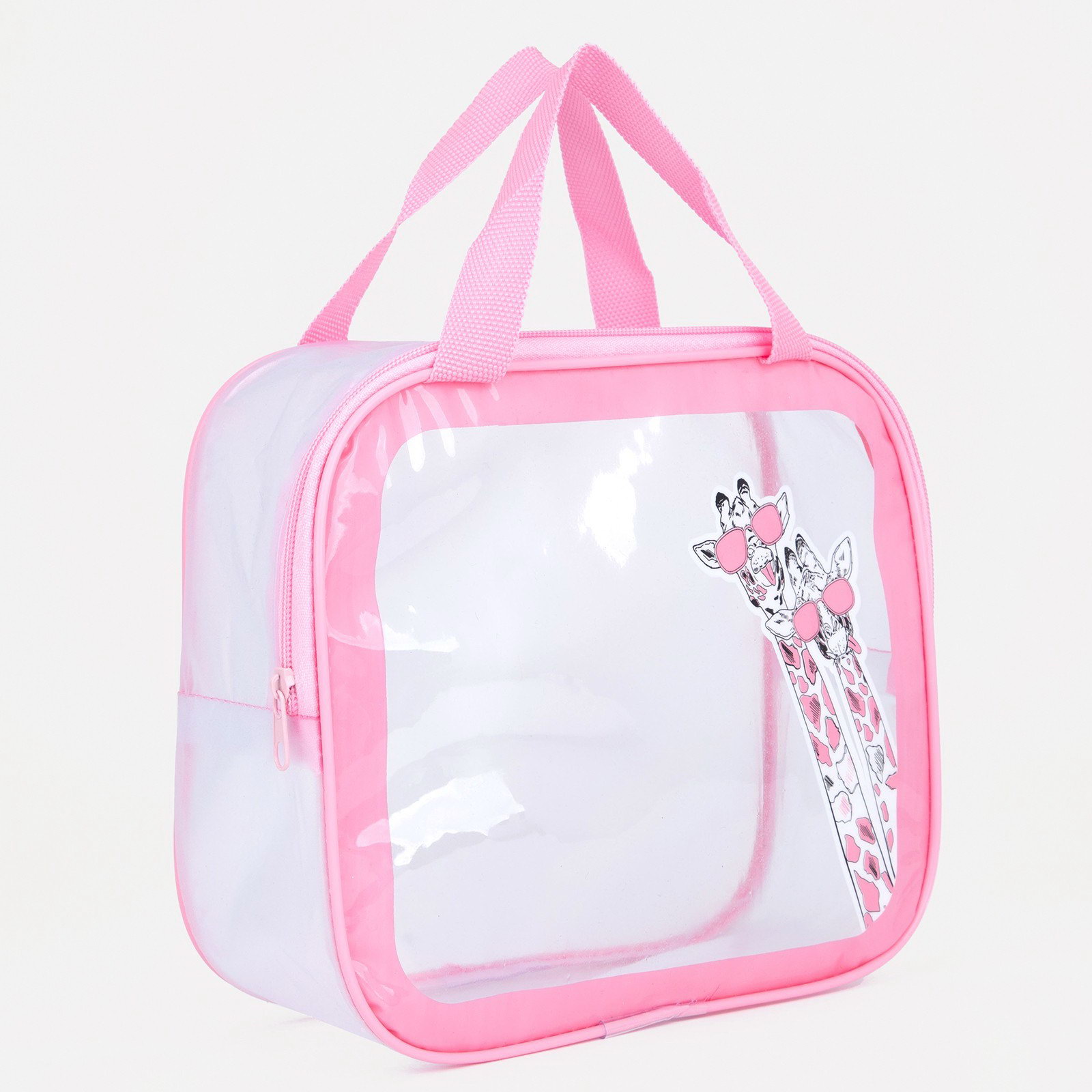 Цвет: Прозрачный, Розовый Особенности косметичек: Для бассейна, Прозрачные, С рисунком Размер упаковки: 2 x 20 x 23 см. tnved: 4202921200 Размер: Средний см Количество отделений: 1 Тематика: Животный мир Температурное ограничение: Нет Модель сумки: Сумка для мам Для кого: Для девочки Особенности: Две ручки Изображение: Жираф Рисунок: Да Вид застёжки: Молния