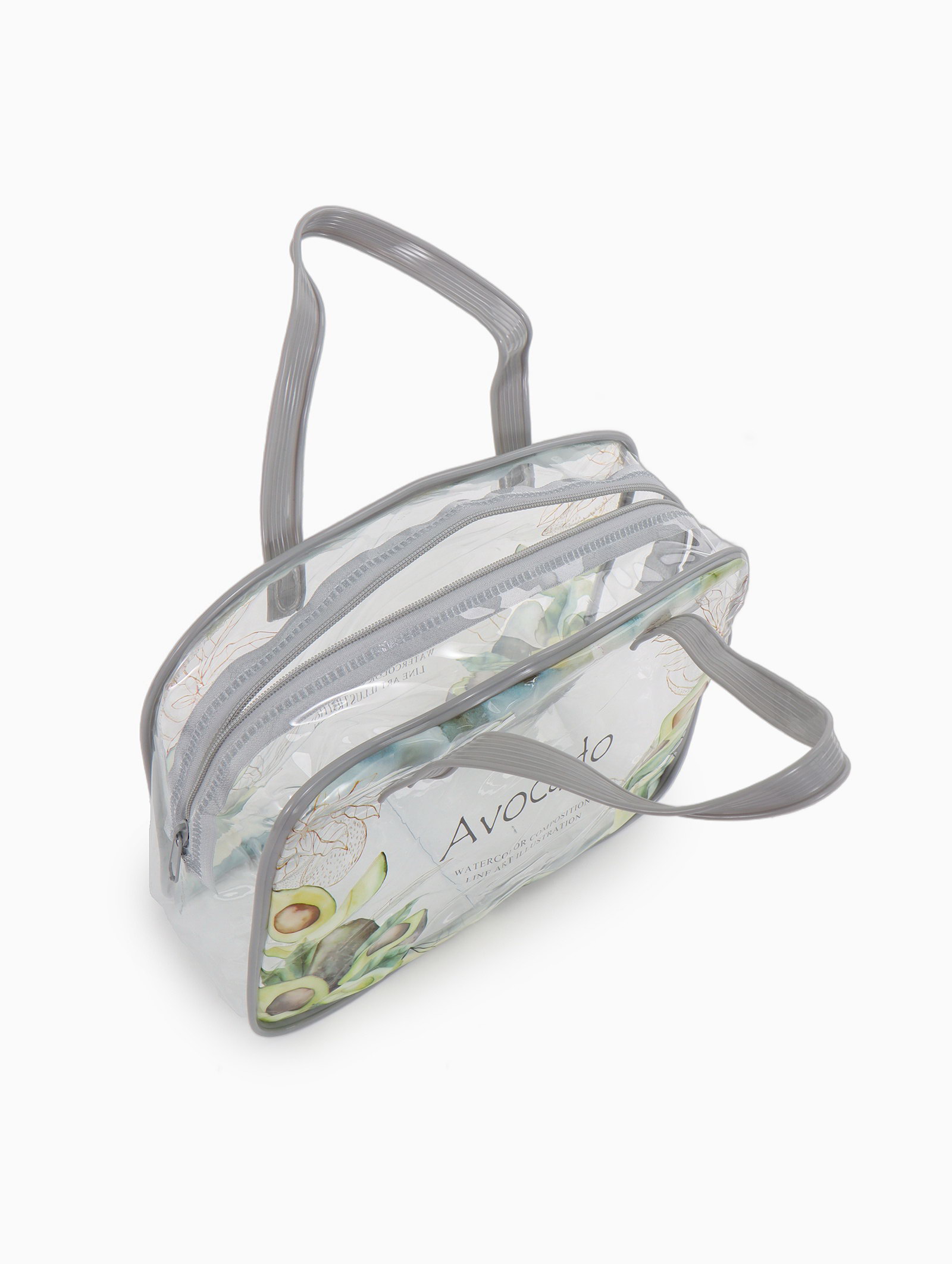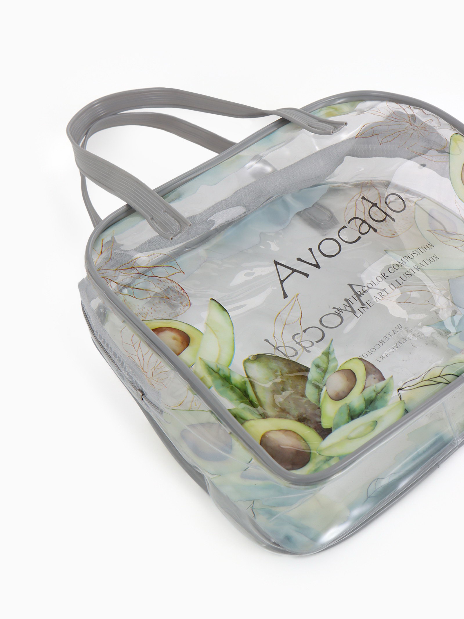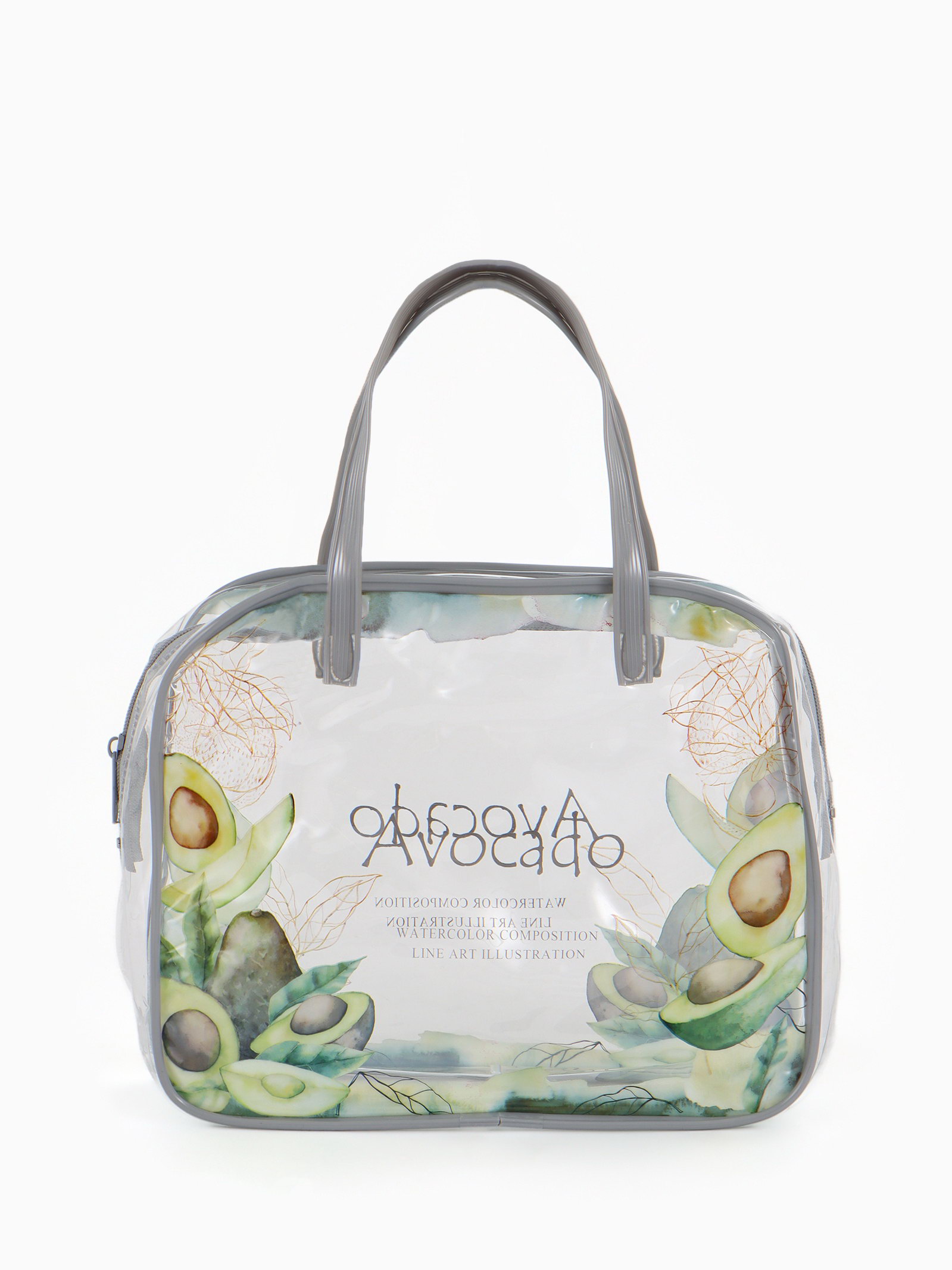 Косметичка-сумка на молнии для бассейна, с ручками, с принтом, серая, 6.5x19.5x15 см., Китай