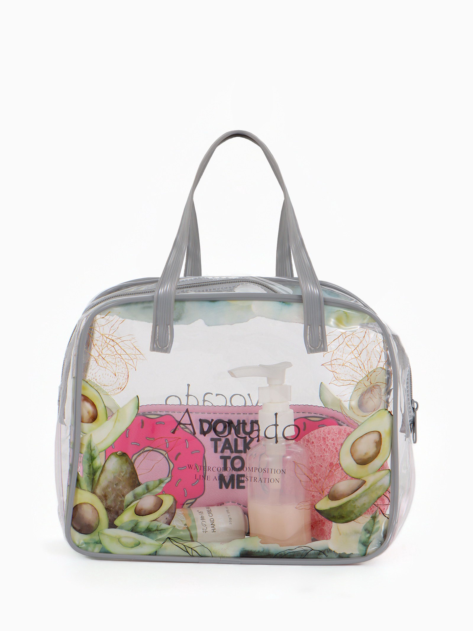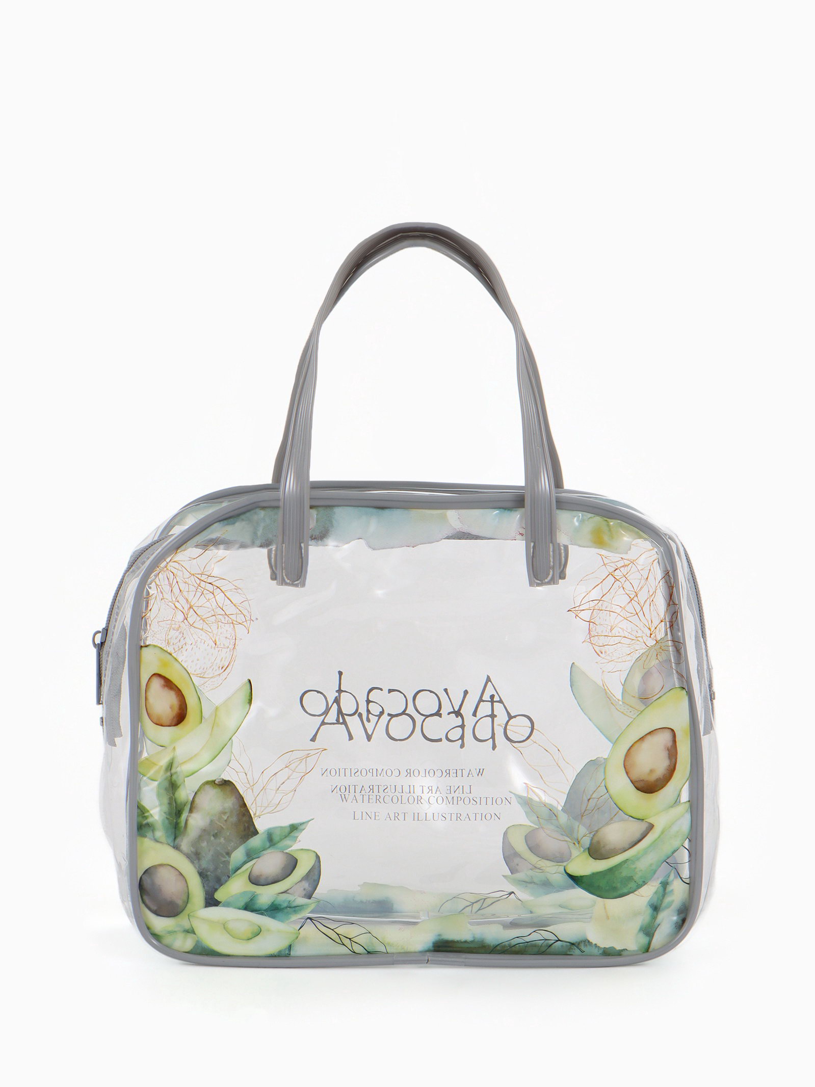 Косметичка - сумка на молнии для бассейна, с ручками, с принтом, серая, 6.5x19.5x15 см., Китай